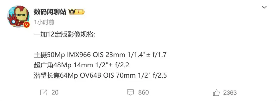 博主@数码闲聊站 本日透露,一加12预计搭载的后摄模组设置,包罗50MP的主摄IMX966,64MP的潜望式长焦OV64B,两者都支持OIS,别的还配备一颗型号未知的48MP超广角镜头。 这也是一加首款搭载潜望式长焦的机型,作为主摄OV64B固然有诸多缺点,但却是一颗非常恰当做潜望式长焦的传感器,包罗此前的vivo X90 Pro+也是利用OV64B来作为潜望式长焦。 别的比力引人注目的则是IMX966传感器,根据此前曝光的消息,IMX966大概是作为IMX866和IMX890的更换者出现的,传感器尺寸约为1/1.4英寸,未利用双层晶体管结构。 在性能方面,一加12将搭载高通新一代旗舰处置惩罚器骁龙8 Gen3,制程工艺从台积电N4升级至N4P,这意味着处置惩罚器的性能和效能都将得到提升。 CPU架构也举行了更新,采取了新的Cortex X4超大焦点,性能焦点数也更多,GPU也升级到了Adreno 750。这些升级将使一加12在处置惩罚速率和图形性能方面都有更出色的表现。 现在看来,一加12在影像、处性能等方面都举行了全面升级,据悉还将支持120W有线和50W无线充,如果代价还能像前代一样保持3999的起售价,那竞争力将会非常的强。 |