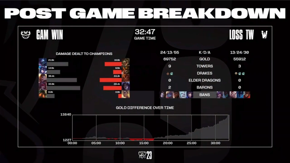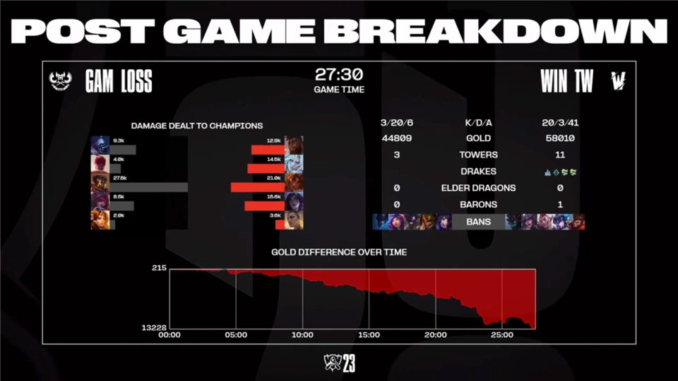 好汉同盟S13环球总决赛入围赛,已经进入了末了的晋级名额决胜阶。竞争两个晋级名额的四支战队,和我们之前猜测根本同等——照旧PCS和VCS两大赛区,与LEC的四号种子夺取两个晋级名额。故意思的是,越南赛区的两支队伍,将夺取一个名额;而PSG则是和BDS夺取一个名额罢了! 10月15日,将举行入围赛决赛的两场比赛,第一场由越南赛区的两支队伍,一绝高下;第二场比赛,则是由PCS赛区的一号种子PSG,对阵LEC的四号种子BDS。一起来相识一下! 越南二号种子,真能送第一局比赛,GAM蓝色方,禁用阿狸,皇子,牛头,妖姬,妮蔻,选用鳄鱼、破败之王、辛德拉、霞、洛;TW赤色方,禁用大树,武器大家,猴子,蔚,梦魇,选用奎桑提、盲僧、发条、卡莎、泰坦。 越南赛区的这两支队伍,可谓是知根知底。因此两队在BP上并没有什么隐蔽,上来就是火力全开,你拿霞洛组合,我就拿桑奎提和卡莎,直接硬刚! 结果第一局比赛,两队在前20分钟内里,打得非常胶着,经济和人头数瓜代领先,只不外谁也无法有效的将上风转为劣势。迁徙转变点分发生在20分钟左右,TW泰坦先行阵亡后,GAM轻松斩获大龙,随后在拉扯之下,GAM还完成一波1换2团战。至此,GAM根本奠定胜局,终极27分07秒,GAM在完成一波0换4完善团战后,轻松一波赢下比赛! 第二局比赛,GAM蓝色方,禁用阿狸,皇子,牛头,妮蔻,梦魇,选用武器大家、盲僧、维克托、霞、日女;TW赤色方,禁用大树,辛德拉,洛,猪妹,猴子,选用奎桑提、破败之王、岩雀、卡莎、芮尔 先输一局的TW,在第二局比赛内里,仍旧是拿到了奎桑提和卡莎,只不外将泰坦换成了芮尔辅助。 结果第二局比赛中,TW直接爆种,从比赛一开始就完成了对GAM的片面克制,全局比赛仅耗时27分30秒,就以滚雪球的方式,一起碾压GAM,扳平一局! 第三局比赛,GAM蓝色方,禁用阿狸,破败之王,奎桑提,波比,发条,选用武器大家、猪妹、杰斯、霞、泰坦;TW赤色方,禁用辛德拉,大树,洛,梦魇,猴子,选用鳄鱼、皇子、岩雀、卡莎、芮尔 将BO5打成BO3的两队,在第三局比赛内里,仍旧是放出了版本强势好汉,然后互拿一手,然后比赛就全看发挥了。 结果第三局比赛,两边在前20分钟的比赛内里,仍旧是无法拉开差距,经济和击杀数出现犬牙交织的状态。迁徙转变点出现在22分钟左右,GAM在辅助先行阵亡的环境下,举行极限拉扯,终极完成一波2换3团战,拿到了场上的主动权;在掌控节奏的环境下,GAM开启了滚雪球模式,终极在32分47秒,TW被打到连续减员,GAM携大龙Buff连续推进,一波闭幕比赛,手握两个赛点! 第四局比赛,GAM蓝色方,禁用阿狸,奎桑提,破败之王,小炮,剑魔,选用鳄鱼、猴子、发条、卡莎、瑟提;TW赤色方,禁用大树,武器大家,霞,梦魇,猪妹,选用石头人、盲僧、辛德拉、滑板鞋、泰坦。 进入第四局比赛后,TW背水一战,掏出了滑板鞋来应对卡莎,石头人来counter鳄鱼?这种黑科技,较为少见! 结果在绝对的气力面前,黑科技也没有见效。GAM将突破口放在中路。在比赛中,中路的辛德拉多次被GAM集火,过早的丢失线权和中路经济后,TW上中野直接崩盘。只管滑板鞋的伤害打得挺足,但TW仍旧是在30分钟不到的时间内里,被GAM轻松击溃! 看完这四局比赛,囧王者只有一个想法:这越南赛区的二号种子,你们是真的能送啊! 随着GAM以3比1的比分,击败同赛区的TW之后。他们也就成为了第一支,在S赛入围赛中乐成晋级的战队。坦白地讲,越南赛区在骚粉归去之后,肉眼可见的变强了。无论是在国家队条理,照旧在商业联赛条理,已经发展为不亚于PCS赛区的存在了。特别是在S12击败TES之后,越南赛区的气力,还会值得器重的! |