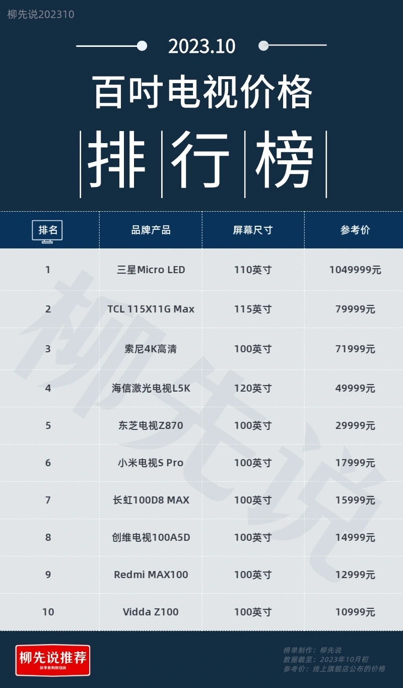 在电视市场中,尺寸不停以来都是吸引消耗者的一个关键因素。较大的屏幕可以提供更加引人入胜的观影体验,仿佛将观众带入了影戏院的氛围。而如今,100英寸的电视机已经不再是“富人”的专属享受,它们开始进入平凡家庭,为观众带来了亘古未有的视听盛宴。只管电视的尺寸越做越大,但百吋电视的代价并非高不可及。这意味着越来越多的消耗者有时机拥有一台巨幕电视。 100英寸的电视已经不再是未来的概念,而是当下的实际,下面来简单盘货2023中国市场上的百吋电视。Vidda Z100参考价10999,Vidda是海信旗下年轻潮牌,通过极致的科技体验,打造布满想象力的潮酷产物,给年轻人好玩风趣的生存,成为年轻人的潮酷玩伴。Vidda Z100是一款4K 120Hz高刷巨屏,搭载256个独立控制分区,明暗有度,百吋巨屏视野带来的重重震撼。 Redmi MAX100,屏幕尺寸到达100英寸,参考价12999。4K超高清画质,金属全面屏,98.8%屏占比,MIUI TV聚合全平台出色内容,随平台同步更新;创维电视100A5D,屏幕尺寸100英寸,参考价约14999万。支持16bits超精致控光,采取发光服从更高的微米级发光元件,同时共同杜比全景声音效、杜比解码、SXFI空间音频等技能。 长虹电视100D8 MAX,电视屏幕尺寸100英寸,参考价15999。采取高端的低反射柔光屏,低落来自太阳光和灯光的反射光线,让画面不受情况光的干扰 。长虹自研 UMAX影院体系,采取好莱坞级的画质和音质调校,共同100英寸超大屏幕,让每一次观影都身临其境;小米电视S Pro 100,屏幕尺寸100英寸,参考价17999。4K 144Hz超高刷,共同四核A73旗舰处置处罚器,轻松应对多任务处置处罚,快速相应需求。 东芝电视Z870,电视屏幕尺寸100英寸,参考价29999。以日本专业音画调校为底子,综合多项影音创新技能,打造完备沉醉视听办理方案;海信激光电视L5K,电视屏幕尺寸到达120英寸,参考价49999。宣称是环球首款可折叠激光电视,IMAX Enhanced认证,影戏感铺满整面墙。DMD微秒级调光,叠加海信自研AI清晰度加强算法,智能优化每一处画面细节,画面精致通透。 索尼4K高清100英寸,参考价71999。120Hz面板革新+Motionflow动态流畅技能,带来更为流畅的运动图像。TCL 115X11G Max,屏幕尺寸到达115英寸,参考价79999。采取微米级高光效Mini LED发光芯片和光学级微透镜,连合20000+级背光分区,实现像素级点控光,精准掌控每一帧微观细节,奢华影像尽现眼前。搭载的星环声道将天空音和左右围绕音举行融合,拥有独立的功放芯片,大幅提拔声音信号强度。智慧感知观影位置,能主动优化视听体验。 三星Micro LED,屏幕尺寸到达110英寸,参考价1049999。售价百万人民币,算是如今市场上最贵的一款百吋电视。采取Micro LED自觉光技能,不再依赖背光源发光,而是RGB无机自觉光LED,拥有高亮度、高对比度、使用寿命长等特点。搭载的Micro AI处置处罚器分析每个场景的视频信号,并主动优化画质和分辨率以顺应内容。在超大屏幕眼前,可以或许提供一种超实际的沉醉感。 |
