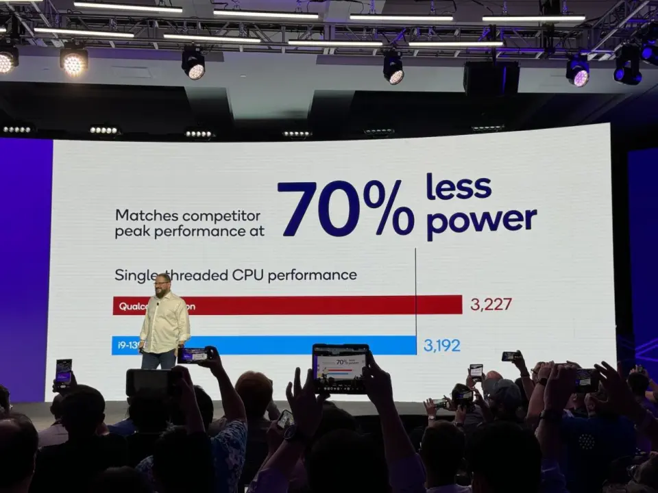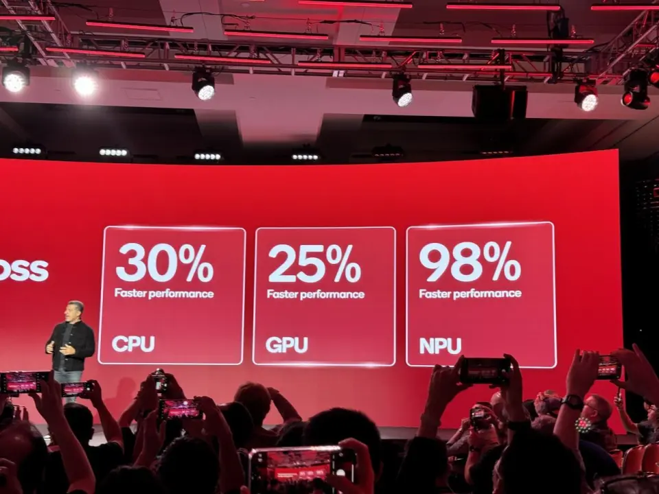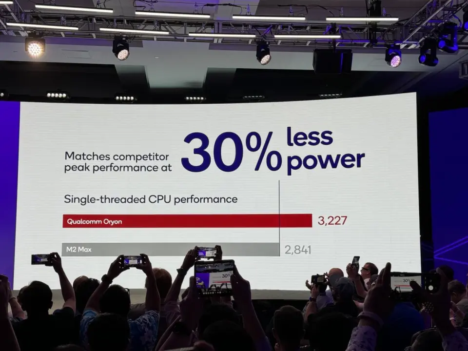 腾讯科技 文/吴彬 一年一度的高通骁龙峰会如约在美国夏威夷举行,本以为会是骁龙8 Gen3唱主角的峰会首日,被高通全新发布的PC级芯片抢走了风头,而这颗芯片的发布,也让当下的电脑芯片市场变了天。 骁龙X Elite发布:基于Oryon内核打造,性能逾越苹果M2 Max高通在之前已经公布会在此次骁龙峰会上推出为PC打造的全新芯片操持,而在本日这颗芯片正式解开了机密面纱。 这颗芯片被定名为骁龙X Elite,采取了高通基于Arm架构打造的Oryon高性能内核,利用4nm的工艺实现。在这颗骁龙X Elite芯片内,拥有12个Oryon高性能内核,频率为3.8GHz,最高可升压到4.3GHz。 在发布会现场,高通也分享了一些数据,Oryon内核的单线程性能,已经比现在苹果同样基于Arm架构打造的M2 Max更强,且团体的能耗低落30%。 而在对比现在英特尔X86架构性能最好的处理惩罚器之一i9-13980HX,Oryon依然在性能上领先于前者,同时团体功耗低落70%。 多线程方面,骁龙X Elite要领先苹果M2处理惩罚器的性能高达50%。对比英特尔14代酷睿i7-13800H,骁龙X Elite在团体性能上要领先60%,功耗低落65%。 骁龙X Elite搭载的LPDDR5X内存可支持136GB/s的内存带宽,总缓存为42MB。这颗SoC还集成烈?通自家的Adreno GPU,TFLOPs高达4.6。 在AI性能方面,骁龙X Elite将配备一个可以提供75TOPS,而且可以在端侧运行130亿参数模子的NPU。 在毗连性方面,骁龙X Elite同时支持5G和WiFi-7。别的另有支持高达4K@120Hz的表现器、HDR10、三重UHD或双5K外部表现器支持等功能。 预计搭载高通骁龙X Elite的电脑将在2024年中正式发布。 骁龙8 Gen3:依然是4nm,采取全新架构组合本年的骁龙8 Gen3不出所料依然采取台积电的4nm工艺打造,但高通利用了一个全新的1+3+2+2的架构打造这颗SoC。 此中超大核采取了Arm公版的Cortex-X4架构,核心频率3.3GHz,5个性能核心采取Cortex-A720架构,核心频率从3.0到3.2GHz,2个能效核心采取Cortex-A520架构,核心频率2.3GHz。按照高通的数据表现,新款8 Gen 3的性能比前代产物进步了30%,能效进步了 20%。 GPU部门,骁龙8 Gen3搭载了Adreno750架构的图形处理惩罚器,其规模相比骁龙8 Gen 2提升了20%,实现了25%左右的性能提升和20%左右的能效提升。Adreno 750 GPU支持硬件光线追踪和网格着色技能,可以通过硬件实现240 FPS的游戏体验。 骁龙8 Gen 3还支持5G和Wi-Fi 7的网络毗连技能,并配备X75 5G调制解调器、支持LPDDR5X的RAM以及UFS 4.0的ROM、最大可以实现对144Hz的Quad HD+和60Hz 4K 分辨率的支持。别的它还具有蓝牙5.4,并支持108 MP摄像头,以120 FPS录制高达4K级别的视频。 AI方面,这一代的骁龙8 Gen3内置的NPU实现了98%的性能提升,支持100亿规模的大模子在端侧独立运行。 在发布会现场,小米总裁卢伟冰公布26日即将发布的小米14系列将会成为高通骁龙8 Gen3芯片的首发机型,同时有消息称小米会独占该芯片1个月的时间,1个月之后,包罗Redmi、iQOO、vivo等品牌都会有相应的新品推出。 别的卢伟冰也在现场公布,小米汽车会在2024年正式发布,也会选择高通车载芯片作为自己的智能驾舱核心处理惩罚器。 高通S7/ Pro音频芯片:AI性能提升100倍,支持XPAN毗连和192kHz无损音频除了电脑和移动端芯片,高通还带来了实用于TWS耳机类装备的音频芯片S7和S7 Pro-Gen 1。 新的音频平台具有高性能、低功耗、装备上人工智能和先辈的毗连功能,该平台的盘算本领是上一代平台的六倍,人工智能本领险些是上一代平台的100倍,而且以低功耗实现了新的超高端性能。 S7 Pro声音平台率先支持高通扩展个人地区网络技能(XPAN) 和Micropower Wi-Fi毗连技能,提供比蓝牙更杰出的音频范围。 S7和S7 Pro还具有装备端人工智能功能,可实现更好的音频个性化。支持高达192kHz的无损音乐和加强的游戏多通道空间音频,还支持Qualcomm Seamless技能,以实现更好的跨装备毗连。 |