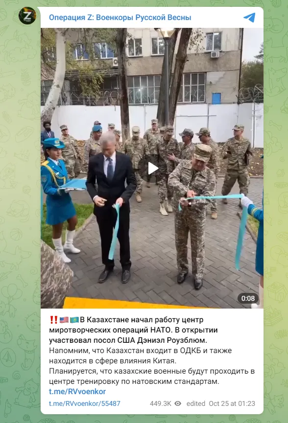 速览 - 网传“哈萨克斯坦开设北约军事训练中心”的消息不实。干系视频来自美国驻哈萨克斯坦大使馆的Instagram账号,视频表现的是美驻哈大使参加哈维和办法中心新集会会议中心的剪彩仪式。 -哈萨克斯坦国防部已否认在哈“设北约军事训练中心”这一说法。 变乱配景 10月25日,一段剪彩视频在交际平台上传播。有关说法称,“团体安全条约构造成员哈萨克斯坦开设了北约军事训练中心,该中心将资助按照北约标准训练哈萨克斯坦士兵。” 明查 经核查,关于“团体安全条约构造成员哈萨克斯坦开设北约维和办法中心”的说法最早来自亲俄Telegram频道“Z办法:俄罗斯之春的军事通讯员”(Операция Z: Военкоры Русской Весны)。该频道于北京时间10月25日1时23分上传了上述视频,称“北约办法中心已在哈萨克斯坦开始运作。美国大使丹尼尔·罗斯布卢姆出席了开幕式。” 反搜发现,这段表现剪彩的视频在10月23日就已经出现,最早来自美国驻哈萨克斯坦大使馆和美国驻阿拉木图总领事馆的Instagram账号。发布者称:“罗斯布卢姆有幸参加了哈萨克斯坦维和办法中心新集会会议中心的剪彩仪式。” 据哈萨克斯坦维和办法中心(KAZCENT)官网先容,哈维和办法中心创建于2006年,是哈萨克斯坦共和国国防部部属的国家增补教诲机构,该中心的重要任务为语言培训,以及对武士、警员和文职职员举行以维和办法为目的的训练。 2022年9月26日,哈维和办法中心曾发布消息,称在维和办法中心,一个新的集会会议中心已破土动工,哈国防部副部长苏丹·卡马列迪诺夫(Sultan Kamaletdinov)中将出席了在阿拉木图举行的新修建的开工仪式。消息中特别夸大,该集会会议中心的建立是在“环球维和办法倡议”的操持框架内举行的,并得到了美国的财务支持。 除上述视频外,美驻哈大使馆的Instagram账号还发布了多张与哈维和办法中心新集会会议中心的剪彩仪式干系的照片。此中一张照片的配景中出现了哈维和办法中心办公室的正门,该修建物之前曾多次在与办法中心干系的报道图片中出现。别的,通过比对路灯、地砖等细节,也可以判断网传剪彩视频的拍摄地点即在此修建物正门之前。 10月25日,哈萨克斯坦本地媒体Stan.kz报道称,哈国防部否认了关于“在哈萨克斯坦开设北约中心”的事。报道称,哈国防部表现:“该中心自2006年以来不绝作为哈萨克斯坦部队维和队伍发展的教诲机构。其重要目的是根据连合国标准培训职员到场维和办法。” 综上所述,网传“哈萨克斯坦开设北约维和办法中心”的消息不实。网传视频来自美国驻哈萨克斯坦大使馆的Instagram账号,视频表现的是美驻哈大使参加哈维和办法中心新集会会议中心的剪彩仪式。哈萨克斯坦国防部已公开否认“在哈制作北约中心”这一说法。 |