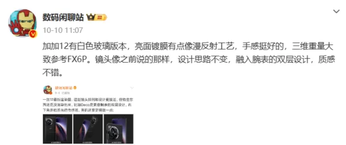 另据数码博主@数码闲聊站 透露,一加12还将提供白色玻璃版本。该版本的亮面镀膜有点像漫反射工艺,手感挺好的,三维重量可以大抵参考OPPO Find X6 Pro。同时,新机的镜头操持思绪稳定,融入了腕表的双层操持,质感不错。