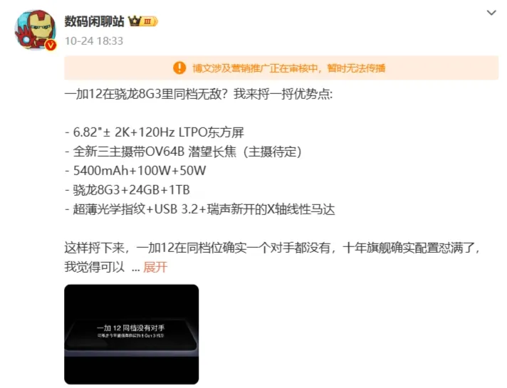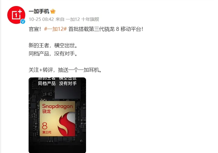 不久前,一加手机官方公布,一加12将首批搭载第三代骁龙 8 移动平台,号称“同档产物,没有对手。”