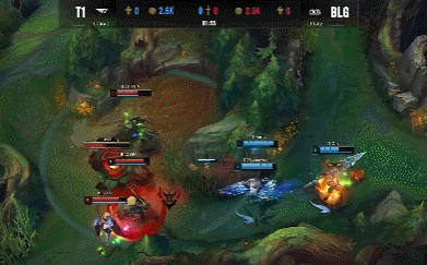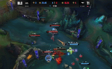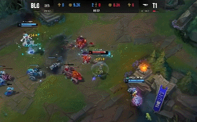 次局BLG开局相当顺遂,中路Xun多次抓死Faker。上路Bin哥招牌武器也单杀回Zeus酒桶,找回场子。