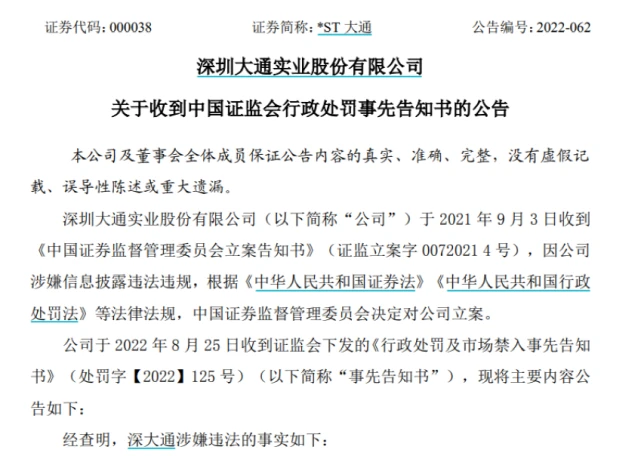 中国基金报记者 颜颖 曾经暴力抗法的深大通,又将面临羁系处罚! 2021年9月,深大通因涉嫌信披违法违规,被证监会存案。时隔一年后,证监会的观察结果终于出炉。 8月25日晚间,已经“披星戴帽”的*ST大通发布公告称,其收到证监会行政处罚事先告知书。因子公司视科传媒假造广告业务,导致深大通累计虚增收入、利润总额1.62亿元。证监会拟责令公司改正、给予告诫,并处60万元罚款。 对于相干责任人,证监会也将举行告诫及罚款,金额自8万元至30万元不等。此中,夏冬明作为深大通时任董事、视科传媒董事长,构造实验财政造假,将被证监会采取十年市场禁入步伐。 伪造广告业务条约 虚增利润1.62亿 从财政造假的方式来看,此次深大通涉及的作案本事并不算高明。 行政处罚事先告知书表现,2015年至2017年,深大通子公司视科传媒及部属子公司与夏冬明开辟的17家客户,签订了24份业务条约。 经查,上述广告业务涉嫌假造。克制2018年12月31日,上述业务回款不完全或未回款,部门客户的业务回款来自夏东明大概其控制的账户。 假造条约、增长回款,如许的本事在上市公司重组并购后并不有数,其目的天然是为了实现业绩答应。 2015年7月,深大通与夏冬明等8名视科传媒股东签订协议,约定深大通发行股份及付出现金方式购买视科传媒100%股份,买卖业务作价为17亿元。夏东明等答应视科传媒2015年至2017年净利润分别不低于1.31亿元、1.65亿元、1.98亿元。 该次巨大资产重组于2015年12月获证监会批准,深大通将2016年1月31日确定为购买日,将视科传媒纳入归并报表。 在视科传媒上述假造条约的“一通利用”下,2016年其业绩答应均顺遂完成,2017年虽未完成业绩答应,但三年累计实现利润大于答应利润,亦未触发业绩补偿答应。但在2018年,视科传媒出现巨亏,当年扣非后净利润为-3.69亿元。深大通也在当年对视科传媒大肆计提13.4亿元商誉减值,导致深大通2018年净利润巨亏23.5亿元。 纸包不住火,观察表现,视科传媒的财政造假举动导致深大通累计虚增业务收入、利润总额1.62亿元,此中2016年9641.24万元,2017年6523.21万元。 证监会以为,深大通的上述举动涉嫌违背《证券法》中“发行人、上市公司依法披露的信息,必须真实、正确、完备,不得有虚伪纪录、误导性报告大概巨大遗漏”,构成违法,拟责令深大通改正,给予告诫,并处以60万元的罚款。 除此之外,深大通的一众“董监高”也将被羁系开出罚单,来由是未勤勉尽责,未能发现视科传媒的财政造假举动,并签订了虚伪的年度陈诉。6名“董监高”分别被告诫,并处以8万至20万元不等的罚款。 “始作俑者”市场禁入十年 曾因P2P暴雷被捕 不难发现,此次财政造假的“始作俑者”,正是视科传媒的首创人兼告急策划者夏冬明。 证监会指出,夏东明作为视科传媒原现实控制人,时任深大通董事、视科传媒董事长,负责视科传媒的策划管理,构造实验了财政造假举动,直接导致了深大通讯息披露违法违规举动的发生,是直接负责的主管职员。证监拟对夏冬明给予告诫,并处以30万元的罚款。 与此同时,证监会体现,夏东明在涉案违法举动中起到告急作用,严肃扰乱证券市场秩序,情节较为严肃。拟决定对夏东明釆取10年证券市场禁入步伐。禁入期间内,不得在原机构及其他任何机构中从事证券业务大概担当其他上市公司、非上市公众公司董事、监事、高级管理职员职务。 但现实上,早在2018年11月,夏冬明就已身陷囹圄。杭州市公安局滨江分局警情转达表现,钱保姆现实控制人夏某明及涉案职员张某、寿某、方某因涉嫌非法汲取公众存款罪被警方依法采取刑事逼迫步伐。据钱保姆平台出借人纪录,平台出头沟通的实控人正是夏东明。 以后,视科传媒在2018年出现巨亏,深大通将其未完成业绩答应的缘故因由归结于夏冬明的“失联”。深大通称,视科传媒原首创人和告急策划层夏东明由于个因缘故因由被采取刑事逼迫步伐,无法正常推行策划管理职责,导致视科文化在一样寻常策划管理、客户关系维护、上风资源获取、业务拓展及款子采取等方面均受到巨大倒霉影响。 后续在视科传媒的处理处罚上,深大通也采取了敏捷而简朴粗暴的方式:公开拍卖。2019年12月,深大通公告称,由于夏东明因涉案被采取刑事逼迫步伐,不能正常履职,导致视科传媒公司根本面发生厘革,拟以公开拍卖方式转让全资子公司视科传媒100%股权的股权。 终极,深大通以1.84亿元的代价将视科传媒转让给青岛腾视文化科技有限公司,系腾讯短视频运营中心(青岛)的运营方。 2020年11月,滨江法院开庭审理并当庭宣判夏某某等8人非法汲取公众存款一案,以非法汲取公众存款罪判处被告人夏某某等人有期徒刑六年六个月至一年六个月(缓刑)不等的刑法和相应罚金。 暴力抗法第一股 本年5月起“披星戴帽” 关注点回到深大通,此次处罚并非其首度继承证监会处罚,,而上一次处罚时的“暴力抗法”变乱,曾在A股市场上留下告急影象。 2019年5月,深大通公告称,由于公司及实控人在证监会依法推行职责过程中未予共同,涉嫌违背相干证券法律、法规,证监会决定对公司及实控人存案观察。 轻描淡写的背后,是深大通一场巨大暴力抗法的闹剧。2019年5月22日下战书,证监会观察职员在深圳办公场所送达观察关照书过程中,深大通员工利用推搡、抓挠观察职员,劫掠、摔砸执法纪录仪等暴力方法抗拒观察,