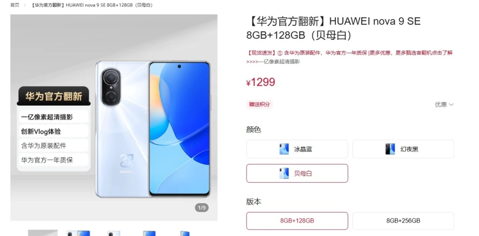 华为的官方翻新机来自正品机源,还可以享受一年的质保,代价上更自制,现在又有一款华为官方翻新机上架开售了,8+128GB只要1299元。 华为上架了官方翻新机nova9 SE手机,华为nova 9SE手机接纳的是6.78寸屏幕计划,屏占比高达94.85% ,90HZ革新率,尚有#D玻璃后盖。 华为nova9 SE手机硬件设置上接纳的是高通骁龙680 4G处置处罚器,预装鸿蒙2.0体系,支持鸿蒙4.0体系升级更新。 影像设置及电池续航方面,华为nova9 SE手机接纳的是后置一亿像素 AI 四照相像体系,为1亿像素主镜头+800万像素超广角镜+独立景深+近4厘米独立微距镜头,支持多机位模式、AI美拍、超大广角、夜景模式等照相功能,续航方面内置了4000mAh大容量电池,支持66W快速充电机NFC功能。 现在华为nova 9SE官方翻新机已经正式上架开售,此中8+128GB代价为1299 元,8+256GB 代价为1499 元,有冰晶蓝、贝母白、幻夜黑差别配色可以选择。 |