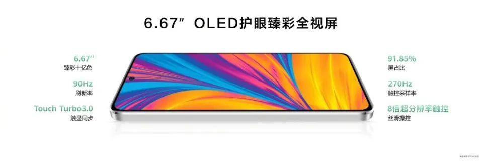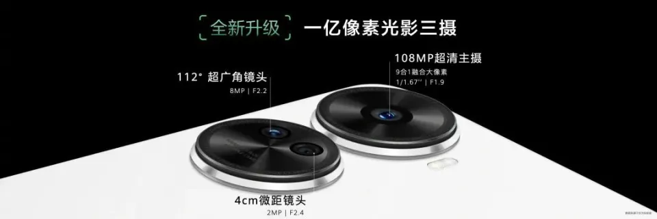 前置3200万像素摄像头,后置1亿像素光影三摄体系:1.08亿像素主摄+800万像素超广角+200万像素微距,接纳全新图像处置惩罚器,支持全场景RAW域2.0、智能运动抓拍2.0等功能,电池容量为4500mAh,支持66W华为超等快充Turbo 2.0,标称32分钟满电。