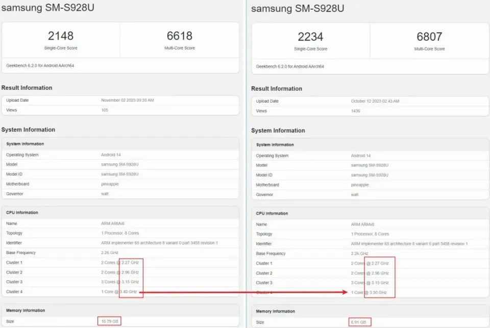 11月3日,vivo公布了vivo X100 Pro的外貌,以及vivo X100、iQOO 12系列的样张。 (左边是素皮,右边是玻璃) (偏幸圆的是Pro版,没有偏幸的是尺度版,上面两台都是Pro版) 当你以为相机居中就是对称的时间,vivo X100 Pro这个“日月云阶”特意把相机的玻璃盖板和周边的装饰做了纵向偏幸处置惩罚(还能如许玩???),两个颜色的后盖条纹也是极为特殊(我们这次站蓝色)。 腰线计划没有了,非常惋惜,同样惋惜的是:X90 Pro+对不起,我如今以为X100 Pro漂亮点…… iQOO 12/12 Pro样张↓ vivo X100尺度版长焦样张(F2.6,等效233mm,即10倍放大),再下面一张是3倍长焦微距↓ vivo X100 Pro,F2.5(下面是10倍与4.3倍人像)↓ 在发布之前,高通把平常版的骁龙8 Gen 3,提频到和原来“骁龙8 Gen 3 For Galaxy”一样的频率。 当各人以为“For Galaxy”变成“For Everyone”的时间,骁龙8 Gen 3 For Galaxy又冒出来了。 11月3日,三星Galaxy S24 Ultra的新跑分出炉,骁龙8 Gen 3 For Galaxy竟然还在,X4超大核从3.3GHz象征性超频到3.4GHz,GPU听说从903MHz超到1GHz。 但这高到离谱的频率,也就只有跑分的时间悦目,而且以三星的散热设置和调控风俗,新版Galaxy S24 Ultra跑分还降落了(功耗进步,更快撞到温控墙)…… 更新一下信息: 骁龙8 Gen 3 For Galaxy,1颗3.4GHz的X4 + 3颗3.15GHz的A720+ 2颗2.96GHz的A720+ 2颗2.27GHz的A520,Adreno 750(1GHz?) 骁龙8 Gen3,1颗3.3GHz的X4+3颗3.15GHz的A720+2颗2.96GHz的A720+2颗2.27GHz的A520,Adreno 750 903MHz(默频770MHz) 已被取消的骁龙8 Gen 3平常版,是3.19GHz的X4+5颗2.96GHz的A720(3+2)+ 2颗2.27GHz的A520,Adreno 750 GPU770MHz |