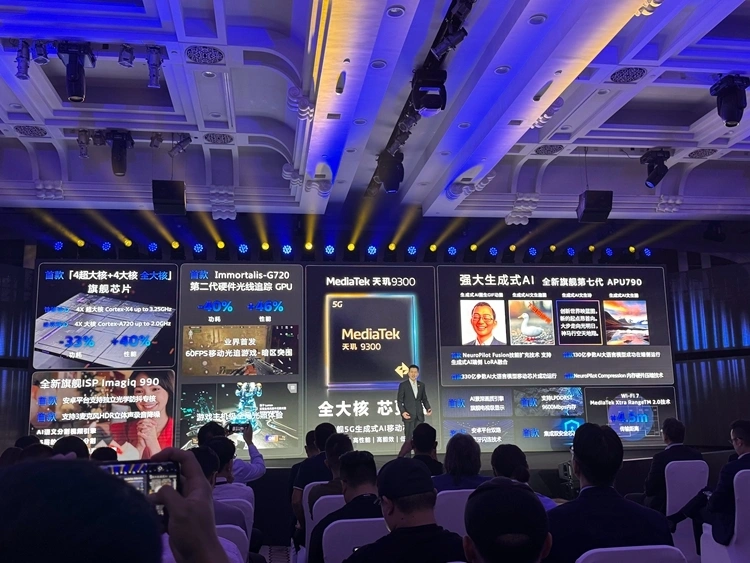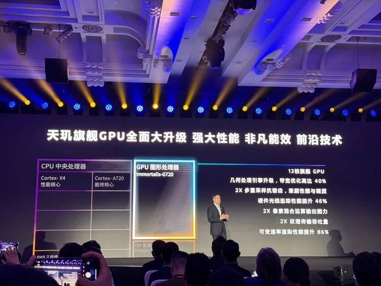 这一次,联发科大概是真的急了! 固然联发科已经一连3年问鼎环球手机SoC市场份额第一名,但是在旗舰高端手机范畴,却要比友商弱一些,而本日联发科所发布的天玑9300旗舰处置惩罚器,看到了联发科打击旗舰市场的刻意。 起首在CPU方面,天玑9300这次大刀阔斧砍掉了小的能效核心,全部接纳大核,此中包罗4颗Cortex-X4超大核,最高频率3.25GHz,4颗2.0GHz的Cortex-A720大核,峰值性能提升到达40%,功耗低沉33%,性能提升非常大,可以说是牙膏挤爆!要知道以往旗舰处置惩罚器通例升级广泛提升20%~30%。 在GeekBench v6多核性能测试中,天玑9300的CPU多核性能以致可以到达8000分,对比友商的旗舰处置惩罚器上风显着,在多核性能上遥遥领先,而这也是全面接纳大核所带来的上风。 而在GPU方面,天玑9300处置惩罚器接纳的是新一代12核Immortalis-G720 GPU,相比上代,峰值性能提升46%,功耗低沉40%,同样也是一个非常大升级。 天玑9300处置惩罚器在GFXBench V5.0.6 1440P Aztec Ruins Vulkan可以到达99FPS,也是高于友商旗舰处置惩罚器的水平。别的在崩坏:星穹铁道游戏中,非常高的画质设定下30分钟游戏可以做到满帧运行,性能非常霸道。 而且搭载了第二代硬件光线追踪引擎,支持60FPS光线追踪。同时将MAGT游戏自顺应调控技能升级为“星速引擎”,做到实时资源调治,游戏体验流畅且不发烫,并提升游戏加载和登入速率,同时该项技能还将应用到短视频应用中。 与骁龙8 Gen 3一样,天玑9300处置惩罚器也开始更留意AI性能本领,为即将到来的手机天生式AI做准备。在AI方面,天玑9300接纳的是第七代AI处置惩罚器APU 790,整数运算与浮点运算的性能是上代的2倍,功耗低沉45%,而且内置了硬件级的天生式AI引擎,并深度适配了Transformer模子举行算子加速,处置惩罚器是上代的8倍,可以或许做到1秒内天生图像。 同时与vivo也有了更精密的互助,针对大预言模子的特性,联发科开发了混淆精度INT4量化技能,连合MediaTek内存硬件压缩技能NeuroPilot Compression,提升了内存带宽的利用率,淘汰AI大模子对内存的占用,从而支持包罗10亿、70亿、130亿以致300亿参数的AI大模子支持在天玑9300平台的终端上运行。 vivo现场也公布,vivo X100系列将会首发搭载天玑9300处置惩罚器。 影像方面,天玑9300的ISP影像处置惩罚器接纳的是Imagiq 990,支持16层的图像语义分割,可以或许做到实时逐帧优化,同时可以拍摄4K影戏级虚化结果,支持全像素对焦2倍无损变焦,而且集成了OIS光学防抖专核以及支持3麦克风高动态灌音降噪。 联发科天玑9300的CPU依托于全大核的筹划,CPU在多核性能方面提升显着,而全大核的筹划很有大概会是下一个手机处置惩罚器的方向,再次升级的GPU也是到达领先的水准,而在AI性能方面依托于算子加速、内存硬件加速等技能,与vivo联手以致已经可以做到330亿端侧AI大语言模子运行,为即将到来的手机天生式AI做好了准备。 |