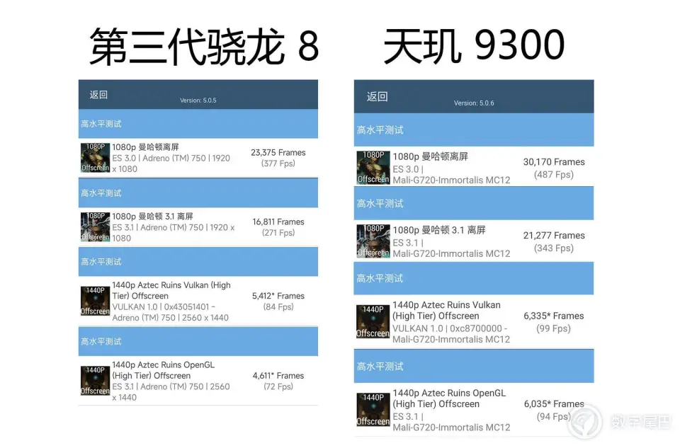 其着实很早从前,「性能过剩」 一类的说法已经开始盛行。但现实上随着应用生态的日益繁荣,一款应用通常会凝集根本需求之外的浩繁功能。比方直播应用,就已经不是单纯调用摄像头、网络和屏幕,而是加入了大量的美颜算法、画面殊效、滤镜之类的功能。 很多看似一样平常应用的利用,其背后已经是一种重载利用场景,此时分身一样平常应用运算的 SoC小核心在这个时间已经非常吃力,大部门压力都来到了大核心。面临应用性能需求日益增长,小核心反而处于 「无力可出」 的尴尬位置。这个时间,联发科天玑 9300 以 「全大核」 的新架构出现,全大核的期间即将到来。 天玑 9300 四超大核+四大核架构分析 面临着 「4 超大核 + 4 大核」 的超强架构,很多人会以为核心计划过于激进,同时也更担心没有小核心会导致一样平常利用时功耗过大。 但究竟恰恰相反,全大核架构起首有利于多使命同时实行的处理处罚本领,包管了多使运气行的流通性,去掉小核心的累赘运算。这对于一些同时开启两个重载应用场景下尤其紧张,由于充足多的大核心,在性能调理上才气更加从容。 全大核的多核性能上风直接表如今现实应用场景上,在运动现场可以看到,运行极高画质 《原神》 的工程机同时举行微信视频通话,依然能肉眼可见的满帧运行。 而面临单应用时,大核心强劲的处理处罚本领可以快速完成当前使命。更快地处理处罚完使命,也就意味着大核心能更快得到苏息,反而低沉了功耗。 而且天玑 9300 全面接纳了乱序实行内核,实行单位不须要按照次序完备实行下令,可以更为公道地调解指令实行次序,从而进步了实行单位的运行服从,也能让 CPU 运算资源利用更加充实。 全大核,全气力 面临着由台积电第三代 4nm 工艺打造,227 亿晶体管,4 × Cortex-X4 + 4 × Cortex-A720(此中一颗 X4 还是 3.25GHz 高频超大核),Immortalis-G720 12 核心 GPU 的天玑 9300,这颗纸面参数爆表的新架构旗舰 SoC 又有怎样的详细测试性能呢?我们也有幸提早举行上手实测。 起首还是各人熟悉的安兔兔最新版,天玑 9300 跑分直接突破 200 万分大关,来到了 2154114 分,这也是我们如今实测过最高的安兔兔跑分。 在 CPU 专项测试 Geekbench 6 当中,天玑 9300 单核得分为 2199 分,多核为 7586 分,多核效果相称精良,绝对是安卓阵营第一梯队。 而在 GPU 专项测试 GFXBench 中,曼哈顿 3.0 1080P 离屏测试为 487 帧,曼哈顿 3.1 1080P 离屏为 343 帧,1440P Aztec Vulkan 离屏为 99 帧,Aztec OpenGL 离屏为 94 帧。 由于这次天玑 9300 光追性能相比上代 46% 提拔,此次特殊加入 Basemark In-Vitro 光追专项测试。终极得分为 4741 分,均匀 47.4 帧。必须要分析的是,天玑 9300将支持全局光照技能,也是行业第一款可以或许支持 60 帧光追手游的旗舰 SoC,可以看出天玑在前沿技能的发展也是保持领先职位。 大概这些数据单纯写出来没有什么概念,那我们可以拿高通最新最强的第三代骁龙 8 效果来尴尬刁难比。 可以清晰地看到,天玑 9300 在安兔兔测试中 CPU 和 GPU 部门都大幅度高出了第三代骁龙 8 的得分。 在 Geekbench 中,天玑 9300 与第三代骁龙 8 的单核得分根本一样,究竟都是高频的 Cortex-X4 超大核心,而在多核方面,全大核架构的天玑 9300 表现出了显着的上风。 同样在 GFXBench 的多项离屏测试当中,天玑 9300 的 12 核 Immortalis-G720 也发挥了极佳的表现,都要比第三代骁龙 8 的 Adreno 750 有更高的效果。特殊是在曼哈顿离屏测试中,天玑 9300 帧数表现要大幅领先第三代骁龙 8。 而在 Basemark In-Vitro 光追专项测试内里,天玑 9300 得分也要高于第三代骁龙 8,详细均匀帧数也有 7 帧的差距。 通过以上的测试效果来看,很显着天玑 9300 此次在 CPU、GPU、乃至光追性能上,都要比高通第三代骁龙 8 更为强盛。特殊在多核心方面,全大核新架构的天玑 9300 拥有了更多的自然上风。 满帧,蛮省电 天玑 9300 的极限性能方面肯定是不须要担心了,如今最大的疑问就在于其强横的性能会否导致出现过于严厉的功耗题目。要测试长期性能功耗表现,自然是通过监测游戏数据来得直接。 起首还是各人喜闻乐见的《原神》,测试线路是我们常用的从须弥南方阿陀河谷往北边跑图 30 分钟,同时设置 60 帧率极高画质,路上主动寻怪,各种元素发作、冲刺都在用,没有一刻会静止下来。在这种重载游戏场景下,想不到天玑 9300 居然可以或许稳稳压在 60 帧,详细均匀帧数为 59.8 帧,险些没有掉下来过。然而更想不到的是,这种高压力之下,功耗也只来到 5.2W。 用作参考,在如许的 《原神》 高压力测试场景下,第三代骁龙 8 的详细均匀帧数为 58.8 帧,功耗为 4.9W。相比力两者详细的帧率颠簸情况来说,天玑 9300 实在是有更高的能效比。而且这只是联发科工程机的表现,到末了品牌终端产物加上恰当的优化,同帧率下,功耗比第三代骁龙 8 更低一些也应该没有题目。 别的也测试比 《原神》 压力还要更大的 《崩坏·星穹铁道》,由于 《星铁》 的游戏模式并不是开放式天下,为了镌汰切换舆图的帧率颠簸,以是这里重要以测试长乐天地区跑图 30 分钟检测其稳固性为目的,同样设置 60 帧率的最高画质。在跑图时根本都接纳冲刺跑图,压力进一步加剧。30 分钟后监测到的均匀帧率为 58.8 帧,对于长乐天如许的高压力地区,这个帧数的安稳性还是相称不错。功耗来到 6.2W,符合预期。理论上来说,在这么高压力的舆图都能保持这个稳固性,那