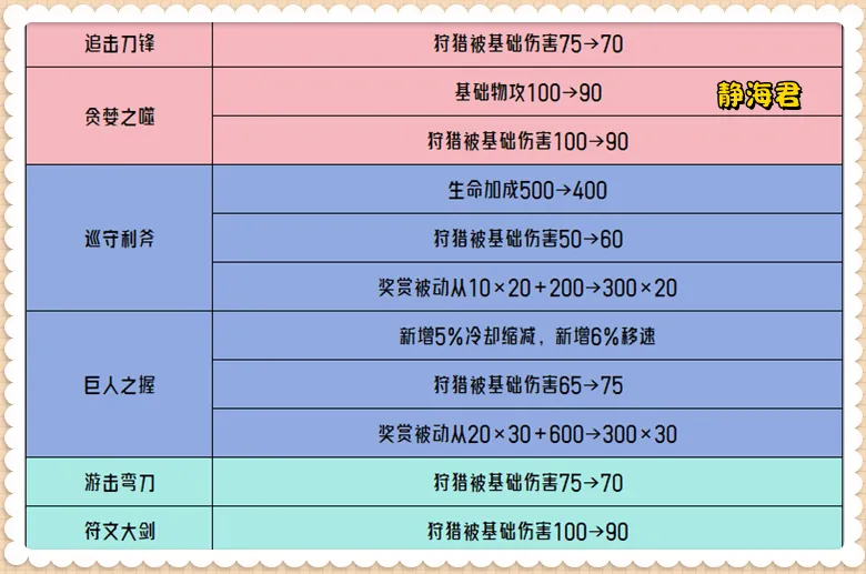 文/静海君 在本周的正式服更新中,筹谋静静的调解了肉刀、红刀和蓝刀的属性,在全部打野刀同时调解后,打野的梯度再次出现变革。 前情回顾简单回顾一下打野刀的调解吧。 红刀削弱,狩猎被动的底子伤害低沉;肉刀增强,狩猎被动的底子伤害增长,且生命值加成和底子属性有很大提升;蓝刀削弱,狩猎被动的底子伤害低沉。 假如是单纯的削弱红刀大概增强肉刀影响肯定不会太大,但假如在削弱一件装备的同时,还增强了它的竞争对手,那环境可就大不雷同了。 胜率的变革一样寻常胜率我比力关注的是前面(胜率高的)和反面(胜率低的)。 ⑴全段位的数据 撤消不具备代表性(我以为的)的雅典娜,如今全段位胜率前8以及倒8的好汉数据如上图: 前8好汉中,胜率有提升的好汉只有典韦。关于典韦我要偏重说一下,当典韦胜率提升的同时,其对手的胜率都低沉了,以是出场率高达21%的他,胜率实在已经是全部打野中第三了(中心尚有个雅典娜)。 倒8好汉中,阿古朵、铠、猪八戒、亚瑟和夏侯惇的胜率均有差别程度的提升,这5名好汉有一个共性——他们都是坦克好汉。 ⑵顶峰赛的数据 在前8好汉中,胜率有提升的分别是司马懿、芈月、阿轲和娜可露露。这四名好汉有两名是法师,两名是刺客,乍一看和本次打野刀的调解没有直接关系,但在出场率较高曹操、李白的胜率低沉后,对位的他们胜率天然会多少有些提升。 在后8好汉中,胜率有提升的是阿古朵、猪八戒、孙悟空、赵云和夏侯惇。反面坦克好汉的胜率都提升了,赵云和孙悟空胜率提升的缘故原由个人感觉也跟前8雷同。 ⑶顶端局的数据 顶端局前8好汉中,曹操、嫦娥、司马懿的胜率有提升,包罗裴擒虎、阿轲、娜可露露、李白、兰陵王在内的5名刺客好汉胜率同时下滑。 在后8名好汉中,只有阿古朵、赵怀真、猪八戒的胜率有提升,其他满是降落。 能玩和不能玩的好汉数据是不会说谎的,末了让我们总结一下哪些打野好汉强度较高(能玩),哪些较低(不能玩)。 ⑴保举玩的好汉 在调解后,最保举玩的打野好汉是曹操,大概如今的曹操并没有之前肉刀时期强,但由于打野刀是同时调解的,在他强度低沉的同时,其他打野的强度实在也是有低沉的,对比之后,曹操又再次成为了打野位置上强度最高,最适当各人训练的好汉。 假如后续增强肉刀,曹操可以转肉刀,假如后续筹谋再次削弱红刀,敏捷型打野肯定更扛不住,以是只要筹谋不直接从曹操本体动手,他都将立于不败之地。 关于曹操的出装思绪也非常的简单:红刀(如今照旧保举红刀)+反抗之靴+暗影战斧+冰痕之握+不死鸟之眼+纯净苍穹。 除了曹操之外,手速较低的人在全段位可以再给典韦一次机会(夹带私货哈哈),假如你对使用有信心,别的两名值得保举的打野好汉是嫦娥和裴擒虎。 ⑵不能玩的好汉 固然肉刀有显着调解,固然阿古朵、猪八戒等坦克好汉的数据有较大提升,但不管是全段位,照旧高端局,坦克好汉的体现都很一样寻常,以是假如你想打野,那就最好不要选择坦克好汉(尤其是阿古朵、肉铠等)。 话说转头,纵然在肉刀全锋利的时间,这些坦克打野胜率也不是很高,毕竟怎么做才气完成对他们的打捞,这一点大概必要筹谋好好的去想想办法了。 以上,我是静海君,江湖不大,有缘下次再见。 |