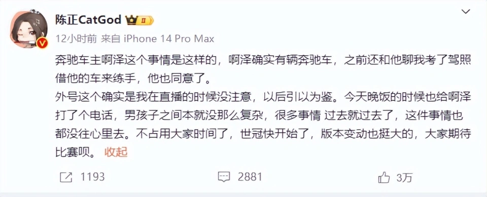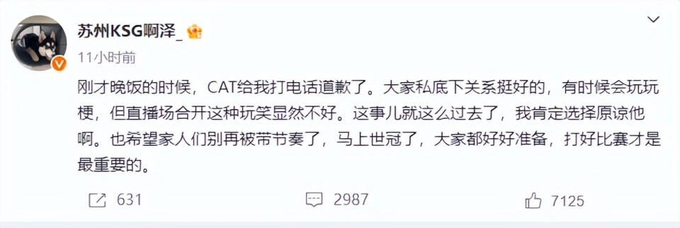 近来KPL选手们都在练习世冠版本的新豪杰,各支队伍之间也在随意组队。不外AG猫神不知道怎么了,忽然在直播的时间往事重提,叫啊泽背刺。除此之外还将游戏ID改成了疾驰车主啊泽。 AG猫神和KSG啊泽的事变一出,就有了不小的节奏,有人以为cat情商太低,也有人说是cat就是开顽笑。两人的节奏如今也有告终果,cat发文正式致歉,他表现啊泽确实有一辆疾驰车。而外号的事变是自己在直播时没留意,他和啊泽打电话举行了沟通,这件事变也就已往了。 啊泽方面也举行了回应,他说各人私底下关系都不错,直播开这种打趣确实不符合,cat致歉他肯定也是担当的,照旧渴望能把留意力放在比赛上。 从这两人的发言来看,啊泽和cat的私下关系大概不算差,固然场外粉丝吵得不可开交,但选手之间尚有接洽。cat当时说背刺的时间也是真的在开顽笑,私底下大概也会这么说,只不外这次没太留意场合。Cat寻常也是这种性格,偶然候会说出一些有节奏的话,此前叫过久诚麻神,还管alan叫漏神,这次应该就是没有思量太多,但既然双方都表态了,这件事变也差不多到此为止了。 苏州KSG俱乐部说要为啊泽的光荣权提告状讼。原来以为是要对cat提告状讼,但联合cat和啊泽的发言来看,两人的关系并没有特别僵,也不至于对簿公堂。KSG应该是针对一些网友大概是其他一些陵犯光荣权的人举行了诉讼。 世冠正赛立刻就要开打了,无论是啊泽照旧cat应该都不渴望这件事变影响两队的比赛,但假如两队真的遇上,话题度肯定是拉满了。 各人对于AG和KSG近来的这波节奏有何看法呢?接待在批评区一起讨论吧。 |
