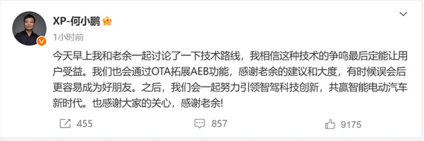 作者|路世明 编辑|大 风 假如说汽车圈迩来谁最烦躁,何小鹏当属第一人。 近一个月多来,关于小鹏汽车的“贫苦事”一连不绝。先是何小鹏与余承东就AEB技能拉开了一场线上激辩,引发行业热议;再是小鹏掀起一场内部反腐举措,原小鹏汽车副总裁、采购部负责人李丰被停职观察;紧接着超1500名小鹏P7车主又联名致信何小鹏,要求更换车及芯片等...... 一边是贫苦不绝,另一边却传来喜报。据小鹏官方数据,小鹏G9在10月份以4593辆的贩卖表现位列中大型纯电SUV销量榜首,而整个10月的零售销量也高出了2万辆,创出单月销量新高,同比上涨292.1%的同时,环比涨幅也高达三成。 作为掌门人,面对一连串的“惊吓”和“惊喜”,何小鹏心田难免会响起一首《我的心太乱》。 固然负面影响不可克制,但这大概也能让小鹏更加抗打和成熟一些。 AEB之争,体面收场 和余承东的争辩,终极照旧以何小鹏的“感谢”而体面竣事。 11月9日上午,何小鹏在微博账户公开发文,称其早上与余承东就技能蹊径举行了探究,但没有给出结论,只是对余承东的发起和美丽表达了感谢,偶然候误会后更轻易成为好朋侪。 之以是称之为“体面”竣事,是由于在这场争辩中,何小鹏不光是“发起者”,也是“输家”。 可以或许预推测的是,假如不从更高层面发言来为此事故画上句号,再“闹”下去,只会让何小鹏与小鹏汽车更加的惆怅。 回首整个事故的来龙去脉,11月1日,何小鹏对“针对问界新M7大定用户的观察结果表现,很多人都乐意为AEB买单”作出回应:“友商讲了AEB,我以为99%是假的,它就是造假,那些宣传都不是公司官方发布的,满是来自小视频。我们的人也去问了,它的AEB根本不能开,路上误刹车的环境太多了。” 对于这种指名道姓的“诽谤”,不停喜欢“斗嘴”的余承东自然忍不了。仅仅两天以后,余承东直接在本身朋侪圈中“反击”:“连AEB是什么,居然有车企一把手还根本没有搞懂呢......” 余承东“开喷”之后,何小鹏隔日也在朋侪圈“阴阳怪气”的说道:“我迩来评价了一个行业乱象,结果行业没急,非行业的倒急了,不知道他急什么。” 两人你来我往,乐成引起了整个行业的“爱好”,不少行业大佬也反复发文,渴望可以或许“蹭”上这波流量。但对大多数吃瓜群众来说,他们以致不知道这场争辩的“核心”是什么。 究竟上,所谓的AEB技能即汽车自动告急制动体系,该功能可以最大限度地举行自动告急刹车制动或使车辆减速,从而低沉与火线车辆或行人发生碰撞的概率,克制事故发生。不外该技能由于缺乏相应标准,导致了各家车企设定触发AEB的速率并不雷同。 11月7日,紧跟热门的懂车帝发起了一场针对AEB功能的夜间测试。“夜间AEB对静态假车”测试项目中,华为背书的问界M5和阿维塔11均可以做到时速80km/h下刹停,而小鹏G6和G9两款车仅能做到在时速40km/h下的刹停。 在传统技能理念中,AEB设定的速率并非越高越好。假如速率较高的环境下错误触发该功能,很洪流平上会使得车内职员受伤,但假如设定速率过低,又满足不了用户的需求,就比如说常常跑高速的斲丧者,自然是渴望AEB设定速率越高越好。 小鹏的AEB和自动驾驶是两套完全独立的体系,AEB无法调用智能驾驶传感器的强大感知本领,依然是博世的传统方案。在环境感知本领不敷的时间,过于灵敏的AEB简直大概会造成更大的伤害和丧失,从这个角度,小鹏现有方案是公道的。 标题在于,华为的AEB走的并非传统蹊径,华为的AEB是调用了智能驾驶的感知本领之后的AEB。换句话说,华为的AEB并不是说遇到伤害环境以最大刹车加速度直接刹死,而是当汽车判断人驾存在伤害的时间,按照自动驾驶对于这种场景的处置惩罚方式担当处置惩罚。 假如从技能发展的角度来看,显然是余承东“胜利”的一方。但可以或许信任,颠末此事故的小鹏真的会“通过OTA拓展AEB功能”。而无论谁输谁赢,这场争论都将促使行业加速创新,进一步利好斲丧者。 内部反腐,构造调解 资本控制不停是车企获取利润的告急本领,有用的资本控制可以镌汰企业的生产资本,增长企业的利润空间,进步企业的竞争力。但不停以来,车企采购部作为负责确认供应商、采购代价的职能部分,成为了汽车财产链条中贪腐的高发区。 一月前,小鹏内部公布和公示了供应链反腐观察的结果,原公司的副总裁、采购部总司理李丰被公布停职,并被警方带走,与此同时,尚有多名员工被点名留下,共同公司和警方的观察。 针对此事,小鹏汽车回应表现,公司采取举措是正常的反腐倡廉活动,对于腐败活动,发现一起、纠错一起,绝不姑息,此次事故涉及面小,不影响商务、生产环节。 据相识,小鹏汽车曾在2022年底公布对供应链业务部分举行调解,将原来的供应链服务部、营销服务采购部和零部件采购三个部分整合为一个部分,由李丰全权负责。而李丰末了一次公开露面,是在本年的6月27日,于“天下新汽车技能互助生态展会”上高谈汽车供应链的厘革。 究竟上,小鹏的这场反腐举措早有预兆。 起首是和大众互助的洽商中,小鹏向大众提交了G9的BOM资本,之后大众CEO表现他们把G9拆了,内部都非常好,但是“你们这个东西贵了25%,谁人东西贵了百分之十几”,何小鹏表现那顿饭吃得很有压力。 其次,在此前G6上市的时间,何小鹏对外公开称,原长城汽车总司理王凤英出任小鹏汽车总裁之前,小鹏汽车的零部件资本广泛高于偕行