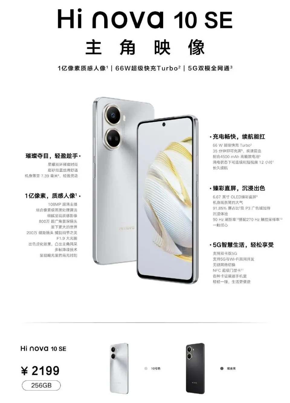 之前华为nova11 SE受到了网友们的热议,骁龙680居然卖到了1999元起步,也确实非常有勇气。本日别的一款新机中邮Hi nova10 SE正式发售:新机接纳了6.67英寸FHD+ OLED直面屏,支持90Hz革新率。 搭载骁龙695 5G处置惩罚器,后置双圆环相机模组,后置108MP主摄+800万超广角+200万微距。前置1600万。 电池容量4500mAh,支持66W快充。机身厚度7.39mm,重量184克,支持侧面指纹辨认和NFC。8+256GB售价2199元。 机子根本上就是华为nova10 SE的套娃版本,就是处置惩罚器从680 4G变为了骁龙695 5G。依然没啥产物竞争力,不保举购买。 |