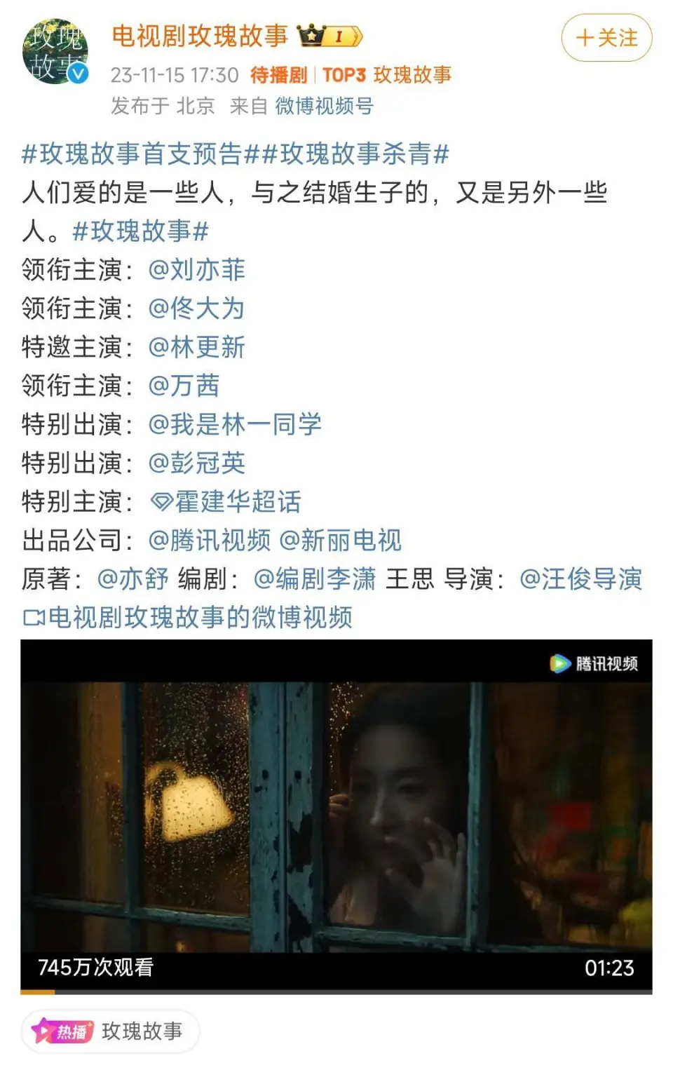 又一部备受等待的当代题材影视剧告竣了!它就是由刘亦菲继承主演的大女主作品《玫瑰故事》,这部剧可以说是从制作班底到演员设置,都是S级。 从制作班底来看,导演可以说是一部影视剧的魂魄,他的拍摄本领和审美影响着观众的观感,导演的本领对影视剧的质量有着至关告急的作用。《玫瑰故事》的导演是圈内着名导演汪俊,其有着很多可以称之为代表作的剧集。 从豆瓣评分8.0的《小分别》到豆瓣评分8.2的《小欢乐》,汪俊导演用一部又一部备受好评的当代题材作品证实着本身在该题材方面的拍摄力气。《玫瑰故事》同样是当代题材的作品,这也是汪俊导演的舒服圈。 从演员设置来说,《玫瑰故事》的演员阵容堪称豪华。女主角,也就是《玫瑰故事》一剧的魂魄人物黄亦玫的扮演者是85花中幼年成名的刘亦菲。无论是从热度人气方面,照旧国民度口碑方面,刘亦菲无疑都担得起S+级剧集的女主演。 众所周知,大女主题材作品的男主演并欠好找,比如暑期热播的《长相思》就是范例的大女主题材剧集,其找的主演都是青年演员或是刚刚在影视圈崭露锋芒的新生代演员。 但是,《玫瑰故事》的几位男主演都是成名已久,有一番主演代表作傍身的力派头演员,他们分别是佟大为、林更新、彭冠英和霍建华等。这四位男演员都是可以在其他当代题材作品中挑大梁,演男一号的演员。 此中,霍建华的出演让观众惊喜不已。自从他官宣了和林心如完婚的好消息之后,他似乎就将精力更多地放在了家庭方面。在迎来了女儿小海豚之后,他更是安心地伴随着女儿的发展。《玫瑰故事》是继2019年播出的《筑梦情缘》之后,霍建华时隔4年之后重回本地影视市场的首部剧集。 别的,《玫瑰故事》中另有很多各人耳熟能详的演员,比如老戏骨刘均和高曙光等,另有力派头演员万茜、蓝盈盈和朱珠等,这些演员的演技有目共睹,他们的参加也会为《玫瑰故事》带来更多的出色。 这部从制作班底到演员设置都非常强大的剧集,天经地义的受到了观众们的关注和讨论。《玫瑰故事》的制作方也趁热打铁,在告竣之后就公布了首支预告片,让观众直接感受制作班底的程度和演员们的力气。 从预告片中各人可以显着地感受到汪俊导演的审美是在线的,在他的镜头中,刘亦菲有着各种各样的美,脆弱的美,倔强的美,安静的美,这漂亮的背后是令人无法忽视的质感。那若即若离的隔断,那似是而非的暧昧,都极具氛围感,直击民气。 各人在讨论《玫瑰故事》的预告片的时间,提到的最多的词语就是“质感”,网友们纷纷夸赞“质感满满”、“艺术有质感,又不趋于离开共鸣的酷寒和变形,而是用热烈充满生命力的感情感动人”、“质感很绝,特别特别像影戏”等等。 《玫瑰故事》报告的是女主角黄亦玫的发展史,在发展的过程中她履历了很多次告别,也劳绩了几段感受并不雷同的爱情。此中,黄亦玫和多个男子之间的感情纠葛也是本剧的看点之一。 彭冠英扮演的是黄亦玫的白月光,名为庄国栋。他幼年有为,在芳华期间碰到了一个年轻可爱的女孩,也就是黄亦玫。两个人短暂的相爱,之后就迎来了分离。大概是有难言之隐,但是都改变不了两个人BE的了局。 林更新扮演的是黄亦玫的丈夫,方协文。方协文是一个暖和敦朴,老实老实的人,他没有办法给黄亦玫大张旗鼓的爱情,但是可以或许伴随黄亦玫过细水流长的日子。遗憾的是,他也没可以或许伴随黄亦玫到末了。 霍建华扮演的是黄亦玫的魂魄朋友,傅家明。他缄默沉静内敛,咀嚼高雅,和黄亦玫是很多人眼中的天生一对,他们在魂魄上有着深切的共鸣。在外人眼中,他们都不像是活在这个天下里的人。痛惜,魂魄朋友末了也离开了黄亦玫。 从白月光到丈夫再到魂魄朋友,他们每一个人都伴随着黄亦玫走了一段路,也都成为了黄亦玫人生中的过客。除了这三位之外,另有一个和黄亦玫有感情纠葛的人,那就是演员林一扮演的何西。这四位,也就是黄亦玫人生各个阶段中喜好的人了。 着名导演坐镇,浩繁力派头演员出演,剧情跌荡升沉,爱恨缱绻富足吸引观众,种种因素都预示着《玫瑰故事》在播出之后会得到一个傲人的结果。作为本剧当之无愧的一番女主演,刘亦菲的奇迹天然也会水涨船高。 客岁,刘亦菲在时隔16年之后回归影视剧市场,她和陈晓主演的《梦华录》成为了2022年毋庸置疑的爆款剧集。该剧也是刘亦菲成年之后播出的首部影视剧,该剧的结果再一次证实白刘亦菲的扛脚本领。 随后,刘亦菲和李现主演的《去有风的地方》播出,该剧在豆瓣拿下了8.7分的好结果。一部《梦华录》带来了热度和流量,一部《去有风的地方》赢得了口碑和认可。回归电视剧市场的刘亦菲结果斐然,也让其他的85花有了危急感。 刘亦菲离开电视剧市场的16年,正是杨幂和赵丽颖等85花崛起的16年。各人本以为离开电视剧市场这么多年之后,刘亦菲的回归会有很大的阻力,没想到她一返来就热度口碑双丰收,再一次成为了很多民气中的85花领头羊。 杨幂和赵丽颖两位85花“缱绻”多年,不绝是85花top的有力竞争者。本以为85花top的位置,不是杨幂来坐就是赵丽颖来坐了,没想到回归电视剧市场的刘亦菲“宝刀未老”。 云云看来,谁能坐上85花top的位置照旧一个未知数呢?各人更看好谁呢? 图片泉源网络 侵删 |