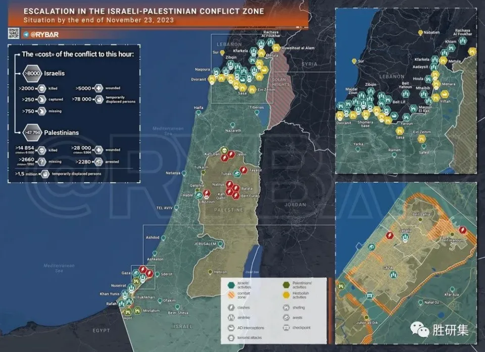 加沙地带前一天公布的停火协议本日尚未见效,到了晚上,卡塔尔外交部公布了新的休战日期:从上午 8 点到下周二。 然而,只管昨天没有正式服从停火协议,但加沙地带的炮击和战斗强度已大大降落。 但是以色列北部疆域却迎来高潮,真主党游击队对以色列北部疆域举行了 20 多次炮击,到达有史以来高峰。 加沙地带根据停火协议,第一批人质将于 24 日 15 点至 16 点左右交换,此事厥后得到哈马斯的证实。 这次是否能乐成实现停火,很快就会知道。 加沙境内的战斗剧烈水平已经大幅度降落,以色列国防军对汗尤尼斯、贾巴利亚、加沙、布赖吉和安努塞拉特营地举行了一系列打击,而且传在谢赫拉德万和拜特哈农地区发生了几园地面战斗。 南部地区胡塞武装继续炮击加沙地带疆域的定居点同时还发布了一段在他们之前捕获的以色列船银河首脑号上舞蹈的搞笑视频。 果然是草鞋军,穿的好像真的都是草鞋。 黎巴嫩疆域只管停火并未见效,加沙地带的局面还是有所清静,但是在北部,统统都完全相反。 昨天,据以色列国防军称,真主党游击队对以色列北部地区至少发动了 19 次打击,而该构造成员本身声称发动了 22 次打击。 轰炸的目标是疆域沿线的据点和定居点,打击过程中,游击队利用了布斯坦导弹、多管火箭炮和传统的反坦克导弹。 以色列消息人士称,真主党运动激增与前一天该构造几名高级成员被杀有关,但很难确定。 不外,思量到昨灵活主党代表公布他们筹划服从停火协议,固然他们不是这些协议的主体。 这分析以军的说法站不住脚,否则真主党不太大概答应停火。 约旦河西岸在西岸,以色列国防军和辛贝特对巴勒斯坦都会的大规模搜捕仍在继续。昨天,纳布卢斯附近的巴拉塔营地发生了本地住民与以色列安全队伍之间最暴力的辩说,该营地昨天遭到以军打击。 在办法中,以色列出动了无人机,并公布清除哈马斯领导人穆罕默德·扎赫德。 别的,杰宁、巴尔卡、阿赞、图巴斯、塔亚西尔和其他定居点的辩说仍在继续。 中东亲伊朗权势在巴以辩说的配景下,亲伊朗权势继续活泼。在叙利亚,亲伊朗团体昨天再次向该国东部科尼科油田附近的美国阵地开火。 在伊拉克,游击队向美军基地艾因阿萨德和埃尔比勒机场发射了多枚火箭弹。 据以色列财务部称,这场最新的巴以辩说天天使该国预算丧失信 2.7 亿美元,这让该国本已陷入逆境的预算雪上加霜。 而且战斗连续的时间越长,就会越困难。 不外,根据彭博社的说法,美国人乐意负担此中约莫 1/3 的财务本钱。 |