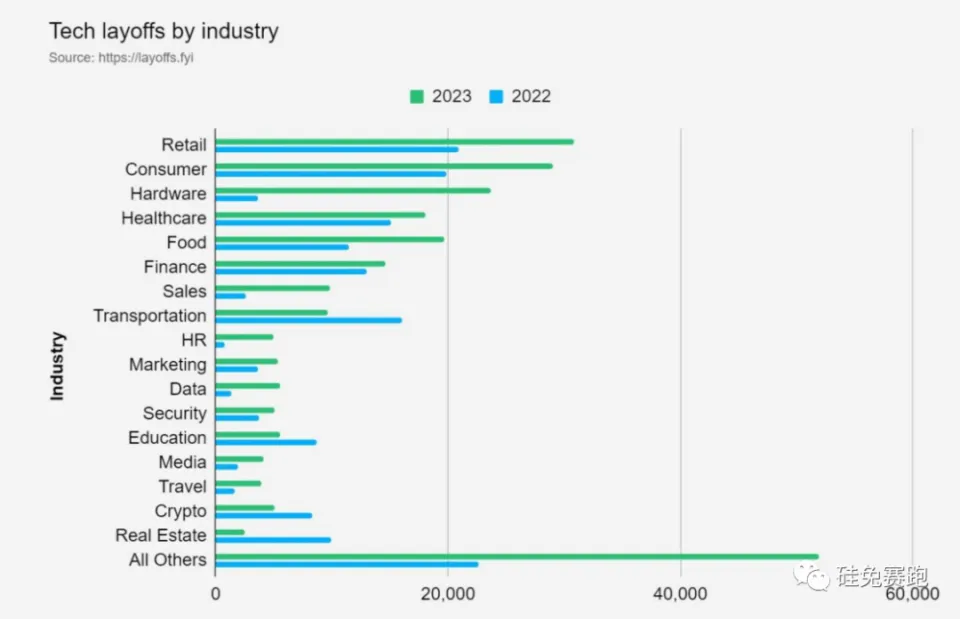 “为什么各家科技大厂都在裁人?” 假如要选出贯穿2023年外洋科技界的几个关键词,“裁人”这个词,恐怕得进top 3。 只管这一年,口罩的阴影徐徐散去,ChatGPT的火爆依然在引领科技界AI大讨论的主旋律,但裁人,才是谁人静静牵动全部人神经的副歌。 克日,包罗TechCrunch在内的多家媒体和数据机构,对科技界2023年的裁人情况举行了复盘。硅兔君在此根本上举行了提炼和增补,追踪和总结这些裁人征象,有助于我们相识变革,尤其是相识哪些公司正在面临着巨大的压力,以及对于那些现在有幸还在扩张的企业而言,可以追踪哪些公司出来的人才。固然,更告急的是,去判断将来的风险。 01 24万人失去工作,谷歌、Meta、亚马逊占前三Layoffs.fyi是一家根据公开信息追踪初创和科技公司裁人情况的美国网站,自新冠疫情开始以来关注科技界的裁人(由于Layoffs.fyi获取的数据源重要来自外媒,因此不讨论其对中国科技界裁人的信息)。 根据Layoffs.fyi统计,在疫情发作前的两年里,险些没有裁人的情况。 然而,从2022年下半年开始,裁人数量急剧上升,并险些波及到各行各业,如下图所示。 克制2023年11月中旬,科技行业已经失去了凌驾24万个工作岗位,这一数字已经比客岁同期增长了50%,而且还在不绝增长。有高达1119 家科技公司举行了裁人。 前7家裁人最多的科技公司中,Google、Amazon、Microsoft、Meta等大公司赫然在列。 此中,Amazon举行了多次大规模裁人,包罗2022年11月裁人10,000人,2023年1月裁人8,000人,2023年3月裁人9,000人。Amazon三轮裁人2.7万人位居裁人最多的科技公司首位,其次是Meta,2022年11月裁人11,000人,随后于2023年3月再裁人10,000人两轮裁人2.1万人。 只管2023年科技行业在夏秋季候裁人减缓,但到了11月,裁人活动又出现了加剧的苗头。 好比“榜一年老”亚马逊,正当年度最大促销节日玄色星期五风起云涌举行时,11月又开始了新的裁人操持,裁的照旧当年炙手可热的Alexa团队。亚马逊公布Alexa部门确认裁人数百人。 自2014年推出以来,亚马逊对Alexa举行了巨额投资,汇聚了业界顶尖的人才,致力于推动这一语音技能的发展。在“姐夫”杰夫·贝佐斯继承首席实行官期间,他尽力推许Alexa,并坚信语音技能将在将来重新界说人机交互方式。在亚马逊古迹如日方升的时间,险些有5000名员工尽力投入到Alexa和Echo的研发与运营中。 Alexa曾经一度光辉无比,然而现在,它正面临来自人工智能范畴的剧烈竞争,特别是来自OpenAI旗下的ChatGPT等智能谈天呆板人的竞争,形势严肃。 02 降本增效(险些)便是大规模裁人那么,为什么各家科技大厂都在裁人? 现在的广泛见解是,科技大厂裁人背后每每有多种因素在共同作用,包罗经济、通货膨胀、较高的利率、过分雇用以及新冠大盛行期间的就业调解,都是大概的“帮凶”。 简单分别的话,可以重要可分为两方面:宏观层面上,环球经济团体降温,斲丧者付出放缓;而微观层面上,很多企业履历了快速扩张,现在不得不通过裁人等本领来淘汰本钱。 而当这些缘故因由导致公司感受到营收和利润淘汰的威胁时,很多公司的本能反应是将裁人作为首选的生存本领。 尤其是电子商务为主业的公司。在疫情期间,为满意居家需求,该行业的公司曾将员工人数增长近一倍。然而,当前经济情况下,这些公司纷纷发现员工规模过大。 大型科技雇主,如Salesforce和谷歌母公司Alphabet,更倾向于宣称近期的裁人是在2019年至2022年快速扩张和招人之后发现了可调解空间。 只管一些经济学家也发起不要过于担心阑珊的大概性,但科技行业却不绝未能复苏。这导致科技公司在市场冷落的情况下连续镌汰工作职员,从以增长为焦点转向以服从为焦点的头脑方式,将关注点转向更为风雅化的运营和创新。 正如马克·扎克伯格在本年2月宣称的,2023将是“服从之年”。 但是,近两年来,大多数企业不绝夸大“降本增效”,现实上只是通过大规模裁人和关闭业务线来实现,以到告竣本优化和淘汰亏损的目的。 随着科技巨头裁人海潮愈演愈烈,“降本增效”这个说法一出来,险些等同于公司要大规模裁人的信号。这个越来越频仍的征象,大概也会让人们忽略了,着实,裁人并非是实现降本增效的唯一途径,倒更靠近于一种在短期内体现本钱淘汰的简单而直接的本领。 在这一波裁人潮中,假如选出最高调附和这种方式大概说最以裁人为豪的,恐怕还属马斯克和他的推特(现名为X)。 这位新晋推特CEO在继承 BBC 采访时体现,自接办以来,推特已经开除了近80%的员工,员工的人数从8000人降落到了1500人。马斯克以为,为顺应不绝变革的市场需求,对推特举行重新定位和重新构造是一项须要的厘革。 除了这些科技大厂,很多受风险投资支持的科技初创公司也在裁人,他们体现,风险投资融资减和缓初创公司估值降落是裁人的因素之一。 可以预见的是,在继续应对经济下行的情况下,科技行业的裁人势头仍将连续。 03 出现这些征兆,意味着公司要裁人了从这一波科技界裁人海潮中,Crunchbase也总结观察到了7条可以供个人判断公司是否要裁人的信号: 1.雇用、薪资或提拔冻结:薪资每每是大多数科技公司最明显的本钱,通常是公司实行控制本钱的重要途径。公司大概通过停息雇用除了最关键使命的职位外的其他职位,以及冻结现有员工的提拔和加薪,来实现这一目的。 2.财政体现亮红灯:一家陷入窘境、收入或利润下滑,大概没有按预期速率