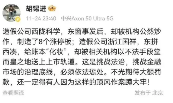 炒股5个月,胡锡进还是“破防”了。11月24日深夜,胡锡进发博剑指西陇科学和浙江国祥,“造假公司西陇科学,东窗事发后,却被机构公然炒作,制造了8个涨停板,造假公司浙江国祥,东拼西凑,给账本‘化装’,却被相干机构以非法本领堂而皇之地奉上上市轨道。” 在博文末端,胡锡进还绝不包容指出,“肯定得有人由于如许的顶风作案蹲大牢!”看得出来,老胡真的怒了。 然而就在不久后,他又将该微博删除了。 让胡锡进现在生气的西陇科学,明显是个“造假股”,却在受随处罚后还劳绩8个涨停板,当中确实猫腻不少。 造假28亿,老板累计减持12亿 西陇科学,是家化学试剂专业制造商和集成供应商,总部位于广东汕头。如许一家搞化学化工的高新技能企业,却频于财务造假。 2020年至2022年上半年,西陇科学通过假造乙二醇、甲醇等商业业务虚增收入及利润,累计虚增业务收入28.4亿,虚增利润2326.4万。 两年半时间,财务造假28亿,这个数字已经快赶上其市值的一半。 详细来看这两年半,西陇科学造假的胆量可以说越来越大。 2020年,其虚增营收5.9亿元,占其当年营收的9.5%;2021年,其虚增营收14.5亿元,占其当年营收的21.3%;2022上半年,其虚增营收7.8亿元,占其当期营收的22.9%。 大概是20年虚增营收让西陇科学尝到了长处,21年造假的营收数额是20年的2倍多。到22年上半年,依然不知收敛,继续保持高额造假。 本年7月,证监会广东羁系局对西陇科学作出处罚。造假了高出28亿后,西陇科学及其高管们,为此交出的罚款总计是:390万。 然而,西陇科学实控人家属的现收益,远不止几百万。 西陇科学的实控人是黄氏家属,包罗黄伟波、黄伟鹏、黄少群、黄侦凯、黄侦杰。此中黄伟波、黄伟鹏、黄少群是兄弟,黄侦凯、黄侦杰则是黄伟波之子。 五人之中,黄少群是第一大股东,也是公司董事长。黄少群出生于1966年,黄家三兄弟从1983年开始创业,直至客岁其才从哥哥黄伟鹏手中接过董事长一职。 企查查体现,黄少群有54次将公司股权质押的纪录。近来一次是本年9月,其因个人资金需求,将所持西陇科学股份的27%质押给浙江理想小额贷款有限公司,这些股份市值1.22亿元。 除了董事长将股权质押,实控人黄氏家属还常常减持,上市至今减持现金额合计高达12亿。光是在其虚增利润的2020至2022年间,大略盘算,现就已高出2亿元。 值得一提的是,西陇科学自上市以来,净利润加起来也不外10亿出头。黄氏家属减持的钱,比这么多年挣到的净利润还多。 变现了这么多,老板还不满意。该公司公告体现,2020年1月至2022年4月,公司控股股东黄伟波、黄伟鹏累计占用资金1.8亿,制止2022年10月20日尚有0.5亿尚未返还西陇科学。 九天八涨停,谁是“造假股”的背后推手 按理来说,财务造假,还被证监会处罚,应该是个负面消息。而且,11月初,厚交所还再次公开非难该公司及相干高管。 古怪的事变来了,在11月2日受到公开非难处分后,西陇科学11月8日至11月20日期间,在9个生意业务日内劳绩8个涨停板,股价累计上涨约116%。 乃至,就在这段短短的时间里,西陇科学发布了三次股票生意业务非常颠簸公告。 如许一只“造假股”,还能劳绩九天八板,谁是股价推手? 11月以来,西陇科学屡登龙虎榜。在其涨停的8个生意业务日,其都登上了龙虎榜。 详细来看,9个生意业务日内,多路顶级游资险些是“伐鼓花”式涌入: 11月9日,上海潥阳路1237万买入; 11月10日,温州帮4168万买入; 11月14日,方新侠2307万买入; 11月15日,上塘路和方新侠分别买入3539万和2744万; 11月17日,宁波桑田路2518万买入; 11月20日,东财散户大队多席位买入,而三家机构放肆卖出。 直至11月21日,西陇科学的股价重归清静,当日下跌7.75%。机构们呢,则早在20日就实现了“胜利大遁迹”。 以后,西陇科学出现下跌态势,直至29日才迎来反弹。 行走在热门线上的违规惯犯 西陇科学此番九天八板,似乎是蹭上了光刻胶的热度。 此前,投资者曾多次问到有关光刻胶的话题。对于投资者提出的“公司在芯片光刻胶方面还在投入研发吗”的标题,其煞有其事地体现“公司将根据市场变革和需求适时调解研发投入。” 不外,在这次九天八板中,其又发公告表明:未生产、贩卖光刻胶。只是生产和贩卖部门配套化学试剂,且占公司业务收入的比例较低。 不免让人以为,西陇科学这是“蹭完就跑”。 实在,这已经不是西陇科学第一次蹭热门了,其在这方面的操纵可谓老练。 2021年11月,西陇科学蹭上了“新冠”的热门。西陇科学股价先是连续三天涨超10%,随后乃至一度翻了一倍。 不外,在厚交所发布关注函后,其就灵敏回应称,“公司不涉及新冠药物的研发业务” 热衷蹭热门、违规占用资金、之外,西陇科学另有不少“案底”。客岁八月,其曾发布近五年被采取处罚或羁系及整改情况的公告,此中就提到公司有不少标题: 管帐政策披露不精确、非谋划性损益披露不充实、跨期确认收入、“三会”运作不规范、内部控制不到位、黑幕信息登记不精确...... 一家正儿八经的上市公司,还是应该把心思放在业务上,西陇科学作为一家高新技能企业更应云云。不外再看看其各种、财务造假的举动,难怪连不绝看好A股的胡锡进,都不由得破口痛骂,“肯定要有人蹲大牢!” |