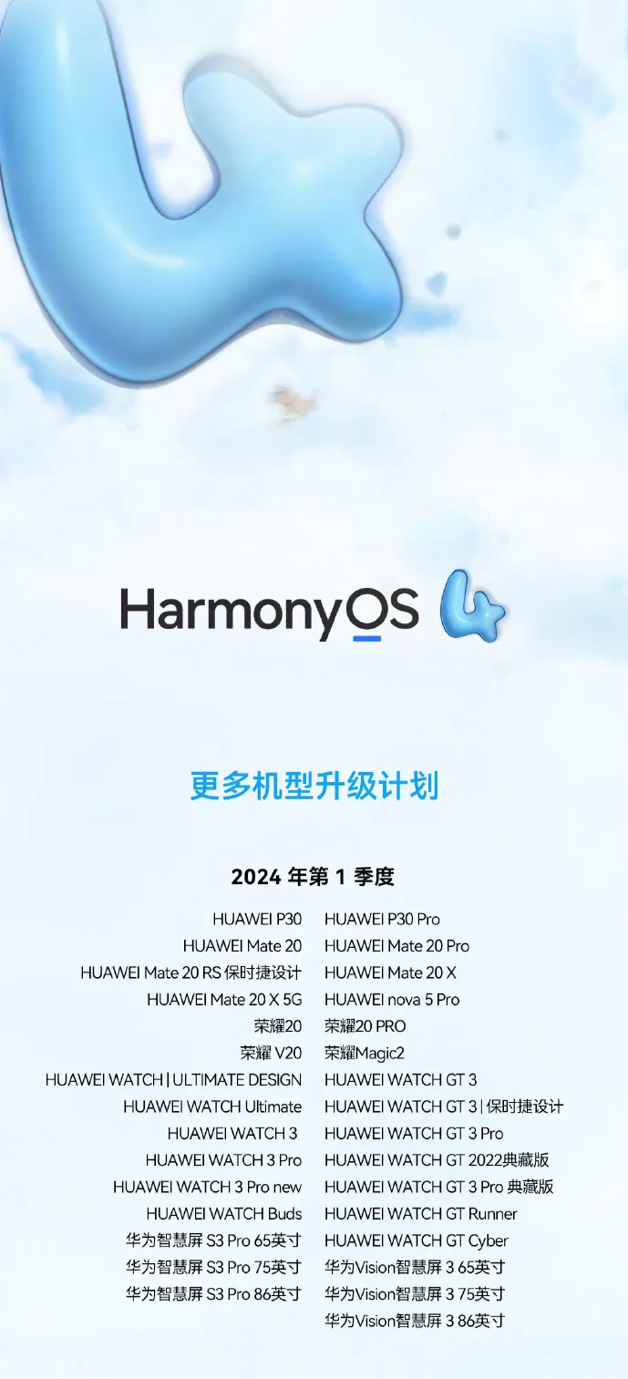 各人会在智能手机操纵体系新版本推送之后第一时间升级更新吗?华为鸿蒙体系在升级更新方面还是比力快比力积极,对于老机型也是比力照顾。 华为鸿蒙4.0体系推出后已经向浩繁机型推送了升级更新,包罗光彩30,光彩30 Pro等等多款光彩老机型。 2024年第一季度还会有多款华为老机型及光彩老机型开启鸿蒙4.0体系升级更新,根据HarmonyOS官方发布的鸿蒙4.0体系升级操持表现,2024年第一季度,华为P30,华为P30 Pro,华为Mate 20,华为Mate 20 Pro,华为Mate 20 RS保时捷操持,华为Mate 20X,华为Mate 20X 5G,华为nova 5 Pro这8款华为老机型以及光彩20,光彩20 Pro,光彩V20,光彩Magic2这四款光彩老机型,一共12款手机将会开启鸿蒙4.0体系升级更新。 除了这12款手机之外,另有多款华为智能手表以及华为智慧屏会开启鸿蒙4.0体系升级更新,以上这些机型装备很多也能升级体验鸿蒙4.0新体系了。 |