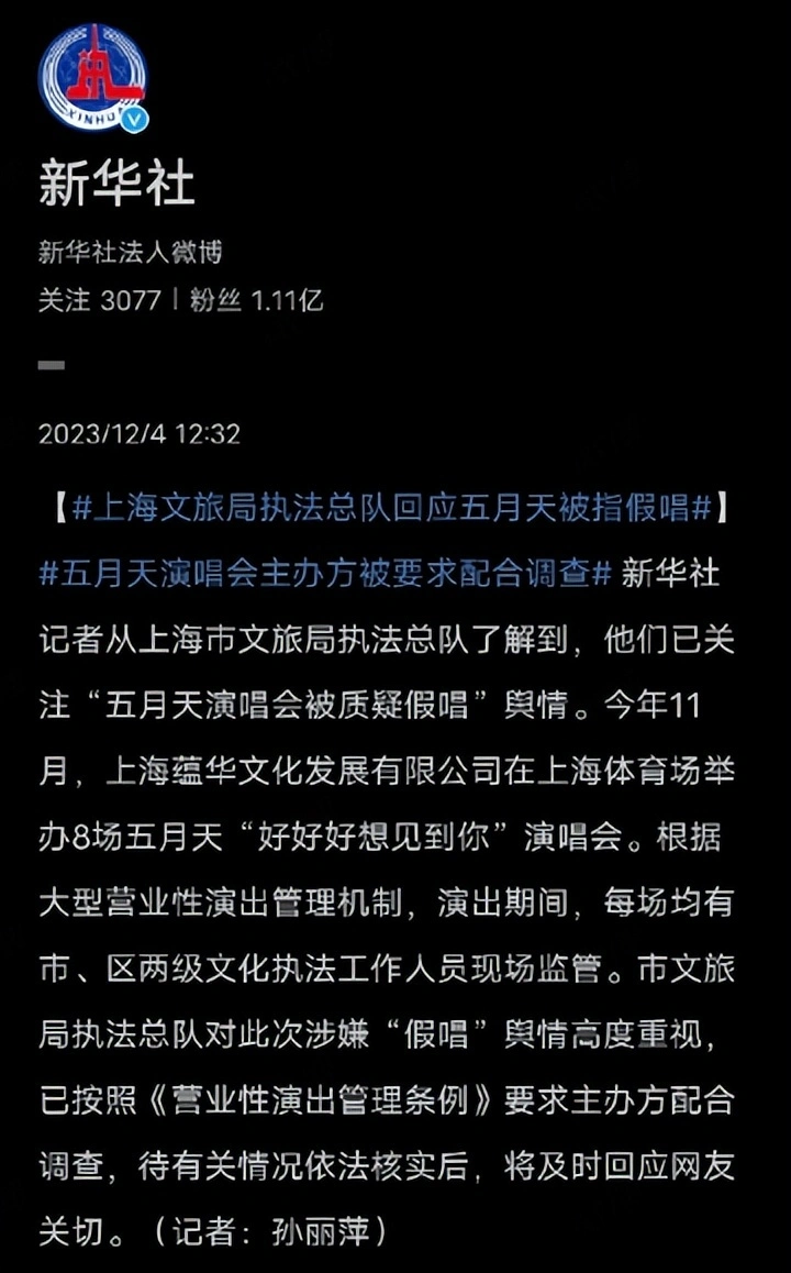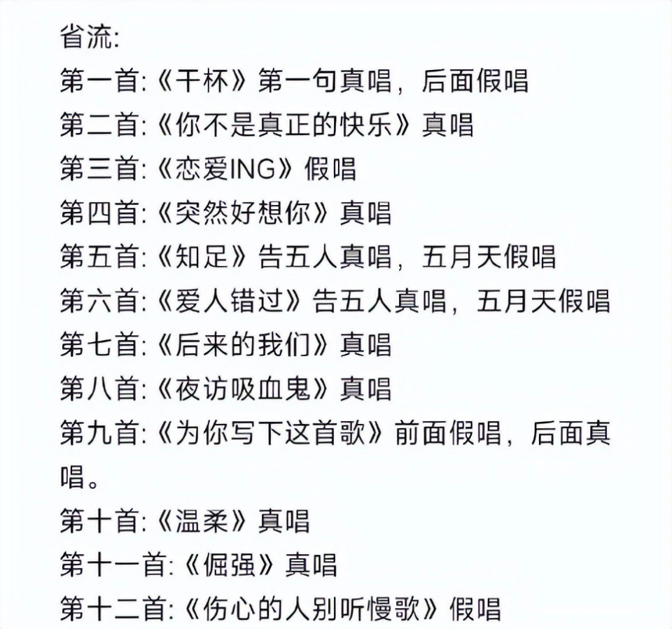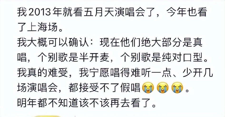 五月天爆了,真正意义上的出圈了,从11月20日有博主指出五月天疑似假唱后,事变到了现在,已经成了真正的公共变乱。 由于假唱,不但仅是职业道德,已经涉及了违规违法。 事变是因由是11月20日有博主指出,五月天的现场大概假唱。 而后B站大up主,根据五月天上海演唱会的音频做了分析,指出12首歌曲中,有5都城是假唱。 但消息传出后,五月天的粉丝义愤填膺,到博主的批评区举行詈骂以致威胁,导致博主直接向消协等对口单元举报,记者跟进曾多次拨打五月天经纪人的电话,均被挂断,现在事变举行到相干部门要求五月天的主理方共同观察了。 现在事变还没有终极定论,五月天也始终没有正面答复,经纪公司方表现会发没有假唱的声明,别的还表现法国巴黎演唱会将全程直播,请诸位见证的姿态。 但题目是,纵然之后的演唱会全部是真唱,也无法代表之前是真唱,固然,也有粉丝指出,之前并不是假唱,只是垫音和半开麦而已。 可这些老牌艺人主打的不是就一个唱功稳,全开麦吗?也正是云云,他们的粉丝才气数十年如一日的讽刺新进的爱豆唱功差,水平低,怎么到了现在,才发了他们也是云云? 和五月天同时挂在热搜上的,尚有林豪杰,林豪杰演唱会上的《不死之身》舞蹈片断被网友加上各种BGM恶搞,结果拔群。 以致不少艺人也跟风,包罗胡夏(已删除)、曾黎等。 这种对作品举行二创的鬼畜视频不少,很多作品照旧因此而红,但这次林豪杰不干了,直接发文:“假如你只是想通过在演出片断上加上奇怪的音乐来得到快乐,下次请不要来我的演唱会”,并表现不可笑、不恭敬,吓得胡夏连夜删除了本身舞蹈的视频。 林豪杰被批警惕眼开不起打趣。 尚有伍佰,一个本身全程不消唱歌,却开了无数演唱会的人,从开始唱满全场,到现在,背动手在台上喝水,指挥歌迷唱歌。 正如去过现场的歌迷表现,伍佰永世不会假唱,由于他根本不唱,虽说现场歌迷确实热情,但伍佰要是本身乐意唱,天然也是能唱的,但他偏偏就不唱,而是把麦递给歌迷,本身全场指挥,根本不想唱。 有一部门歌迷很吃这一套,说是情怀,但有更多歌迷说他“摆烂”,表现要情怀,我不会在家本身听唱片吗? 尚有小小复出一下的梁静茹,2018年演唱就被说是车祸现场,原来以为只是偶尔为之,但本年的演唱会跑调、倒嗓比比皆是,堪称大型车祸现场。 梁静茹倒嗓一时登上了热搜,网友吐槽“是演唱会的梁静茹,照旧KTV包房的我。” “燕尾蝶太惨了,好像立刻就不可了。” 事后,梁静茹本身也表现:“翻车了,下次会更好。” 但尚有没有下次就欠好说了。 同理,在澳门举行演唱会的陈奕迅被观众喊:“讲国语”后,直接飙起了英文,被责怪,事后各方的说法是,歌迷这么喊有下令的味道,假如是好好探究,他也可以说。 但很大一部门观众显然不买账,以为陈奕迅过于傲慢,挣歌迷的钱,又要给歌迷甩脸子,并拿出了歌神张学友做对比。 张学友演出会被要求讲国语,他立刻切换,并表现,本身寻常话说的也很好。 黎明在演唱会上讲粤语,被要求讲寻常话,立刻说好。 张卫健开演唱会之前,干脆直接问观众,是寻常话照旧粤语。 在观众内心,张学友黎明如许的做派才是巨星和先辈艺人的代表风格,自身业务水平过硬,恭敬观众,纵然有差别看法,也很少直接回怼。 固然陈奕迅事后致歉了,说本身代入了太多个人感情,但怎么说呢,这件事终究不那么圆满。 很多人对陈奕迅的不满不在于他的寻常话是否尺度,是否立即说了,而是当时直接用英语复兴,显着就是有和观众赌气以致寻衅的意味。 假唱、走音、现场反差、警惕眼、不规矩,耍大牌等等这些题目,在娱乐圈从来都不少,但在公众的印象里,这些是年轻爱豆特有的弊端。 一提及先辈艺人,大部门都是德艺双馨,尤其是敬业二字,险些可以涵盖大部门老艺人,但老艺人们红了20年后,走出他们的期间,与年轻艺人同时面对传媒和大众的时间,他们的表现也并不那么好,与粉丝心目中的谁人人相差甚远,这到底是怎么了? 现实上,是粉丝弄错了定位,这些艺人年轻时,在上升期,竞争猛烈,错了就没有上位时机,天然是敬业勤奋,对粉丝爱护有加,好比五月天,多年前就被说唱功欠好,但至少都是真唱,态度还在。 尚有周杰伦,当年的唱片一张一张都是佳构,而现在呢?开一场演唱会,胡乱唱几首歌,剩下的都是把戏演出,堪称大型划水现场。 是他们变了吗?没有,他们的终极目的说到底照旧赢利,只是从前要靠积极和力气,现在靠情怀就好。 演唱会是歌手最赢利的项目,据大抵估算,五月天上海的几场演唱会收入不低于6个亿,这比发唱片要快很多,且巡回演出都是成建制的装备和人,一地一地复制粘贴就可,除了启动稍有贫苦,背面的流程可谓丝滑无比。 大部门先辈歌手隐退又出山开演唱会,不是真的忘不了歌迷,是真的缺钱了,陈奕迅在开演唱会前,也曾说过卡里的钱没有增长,内心有些慌了。 陈奕迅的演常会同样挣钱,他和其他歌手的巡回演唱会,一场收入就是近4000万,逢年过节到各舞台去串场唱歌,一个圣诞加新年收入就近亿,2022年起,陈奕迅还开了举世演唱会。 这些艺人的心态一是累了,二是烦了,三是有托底。 先辈艺人在圈里几十年里,对工作有热情,但不多,顺顺遂利还行,但凡有些妨害,根本就懒得处置处罚,外人看着光鲜的职业,对他们来说犹如鸡肋,早就没了奇怪感,倦了。 二是烦了,他们本身日进斗金,阶级早就比歌迷高了很多,但通常还