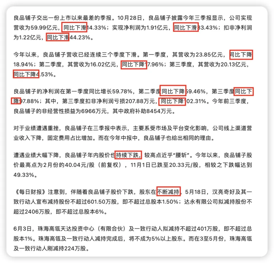 新零售行业的冬天来了。 上个月29日,良品铺子新董事长、总司理杨银芬发布全员公开信体现:将启动新一轮改革。 没别的,就是贬价。 “不走这条路,就是绝路。” 据公开信的说法,良品铺子的业务端将实验17年来最大规模贬价,300款产物匀称贬价22%,最高降幅45%。 贬价紧张会合在资源优化但不影响风致以及复购率高的零食上。 已往,良品铺子定位高端零食,引领零食斲丧升级,得益于新斲丧的崛起,2020年2月24日,良品铺子乐成在上交所挂牌上市,成为“高端零食第一股”。 如今,良品铺子为何主动贬价? 背后反映了新斲丧赛道的什么趋势? 几年前,那句“新斲丧滔天巨浪来了,全部的斲丧品都值得重新做一遍”的标语被奉若圭臬。 在斲丧升级的驱策下,很多新斲丧品牌都受到了资源的关注。 泡泡玛特、元气森林、花西子、钟薛高……这些品牌依附品类的创新与概念的炒作,一经问世便赛过其他品牌。 2006年,良品铺子在湖北武汉建立,创业的初志,是“做本心风致,各人的铺子”。 不外谁人时间,斲丧赛道并没有太多升级的趋势,反而市场上自制的盗窟货非常盛行。 颠末10多年的发展和深耕,良品铺子开了几百家分店,但大部门都在两湖地区。 直到2017年,“斲丧升级”的高点到临,我国休闲食操行业产值从2010年的4014亿,涨到了2017年的9191亿,年复合增长率为12.56%。 在这个风口的驱策下,良品铺子打造出了“良品生存馆”和 “零食小确幸地铁”,敏捷出圈,并杀入了西安、重庆市场,引起了资源的关注。 2018年,良品铺子创造了同比500%净利润增长的古迹,到达2.39亿。 在这个底子上,良品铺子做出转型的紧张一步,把“高端零食”建立为企业与品牌战略,成为了国内首个提出这个概念的公司。 2020年2月24日,良品铺子上市,开盘价股价为17.14元/股,一起上涨了44.03%至涨停。 首创人杨红春很高兴地说:“ 对良品铺子来说,上市不是尽头,而是一个更紧张的发展出发点。” 可市场给良品铺子的答案却是: 股价开始连连败退。 敲钟后的良品铺子,各项财政数据徐徐走弱,门店买卖也开始变差了…… 转型高端市场,恰逢升级趋势,这是良品铺子乐成的紧张动力。 已往的中青年群体对风致化、个性化、康健化的寻求,也是孜孜不倦。 然而,良品铺子的“核心”——高质量产物,却时间受到供应链的掣肘。 良品铺子主打品牌,而食材的泉源很多都是OEM(即贴牌生产)。 在财产布局中,良品铺子不绝没有自主的核心生产线,这就意味着生产制造的工作,都要靠外包,末了再 “贴牌”。 这种做法难以把控质量关。 也正是由于云云,良品铺子已经反复曝出被地方食品药品监视管理局处罚的丑闻,并在招股书中做出了承认。 别的,国民斲丧的根本面也发生了厘革。 喜茶、奈雪的茶大贬价,库迪咖啡8块8,钟薛高推出3.5元的“钟薛不高”。 已往的花西子是平价好货,但2023年的花西子开始被吐槽贵了。 京东开启了百亿补贴,马云说要回归淘宝,赵一鸣零食店各处着花,这就是局面。 大情况让斲丧者变得理智,也让斲丧者须要高质量的斲丧。 在这种情况下,新斲丧不但要用产物力语言,更要用代价语言。 不少斲丧者开始吐槽良品铺子是零食界的“刺客”,任意买几样大几百就没了。 由于口碑和市场销量的双下滑,良品铺子在第三季度,交出了史上最差的一份财报。 已往以亏损换规模,再以规模换红利的链路,已经不能连续下去了。 良品铺子必须要因时而动,因势而变。 贬价,是一定之选。 固然,贬价的幅度,通常非常查验供应链和品牌力的积淀。 从现状看,良品铺子线下布局广,随处都有门店,冠名各种热门综艺,品牌力的上风是在的。 在贬价战略上,要淘汰品类,去掉同品类中代价过高而且利润总额偏低的商品,淘汰对资源的占用。 用更亲民、更具竞争力的产物去感动用户,这是良品铺子活下去的方法。 如今来看,贬价已经在良品铺子的门店开始。 调价后的夏威夷果、松子、巴旦木等坚果产物贬价幅度,已经高达40%。 经典猪肉脯代价比山姆低了3成,山姆89元/斤,良品铺子65元/斤。 而且门店内有了更多低于9.9元的风致零食,好比脆冬枣,代价从7.9元调到5.9元一袋。 从这方面看,良品铺子的新一届管理层实行服从并不低。 不外,良品铺子要挽回口碑,还必须用更大的厘革,才气再度让品牌火起来。 在供应链上,要搭建自有工厂生产,把控质量和味道。 从原质料、生产流程到物流等全方位控制。 用更亲民、更具竞争力的产物去感动斲丧者。 如今,太过斲丧的高潮已退,一些品牌倒下,另一些品牌则须要穿越冬天,活下来。 良品铺子要做的,就是认清现状,积极熬过这个冬天。 |