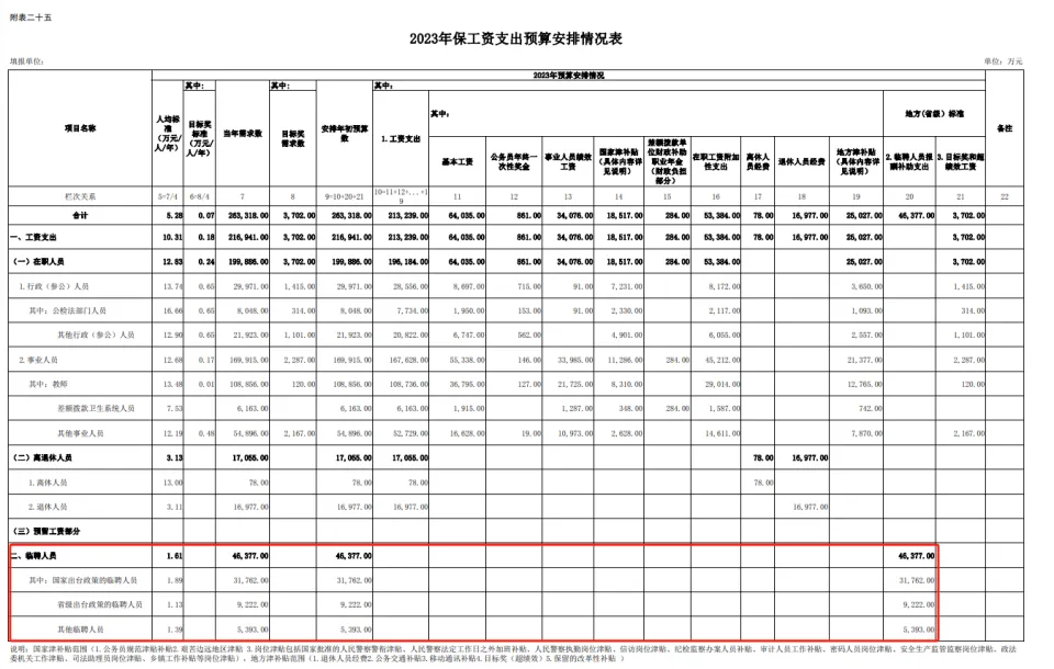 在下层财政收支抵牾加剧,财政困难配景下,一些地方临聘职员过多、财政供养压力过大等题目,受到关注。 近期,《半月谈》发布《1个正式工背后1.8个临时工,一个欠发达县的临聘职员之困》文章,称乌蒙山区A县临聘职员(28806人)是在职职员(15580人)的1.8倍,临聘职员本年“保工资”预算总付出为4.6亿元,凌驾该县客岁整年税收收入。当地财政供养职员尤其是临聘职员数量连续扩增,给县级财政带来极重负担。 文章称,2022年,A县一样寻常公共预算收入完成7.02亿元,比上年决算数增长0.85%,此中税收收入4.14亿元,同年上级补贴收入为42.3亿元。 上述数据刚好和位于乌蒙山区的贵州省毕节市大方县同等。 根据大方县2022年预算实行环境和2023年预算的陈诉,2022年大方县一样寻常公共预算收入完成70262万元,比上年决算数增长0.85%。此中税收收入41485万元,比上年决算数增长6%。上级补贴收入422822万元。 第一财经记者接洽到的大方县财政局人士称,当地已经关注到上述报道。对于A县是否就是大方县,“详细环境不清晰”。 当地财政收支抵牾突出 乌蒙山区是指乌蒙山会合连片特别困难地域,有不少贫困县,大方县曾经就是此中之一。颠末多年扶贫攻坚,2019年大方县摘掉贫困县帽子。不外欠发达地域的大方县,财政力气较弱,依赖上级财政补贴收入和卖地收入。 根据大方县财政局数据,受经济放缓等因素影响,2015年当地一样寻常公共预算收入跌破10亿元关口后,至今这一收入规模未再突破10亿元。近些年受疫情、减税降费等影响,财政收入增长乏力,2022年这一收入仅约7亿元,此中最为核心的税收收入仅4亿多元,其他则好坏税收入,财政收入质量不高。 由于当地财政收入增长乏力,当地财政自给率(约13%)很低,对上级财政补贴收入依赖度更大。2015年当地得到的中央各项转移付出这类上级补贴收入约27亿元,2022年这一数字增至42亿元,是当地一样寻常公共预算收入的近6倍。 随着经济稳步规复,大方县财政收入也出现规复性增长。大方县财政局数据体现,本年前10个月,大方县一样寻常公共预算收入5.7亿元,比上年同期增长5.5%。不外这一增速低于年初整年收入预期(7%)。 受楼市颠簸等影响,当地比力依赖的以卖地收入为主的政府性基金收入颠簸比力大,对当地可用财力形成肯定打击。 根据大方县财政局数据,当地政府性基金收入在2020年增至36.5亿元高位后,2021年大幅跌至约6亿元,2022年增至约11亿元。 大方县上述预算陈诉在谈及当地财政工作中仍存在一些困难和题目时称,财政连续增收压力大;“三保”保障、债务化解、生态环保、社会稳固等刚性付出不绝加大,财政收支抵牾非常突出,财政运行风险巨大。2023年财政收支抵牾依然突出,财政工作任务更加困难。 根据前述大方县2023年预算陈诉,2023年大方县“三保”付出预算约37亿元,占一样寻常公共预算付出的74.81%。此中,“保工资”付出最大,约26亿元。详细来看,在职职员约20亿元,离退休职员1.7亿元,临聘职员4.6亿元(国家出台政策临聘职员31764万元、省级出台政策临聘职员9220万元、其他临聘职员5393万元)。 上述大方县“保工资”相干数据,跟前述《半月谈》披露的A县“保工资”数据同等。 临聘职员大幅高于在职职员不公道 一位中部地方财政局长告诉第一财经,一个县临聘职员是在职职员1.8倍是不正常的。其所在地方,临聘职员最大的群体是辅警,大概跟在职职员相当。其他临聘职员大多都是通过政府购买服务第三方劳务调派情势,详细临时工跟用人单元没有劳务关系,这也方便后期无须用人时解聘临时工。 粤开证券首席经济学家罗志恒告诉第一财经,临聘职员大幅高于在职职员是不公道的。理论上来说,政府构造等要确定好重要职责、内设机构和职员体例,此中定职员体例就已经界定好履职必要多少人,因此不应该再临时聘任职员。而实践中大量临聘职员存在,也反映了必要进一步厘清政府和市场的界限后,匹配政府职能到底必要多少财政供养职员。 另一位西部财政人士告诉第一财经,当地此前临聘职员也比力多,不外颠末多年整理得以控制。整理工作比力难,但也不是做不到。 在构造奇迹单元内工作却没有体例的就被称为临聘职员,或临时工。一些下层大量聘任临时工并非个案,比如《半月谈》上述文章称,A县相近几个区县,临聘职员数量匀称为在职职员数量的1.7倍。 重庆秀山土家属苗族自治县规划和自然资源局陈垚2020年在《人力资源》撰文称,当前,县级构造奇迹单元约请了大量临时职员,他们重要由以下两类构成:一类是经机构体例部分允许的,重要从事单一非技能性子工作,工资及其他福利纳入财政预算,工作较为长期稳固;另一类是由用人单元自主雇用的,工作专业性技能性较强,工资及其福利泉源于单元自主经费,工资福利水平较低,管理较为疏松,解续聘等较为机动、随意。 陈垚称,观察发现,临时聘任职员因进入门槛低、管理方式机动、人力本钱低廉,在当前的政府运行体制下有常态化、临时变长期的趋势。临聘职员用工方式固然在肯定水平上缓解了构造奇迹单元用人压力,短期内有用地推进了工作的落实,具有积极意义,但从长期来看,也给构造奇迹单元带来了许多的题目。 陈垚体现,比如大多临聘职员,属用人单元自发活动, 缺乏政策法规依据。长期只进不出、多进少出,大概存量很大,清退很少,临时聘任职员数量不绝居
