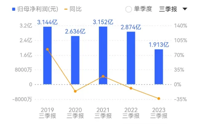 同期的净利润,下滑幅度更是惊人,制止到本年9月尾,良品铺子归母净利润仅为1.91亿元,同比大幅下滑了33.61%。 时间拉长来看,这是良品铺子近三年来初次出现营收同比下滑。客岁只管在增速上有所放缓,但是三季度也录得了70.03亿的营收,但到了本年三季度仅有59.99亿元,乃至连2021年三季报的业绩都比不了了。 而净利润的同比下滑,大概来得更早。财报数据体现,2021年至2023年三季度同期的归母净利润分别为:3.15亿元、2.87亿元、1.91亿元,已经连跌了两年。 值得留意的是,良品铺子现在的归母净利润水平,是近5年来最低的! 至于红利水平方面,良品铺子的毛利率近3年来根本稳固在28%-29%之间,但是净利润率水平却是一起走低。 数据体现,制止到2023年9月尾,良品铺子的净利润率仅为3.18%,较2019年同期下滑了2.6个百分点! 按说,良品铺子这种走高端蹊径的零食产物,净利润率竟然云云之低,确实没有想到。 而此次贬价之后,势必会影响到本已羸弱的净利润率! 2 卖不动了:库存走高、拿货淘汰 业绩走弱的背后,好像是良品铺子“卖不动了”。 现在良品铺子的告急贩卖额来自于四块:电商、加盟、自营和团购,本年一至三季度的单季度贩卖额分别是26.6亿元、17.66亿元、22.43亿元,同比分别下滑了18.74%、18.45%、3.88%,年内三个季度普降。 此中加盟业务更是连续三个季度同比下滑。门店方面,一二三季度的谋划简报中,也能看出来,良品铺子的加盟门店下滑得锋利。 与贩卖额大幅下滑对应的,是良品铺子的库存走高、拿货淘汰。 业绩陈诉体现,良品铺子本年一季度至三季度的存货分别是3.76亿元、3.77亿元、4.52亿元,出现渐渐走高态势; 另一方面,良品铺子的条约负债,也就是门店拿货的积极性,却在渐渐下滑。 一至三季度,条约负债分别是2.51亿元、2.26亿元、1.97亿元,同比都在大幅下滑,分别降落了8.22%、13.97%、21.66%。 可见市场对良品铺子的信心之冷。 3 投资回报三年险些腰斩 却有大股东套现超4亿