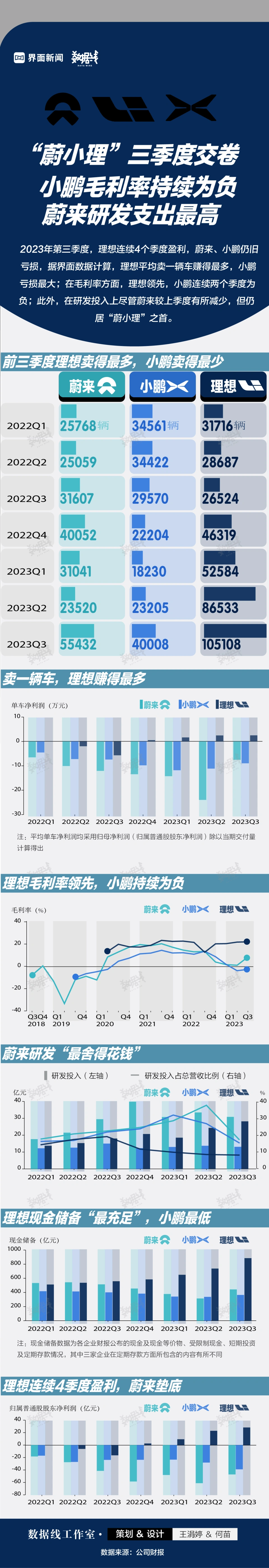 数据 | “蔚小理”三季度交卷:小鹏毛利率连续为负,蔚来研发付出最高