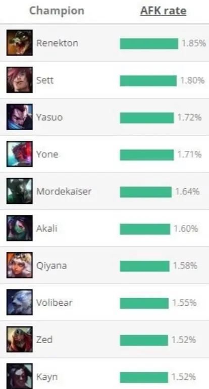 近来关于电竞圈的消息是很多人在讨论的,信赖各人也不绝在关注这方面的内容,近来转会期的节奏太多了,根本上都是一些欠好的内容,网友们之间已经骂的不可开交了,小编看着也是挺头疼的。 不外近来也有一些好玩的事变发生,好比近来LOL官方公布了很多项意见意义数据,好比近来有被操持师忘记的好汉,最久没有新皮肤的好汉排行榜,终极蝎子得到第一名,已经有1103天没有新皮肤了,相当于3年多。 另有官方在体验服上线了游戏名字答应重复的功能,各人以后可以都叫一个名字了,这个功能实在就是为了之后归并大区做预备的,照旧非常不错的,除此之外,近来我们看到又有一个新数据,那就是好汉挂机率。 这次主题是“好汉同盟挂机征象探究”,League of Graphs官方举行了数据网络,终极公布挂机率最高的好汉排名,从这些好汉中看,上单玩家的心态是最轻易崩的,由于第一名就是鳄鱼,到达了1.85%。 牌友第二名是瑟提,路人局根本上都是走上路,也有1.80%,固然了,这也跟好汉有关,鳄鱼在前期假如打不出效果,后期根本上就是废物,以是很多人前期没打出效果之后,直接不想玩了,以是挂机率很高,瑟提大概是由于腿太短,轻易被遛到心态爆炸。 第三名和第四名是一对兄弟,分别是亚索和永恩,分别是1.72%和1.71%,这两只好汉的热度非常高,上场率非常高,各人都想体验一下,但是这两只好汉的难度又很高,以是很多玩家就会被搞到心态爆炸。 而挂机率最低的广泛都是辅助,好比挂机率最低的是明烛,只有0.77%,然后是娜美、露露、猫咪,这些全都是辅助,看来玩辅助的心态确实更好一些,下路双人组中,通常都是AD心态爆炸挂机了,很少有辅助挂机的,对此你们有什么想吐槽的吗? |