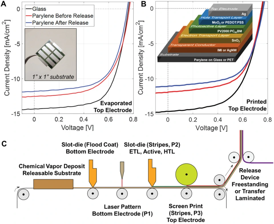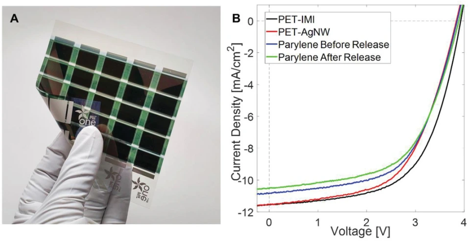 IT之家 12 月 5 日消息,麻省理工大学(MIT)的科研团队克日开发出“薄如纸”的太阳能电池,可以制作附着在任何范例外貌上,汲取太阳能。 本次研发的太阳能电池比头发丝还细,可以层压到船帆、帐篷、防水布、无人机机翼等各种装备外貌,从而提供更长期的续航体现。 干系研究结果发表在《Small Methods》上,联互助者包罗的麻省理工学院电气工程传授弗拉基米尔布洛维奇(Vladimir Bulovi)、电气工程和盘算机科学研究生 Mayuran Saravanapavanantham 和电子研究实行室的研究科学家 Jeremiah Mwaura。 科研团队选择迪尼玛复合面料,将电极打印在平板塑料上后,再将塑料片粘在迪尼玛上。 不外这种电池的光电转换率相对来说不高,和传统的硅电池板相比,每单位面积只能产生一半的能量,不外每公斤可以产生 18 倍的电力。 在测试过程中,该太阳能电池独立产生约 730 瓦 / 公斤的能量,如果摆设在迪尼玛织物上,则每公斤产生约 370 瓦的能量。 IT之家附上论文参考地点:https://doi.org/10.1002/smtd.202200940 |