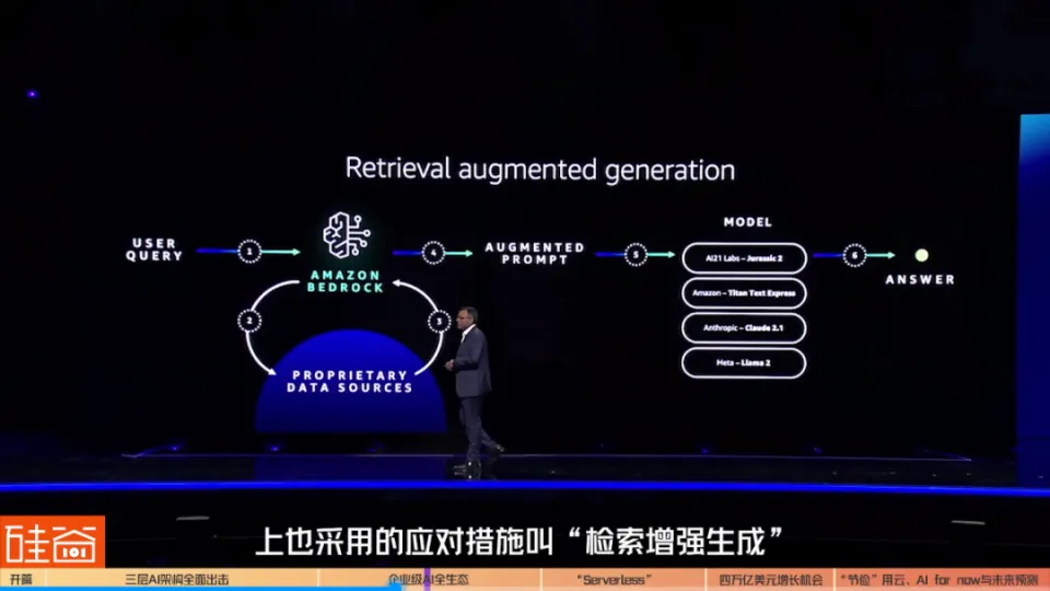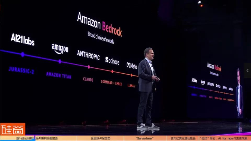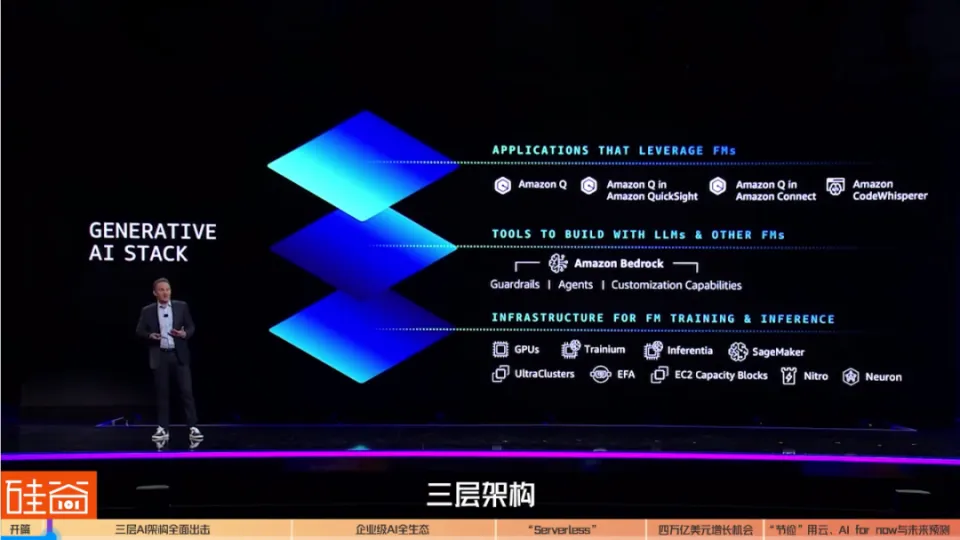 11月尾的拉斯维加斯从来都不冷静,但本年更热闹。 亚马逊云科技在2023年re:Invent大会期间开设了2000多场主题讲座和技能集会会议,沿着拉斯维加斯大道的数个大型旅店和办法,欢迎约6万名客户、分析师、媒体和科技从业者的前来。 以ChatGPT上线算起,天生式人工智能之战已经打响了一整年。但科技巨头亚马逊云科技在结构什么?这是全部参会者想要探寻的答案。 而这个答案,有点与众差别。 01 企业级AI全生态:三层架构全面结构亚马逊云科技用四个整天、五场主演讲的内容通报出一个猛烈的信号:拥抱AI的不是任何单独的一个部分,而是全架构、全服务的转型。 在CEO Adam Selipsky的演讲中,他明确演示了亚马逊云科技打击AI的三层架构:从最下面的根本架构层,到中心的根本模子服务层,再到最上面的应用层,亚马逊云科技都在全面结构和打击。 1.1 更强算力的底层:自研芯片、超等盘算机以及与英伟达的强强连合在根本架构层,亚马逊云科技起首是发布了针对练习大语言模子和根本模子的自研芯片Amazon Trainium2,比前一代快四倍,实用于参数凌驾一万亿的神经网络模子,以及通用Amazon Graviton4处置惩罚器。同时,英伟达首创人兼CEO黄仁勋也是来到了现场,公布亚马逊云科技与英伟达告竣新的战略互助。 “亚马逊云科技是天下上第一个真正熟悉到GPU加快运算告急性的云服务商”,黄仁勋穿着他一向的黑皮衣在舞台上到场亚马逊云科技CEO Adam Selipsky,共同公布两家公司将扩大互助。 亚马逊云科技和英伟达将互助推出全新的超等盘算根本办法,软件以及服务,这包罗了,首款联合英伟达Grace Hopper 超等芯片与Amazon UltraCluster拓展功能的云AI超等盘算机,同时,英伟达的DGX Cloud初次在亚马逊云科技上提供AI练习即服务AI-training-as-a-service,以及Project Ceiba打造设置了16384颗英伟达GH200超等芯片的举世最快的GPU驱动AI超等盘算机。 固然两家公司已经互助了好几年,但这是黄仁勋第一次出现在亚马逊云科技的年度大会上,也分析他对于结构AI期间云盘算的器重水平。 简单来说,在AI算力服务上,无论是对算力要求极强的大企业,照旧对本钱控制需求高的中小企业,亚马逊云科技的结构可以说是尽力在加快。 在一场AI创业公司的媒领会中,3D视频初创公司Krikey.ai和图文天生公司Leonardo.ai都是全部在亚马逊云科技上摆设,给用户的界面和创作工具就直接是网页,数字资产可以实时天生。 Krikey.ai的首创人Jhanvi Shriram在复兴硅谷101提问时说,“我们到场了亚马逊云科技的‘天生式AI加快器操持’,这对我们如许的初创公司来说简直就是game-changing(改变游戏规则)的一步。” 但显然,AI练习的费用依然是不自制的,VC投资人们和分析师们预期,随着市场竞争的加剧,算力本钱在2024年会明显降落。 1.2 更包容的中心模子层:提供给客户多模子选择在中心模子层,与微软和OpenAI的深度绑定差别,亚马逊云科技的AI战略显然更包容。 固然亚马逊此前公布投资OpenAI的大模子竞争对手Anthropic 40亿美元,但亚马逊云科技给客户提供的远不止Anthropic模子,这是与微软截然差别的战略。 亚马逊云科技CEO Adam Selipsky在现场频频夸大的另一个告急观点是:对于企业们,以后的选择大概不但仅是一个大模子公司,而是数个差别的、各有上风的、有大有小的模子提供方,而显然,亚马逊云科技正在结构如许的一个更增夸大安全、值得信托、有创新性的多元模子生态。 现在,Amazon Bedrock上会合成AI21labs的Jurassic 2模子,亚马逊云科技自己的Amazon Titan模子,Anthropic的Claude模子,Cohere的Command文本天生模子和Embed文本明确模子,尚有Meta的LLAMA 2开源模子,以及Stability.ai贡献的Stable Diffusion XL开源文生图模子。 美国Esoterica Capital(济容投资)首席实验官Bruce Liu在担当硅谷101采访时就坦言,亚马逊云科技更夸大把选择权给客户这一点很告急,也是其与微软在选择战略上的差别。 他体现:“亚马逊云科技在AI军备比赛的战略选择上与微软的差别。它更夸大的是说我把选择全给客户,但我能做什么呢?我就确保我的根本架构 – 从最底层的大模子再到中心层的微调模子,再在模子上提供干系工具 – 我都是以这么一个心态和姿态来包管,无论你选择什么样的模子什么样的工具,我都能提供很好的技能上的支持和服务包管客户你有选择、能选择,我以为这一点也挺告急的。” 在现场,Anthropic的首创人兼首席实验官Dario Amodei也来到现场,公布企业级模子Claude 2.1也将通过亚马逊云科技的全托管服务Amazon Bedrock的API对客户开放,现在包罗LexisNexis,桥水基金和Loney Planet等公司都已经开始创建互助。同时,亚马逊这40亿美元也不是白投给Anthropipc的,Anthropic反之也会资助亚马逊云科技在芯片架构Inferentia2和Trainium2上举行优化。 1.3 重磅上层应用:Amazon Q在最上面的应用层,亚马逊云科技这次公布了重量级更新:Amazon Q。 这款企业级的谈天呆板人是亚马逊云科技在ChatGPT一周年之际给出的谈天应用答案,在谷歌的Google Duet和微软的Copilot之后,亚马逊云科技终于出牌。 但相比别的两家云盘算巨头,亚马逊云科技的动作固然不是最快的,但与生态联合黑白常明确的:Amazon Q专门用于满足企业应用场景须要,可以根据客户业务举行定制。 比如说,这款企业级谈天助手会根据差别部分和权限对员工举行个性化定制,资助阅读、检察文件,测试优化代码,一键天生陈诉的PPT大概可视化图表。同时,Amazon Q还被