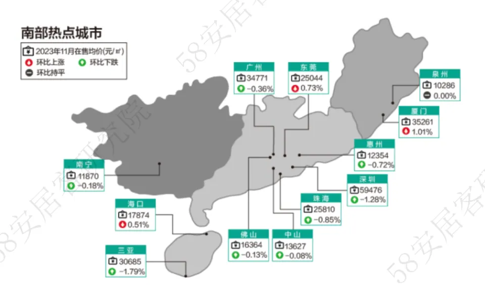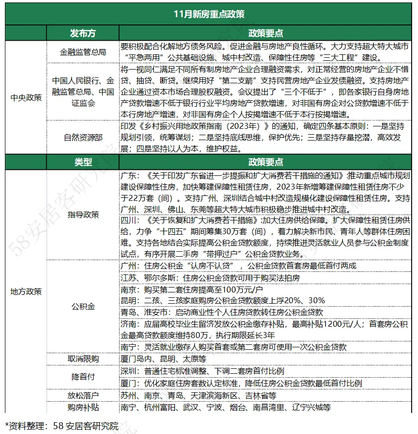 11月,中央层面政策以金融限贷,供给侧的政策为主,需求侧更多是各地继续细化,但总体力度走弱,随着9、10两个月将积蓄的需求开释完毕,需求渐渐疲软,致使本月新居市场景心胸下行。 从“831”新政后的市场体现看,本轮政策仅带来较为短暂的市场感情仰面,未能形成连续的修复动力,11月市场团体体现差能人意。阶段性来看,住民收入预期尚未清朗,预计市场仍将面对较长时间的颠簸调解。 从需求端也可以看到,市场热度全面下行,各能级都会中,150平方米以上的大户型新居产物热度占比均有提拔,相反,90-120平方米3室刚需刚改产物热度占比广泛降落1个百分点,也阐明当前主流需求陷入瓶颈。 1、11月新居重点政策回顾 11月,融资端,金融羁系部分进一步提出多少项对房企融资的支持办法。央行、金管局、证监会团结召开金融机构座谈会,夸大等量齐观满足差异全部制房企公道融资需求,对正常谋划房企不吝贷、抽贷、断贷,提出“三个不低于”、制定“50家房企白名单”等。此次集会除了连续此前对于优质房企的融资支持以外,初次在贷款“两会合”后对银行的房地产贷款增速做出提拔要求,也是初次提出针对非国有房地产企业的贷款支持。 需求端,地方层面楼市利好政策继续出台。一线都会中,广州首套房公积金贷款首付比例降至2成,深圳调解平凡住宅尺度,取消750万成交总价限定,并下调二套房最低首付比例至40%,京沪的松绑预期也加强,预计未来京沪或在放宽普宅认定尺度、下调首付比例等方面做出调解;二线城预计将有更多都会全面取消限购。 预测来看,当前市场下行压力不减,或将面对较长时间的颠簸调解。不外,政策加码的预期进一步加强,未来楼市供需两头政策或渐成协力助力市场企稳。 2、热度分析2.1重点65城新居找房热度重点65城11月新居找房热度环比降落约15%,同比热度继续下跌近10%。利好政策刺激下,前期积蓄的刚需和改善型需求颠末9、10月份,渐渐开释完毕,市场感情走弱,政策刺激后继乏力。 2.2各梯队都会新居找房热度 11月,各梯队都会新居找房热度全线回落,一线都会、二线都会、三四线都会现房热度环比分别降落11%、15%和16%。仅个别都会找房热度上升。 一线都会中,深圳11月下旬出台二手房首付比例调解和平凡住宅尺度调解政策,动员市场热度较上月增长约4%。其他都会中,三亚和海口找房热度继续上升,此中三亚热度涨幅凌驾25%。一方面受季候性旅游影响,另一方面,受益于海南自贸港建立的配景,三亚作为海南的龙头都会,房产具有肯定的投资代价和升值空间。而且随着国际品牌贸易项目的渐渐落地,也动员了房价的上涨,根据国家统计局数据,本年以来三亚新居成交接价逐月上涨,吸引购房者入市。 2.3各梯队都会产物访问热度本月,65个重点都会的户型需求中,70-90平方米2室和3室户型热度占比分别降落0.2和0.4个百分点,90-120平方米3室户型热度占比降落1个百分点。凌驾150平方米、4室及以上户型热度均上涨,此中150-200平方米面积段热度占比上涨0.5个百分点、200-300平方米面积段上涨0.4个百分点,300平方米以上面积段上涨0.2个百分点。 一线都会,大于200平方米的4室及以上户型热度占比上涨共计约0.6个百分点,90-120的2室户型热度占比提拔0.2个百分点,120-150、150-200、200-300平方米的二室户型热度占比也分别提拔0.1个百分点。70-90、90-120、120-150平方米的三室户型热度占比分别降落0.6、0.2和0.3个百分点。 二线都会,90-120的3室户型热度占比降落1.1个百分点,120-150、150-200、200-300平方米的4室及以上户型热度占比分别提拔0.4、0.5、0.4个百分点。 三线都会,90-120的3室户型热度占比降落1个百分点,150-200、200-300平方米的4室及以上户型热度占比分别提拔0.7和0.6个百分点。 可以看出各梯队都会中,现在150平方米以上的大户型改善产物和300平方米以上的终极改善产物热度占比均有差异程度的提拔,相反,本年以来相对主流的90-120平方米3室刚需刚改产物需求出现瓶颈,热度占比广泛降落1个百分点。 3、项目数目3.1重点65城新居项目数目及环比走势11月,重点65城新居项目总量环比继续小幅镌汰0.3%,此中在售项目环比微增,待售项目环比继续降落约3%,本月开发商推盘供应仍在增长,但项目储备放缓,去化团体也出现放缓趋势。 3.2各梯队都会新居项目数目及环比走势一线都会新居待售和在售项目总数环比增长1.3%,在各梯队都会中涨幅最大,此中,待售项目环比下跌52%,在售项目环比增长2%,市场供应量上涨显着。四个一线都会本月总数均上涨,深圳本月项目总数增长最多,上海十一批次新盘准期推出,供应规模也再次冲高。 二线代表都会11月新居项目总量微增,此中在售项目数目环比微增0.6%,待售项目本月镌汰约4%,上市节奏较10月进一步放缓。此中,成都、重庆、郑州项目总数环比降落约2%,福州、杭州、西安、南昌项目总数环比上涨超2%。 三四线代表都会新居项目数目较上月环比降落1.8%,在售项目和待售项目数目镌汰比例均凌驾1%。此中南阳、柳州、威海项目总量出现显着镌汰,嘉兴和昆山项目总量增长仍凌驾2%。 4、代价分析4.1重点60城在售均价及环比走势11月60个重点都会新居在售均价17768元/㎡,环比微涨0.03%,走势趋于安稳。此中30个都会新居在售均价上涨,较上月镌汰6个。从地区来看,本月华东地区新居售价上涨都会较多,华北东北地区新居售价下跌都会较多,此中威