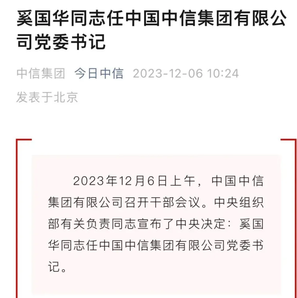 文|俞燕 编|吴戈 出品|喻观财经 本月就年满60岁的奚国华,职业生存有了新的擢升。 12月6日,中国中信团体有限公司(下称“中信团体”)官微公布,中信团体总司理奚国华出任中信团体党委书记。 这也意味着,待干系流程推行完毕,奚国华将接替朱鹤新成为这产业融央企巨头的第七任掌门。 12天前(11月24日),朱鹤新出任中国人民银行党委委员、外管局党组书记,下一步将成为央行副行长兼外管局局长。 加盟中信团体三年后,奚国华完成了从团体总司理任到一把手的紧张一跃。这也意味着,奚国华将按照以往惯例,在未来的三年继承领导中信团体前行。 在中信团体44年的进程中,共诞生了七任掌门,除了朱鹤新直接“空降”,其他掌门皆出自中信体系。奚国华虽与中信团体的渊源只有三年,但是从总司理升为掌门,亦属中信内部提拔。 毕竟上,在中信团体的汗青上,有多位掌门便是从总司理职位升迁而来。比如,第三任掌门王军、第四任掌门孔丹和第五位掌门常振明。 有业内人士指出,当下正处于“十四五”开局之年,对于这家分支机构浩繁、资产体量巨大、高出多个产业和金融范畴的跨国产融巨头来说,从中信团体内部提拔,大概更有利于既定战略的连续和管理层的稳固。 铁道专家的前半生:致力于实业 三年半前的6月23日,中信团体官网公布,时任一汽轿车董事长奚国华,接替到龄退休的王炯出任中信团体党委副书记。 随后,奚国华出任中信团体总司理,兼任中信股份有限公司实行董事、副董事长、总司理,中国中信有限公司实行董事、副董事长、总司理等职。 奚国华加盟中信团体的这一年,恰逢中信团体高层跨界更迭年。 这一年3月,央行副行长朱鹤新空降中信团体,接替退休的常振明出任新掌门。 5月,中国平静保险团体有限责任公司实行董事、副总司理兼平静养老险董事长任生俊,接替到龄退休的蔡华相,任中信团体党委副书记、监事长等职。 至此,在三个月时间里,中信团体“三长”悉数完成新老更迭,且三位皆为跨界而来。 别的,这一年另有一桩跨界调解:时任中信团体副总司理蔡希良调任中国信保党委副书记、副董事长、总司理。现在他的身份是中国人寿团体总裁。 在进入中信团体之前,奚国华作为铁道专家和技能型干部,在轨道交通体系度过了30年的职业生存。 奚国华是铁道行业科班身世,1985年结业于上海铁道学院电气工程系机车电传动专业,1997年得到长沙铁道学院工学硕士学位,2007年又得到中南大学工学博士研究生学位。 从上海铁道学院结业后,奚国华来到原属中国南车旗下的株洲电力机车研究所,在这里开启了职业生存。 株洲被称作“火车拉来的都会”,素有“中国电力机车摇篮”之称。现在穿行在四通八达的高铁轨道上的“复兴号”,是我国具有完全自主知识产权的中国尺度动车组,其牵引传动体系和网络控制体系便由中车株洲所自主研制。 1997年从长沙铁道学院硕士结业后,奚国华成为株洲电力机车研究所副所长,开始走上领导岗位,厥后升任所长。 作为这家研究所的带头人,奚国华主持过多个国家级与省部级的攻关项目,2001年便得到第五届詹天佑铁道科学技能人才奖,还是国家高技能研究发展操持(863操持)当代交通技能范畴专家组专家。 2004年5月,奚国华开启了职业生存的第二次擢升:出任中国北车团体党委常委、副总司理兼总工程师,实现了从专业技能人才到企业管理者的转型。 2008年6月26日,中国北车团体股改,由中国北车团体团结大同进步投资有限责任公司、中国诚通控股团体有限责任公司和中国华融资产管理公司,共同发起设立中国北车股份有限公司(下称“中国北车”)。奚国华出任中国北车党委常委(2010年11月任党委副书记)、实行董事、总裁。 15年后,奚国华所在的中信团体,则将当年中国北车的股东之一中国华融资产管理公司收入麾下。这是怎样的一种缘分。 奚国华任职中国北车期间,发生了四桩大事。其一是中国北车分别在2009年12月和2014年5月完成A股和H股上市。 其二是2011年京沪高铁开通,由中国北车负担了京沪高铁“G字头”列车58%的运能。 其三是2014年得到波士顿地铁284辆车辆订单,作为中国企业初次在美国面向举世的招标中胜出,打响了“高铁”这张中国手刺。 其四是中国南车和中国北车吸取归并。 2014年12月30日,中国北车和中国南车公布归并方案,重组为中国中车股份有限公司(下称“中国中车”),并在2015年6月8日实现中国中车(601466.SH)挂牌上市,完成了国内首例两家A+H 股上市公司换股归并案。 奚国华成为中国中车的首任总裁,并在2016年11月,任中国中车副董事长、党委副书记。 在完成了南北车归并、重组后安稳过渡后,奚国华渐渐淡出中国中车,2017年8月调任新兴际华团体(前身是新兴铸管团体)董事长,初次成为大型央企掌门。 新兴际华团体是2015年首批国企改革试点的六家央企之一,在天下500强中排名第322位,业务范畴涵盖金属冶炼及加工、轻工纺织、装备制造、 商贸物流、产权投资与资产管理、当代农牧业等多个板块。 奚国华在新兴际华团体的时间并不长,次年(2018年6月)又一次转身,来到被称作“共和国宗子”的中国第一汽车团体有限公司下称“中国一汽”),出任已空缺近两年的党委副书记、董事、总司理之职。 操盘了北车、南车重组归并案的奚国华,被业界称作“重组能人”,他接任一汽团体总司理职位,