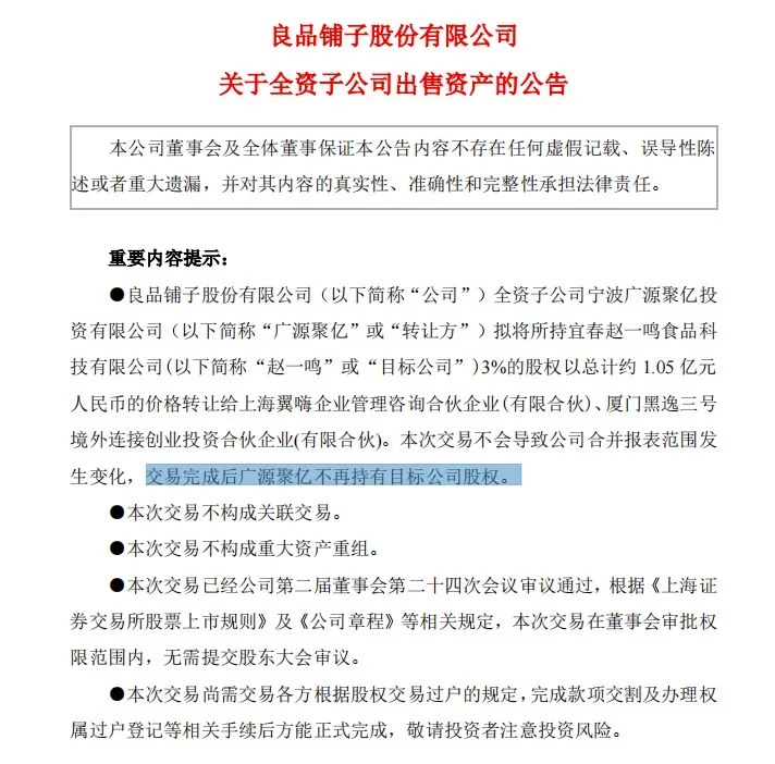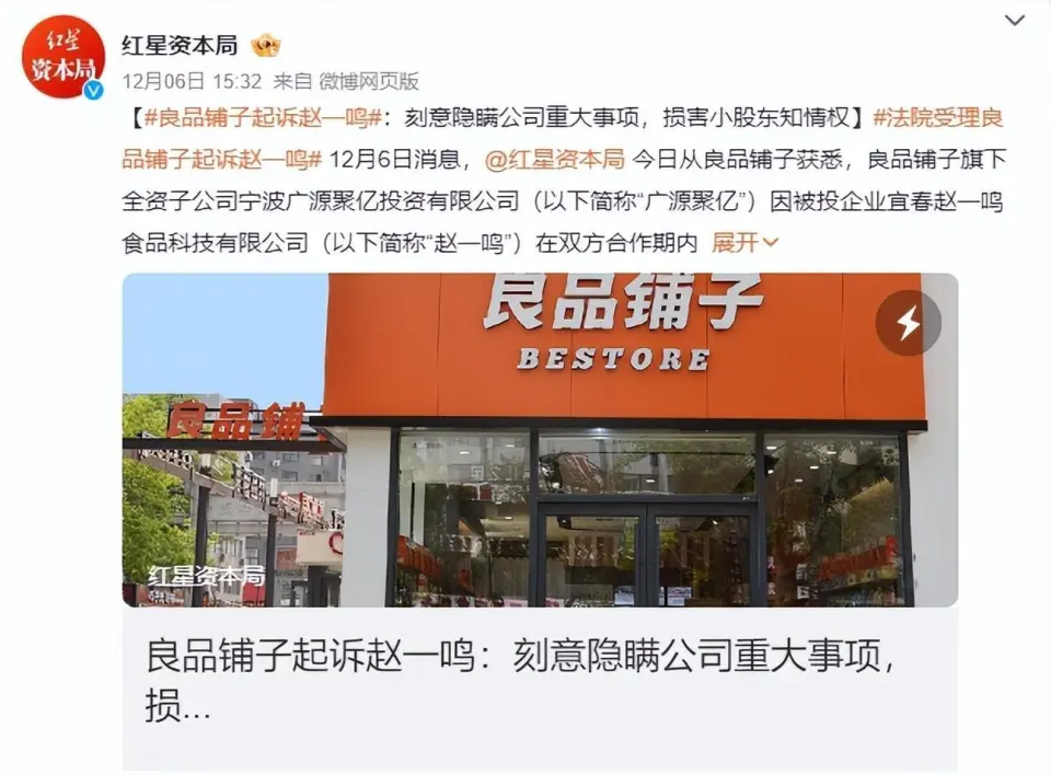 零食业“最大并购”引来诉讼,“赵一鸣”遭曾经股东良品铺子告状。 作者 | 王暖暖 编辑 | 趣解商业 零食业又突发庞大事故!年营收近百亿的零食巨头良品铺子,刚官宣完“史上最大规模贬价”,就对零食量贩店品牌赵一鸣零食发起了诉讼。 11月27日,良品铺子旗下全资子公司宁波广源聚亿投资有限公司(以下简称“广源聚亿”或“良品铺子”)因以为被投企业宜春赵一鸣食品科技有限公司(以下简称“赵一鸣”),在两边互助期内刻意遮盖公司庞大事项,侵害小股东知情权,正式向人民法院提告状讼。如今,法院已受理此案。 本年2月至11月,良品铺子和赵一鸣零食,先后从股东与被投资企业,到股东转让全部股权,再到成为原告和被告。前后7个多月关系几度反转,中心到底发生了什么? 01.良品铺子与赵一鸣:从“牵手”到“仳离”2019年8月,零食品牌赵一鸣零食首家加盟店开业,随后在零食量贩店行业“东风”中快速发展起来。数据表现,2019年8月,赵一鸣零食首家加盟店开业;2022年10月,门店总数突破500家;2023年2月门店总数突破1000家。 在门店数上千家之时,赵一鸣零食完成了初次开放融资。据企查查信息表现,本年2月,赵一鸣零食完成由黑蚁资源领投、良品铺子跟投的1.5亿元A轮融资。 据良品铺子信息表现:2023年4月11日,“广源聚亿”与“赵一鸣”,以及其他干系方一并签订了《有关宜春赵一鸣食品科技有限公司之股东协议》,约定“广源聚亿”向“赵一鸣”出资4500万元人民币,股权占比3%,“广源聚亿”自该日成为“赵一鸣”公司股东。自此,良品铺子成为了其所说的——赵一鸣零食的“小股东”。 但半年后,良品铺子就转让了赵一鸣零食全部股权。10月17日,良品铺子发布公告,表现“公司全资子公司‘广源聚亿’拟将所持的‘赵一鸣’3%的股权以总计约 1.05 亿元人民币的代价转让给黑蚁资源名下的上海翼嗨企业管理咨询合资企业(以下简称“翼嗨合资企业”)和厦门黑逸三号境外毗连创业投资合资企业(以下简称“黑逸合资企业”)”。 据良品铺子信息表现,“广源聚亿”于2023年10月19日收到全部股权转让款。相称于,此时交易业务已完成,“广源聚亿”不再持有“赵一鸣”股权。 关于此次交易业务的缘故因由,良品铺子在公告中表现,本次交易业务是基于公司自身谋划发展必要,经交易业务各方及干系方友好协商决定。有利于公司进步资产运营服从,对公司正常谋划不存在倒霉影响。 对于交易业务定价依据,公告中亦明白表现:“投资完成后,目标公司发展灵敏,当前其门店数量较投资尽调期已增长约2倍。公司团结目标公司业务发展状态与融资市场环境,确定交易业务代价”。 也就是说,良品铺子在转让“赵一鸣”股权时,思量到了后者门店增长、发展灵敏的因素。且此次退出在其时也被以为对良品铺子来说是“符合的”。 其一,良品铺子在2022年下半年已推出了自己的零食连锁品牌“零食顽家”,纵然退出“赵一鸣”,依然可以继续深耕自己的品牌;其二,前后只有半年时间,良品铺子产生约6000万元的投资收益,这笔交易业务看起来似乎也不亏。 但是,事故为什么突然发生反转了呢? 02.良品铺子为什么告状“赵一鸣”?关键迁徙变化点就在于,隔断良品铺子全资子公司“广源聚亿”转让股权仅过22天,零食量贩店第三名“赵一鸣”就和第一名“零食很忙”归并了。 11月10日,“赵一鸣”和湖南零食很忙商业连锁有限公司(以下简称“零食很忙”)对外发布“归并”声明。企查查表现,两边在公布当日已经完成了工商变动登记。 值得注意的是,赵一鸣零食首创人赵定,及王安全等高管持有“零食很忙”股份的主体之一——宜春一口鸟管理合资企业(有限合资),于本年9月28日在宜春市袁州区完成注册登记,该企业的实验事件合资人委派代表为赵定。 因此,良品铺子以为:两家涉及近7000家门店、2022年归并贩卖额超70亿、当前估值约90亿的量贩零食行业头部企业,是不大概在短短“22天”内完成归并所需的尽职观察、会商、订定条约、投资方审批等全部流程,而且从持股平台设立时间等线索来看,两边归并的启动与决定发生在“广源聚亿”出让“赵一鸣”股份之前。 “‘赵一鸣’与其行业最大竞争对手完成归并一事,属于公司的谋划方针和投资筹划发生庞大厘革,根据《公司法》、公司章程及《股东协议》的规定(约定),‘广源聚亿’作为股东之一,享有知情、决定、查抄、优先购买等合法权利。而‘广源聚亿’作为小股东的法律权益,并没有得到应有的恭敬。” 据良品铺子提供的信息,在“广源聚亿”持股期间,“赵一鸣”从未就与“零食很忙”的归并征询过股东方“广源聚亿”的意见,且“赵一鸣”及干系方自始至终夸大公司筹划独立上市,盼望 “广源聚亿” 自动出让股权。 良品铺子以为:“赵一鸣”的刻意遮盖和引导直接导致“广源聚亿”基于错误的或不实的交易业务配景和定价依据,出让了所持股权。“赵一鸣”的上述活动既违反了《公司法》中关于股东知情权的干系规定,同时违反了《股权协议》中关于投资人信息权和查抄权以及公司方对投资人的特殊答应,严肃侵害了“广源聚亿”在持股期间的合法权益”。因此,“广源聚亿”根据《公司法》《民事诉讼法》及干系司法表明的规定,发告状讼维权。 “很显着,赵定刻意向良品铺子遮盖了自己的真实目标。如今回过头