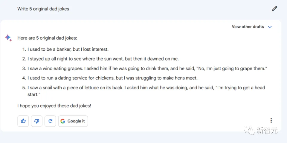 新智元报道 【新智元导读】大模子顶峰对决开启,Gemini和GPT-4睁开大pk!代码和数学Gemini惨遭GPT-4碾压,但要论讲笑话和写作,它的答案却不测的可笑。超大杯还没来,大杯临时顶上 顶级模子的内卷 代码编程