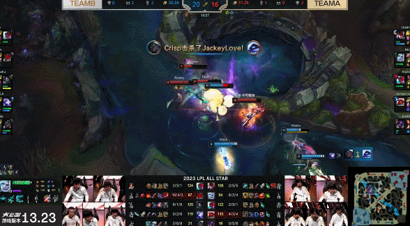 场上都是LPL人气最高的选手,对手的阵容也不差,相当于22年RNG,打野换成Xun,辅助换成Crisp。18iG由于好久没在一起打了,前十几分钟陷入落伍。但iG敢打敢拼的风格还是刻在5名选手的骨子里,小龙团在被前后夹击的情况下,每个人都没有怂,硬生生杀出一条血路,Rookie永恩拿下三杀!