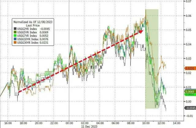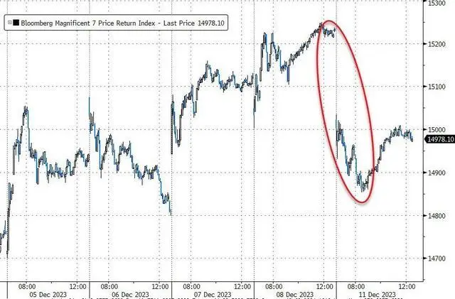 市场静候美联储、欧洲央行和英国央行本年各自末了一次货币政策集会各自拉开帷幕,投资者本周开局审慎。已连涨六周创四年最长连涨期的三大美股指盘中均曾下跌,纳指惊险保住涨势。 美国国债收益率盘中继承上行,升势较公布非农就业不测强劲的上周五和缓,对利率敏感的两年期美债收益率继承革新11月末以来高位,十年期美债标售总体表现平庸但强于周一稍早的三年期美债标售,标售结果公布后,基准十年期美债收益率革新日高后回落,两年期收益率回吐日内升幅转降。美元指数倘佯三周高位,部门得益于日元下跌。媒体称日本央行本月集会不会竣事负利率,日元盘中加快下跌,跌幅扩大到1%以上,险些抹平上周四日央行一二把手放鹰后大涨的全部涨幅,阔别上周四创的四个月来高位 美联储美东时间周二开始召开集会,当天将公布告急通胀数据11月美国CPI。越日美联储集会竣事公布货币政策决定,并公布更新的经济猜测,及表现联储官员对利率路径预期的利率点阵图。告急经济数据和美联储等央行的重磅集会将检验市场对来岁降息的乐观感情。如今市场广泛预计本周美联储将继承保持利率稳定,有机构预计联储将在批评中淡化来岁降息的大概性。 有批评称,如今的标题是,在市场代价表现投资者激进押注来岁联储鸽派转向降息后,联储会不会试图和缓货币宽松的预期。迩来美股的上涨重要基于市场对软着陆和来岁降息的预期。软着陆虽有大概实现但还并非板上钉钉。美联储来岁大概降息,但那么做大概是由于经济放缓且大概紧缩、不复扩张,那大概和如今市场等待的情况差异。 有“新美联储通讯社”之称的着名记者Nick Timiraos迩来在给降息预期高涨的市场打大概扫兴的“防备针”。他上周末撰文称,美联储官员本周不太大概认真讨论何时降息,除非经济疲软水平超出预期,否则将来数月都不大概认真讨论。他以为,美联储只大概在两种情况下开始降息,一是经济继承放缓且赋闲率超预期攀升,二是经济表现良好而通胀超预期降温。 大宗商品表现不一。黄金连续美国非农就业陈诉发布后的跌势,黄金期货和现货盘中双双跌穿2000美元,期金抹平感恩节以来全部涨幅、这期间首度收盘失守这一关口。国际原油盘中抹平逾1%的跌幅转涨,保住上周五的反弹势头,继承离开连跌六日所创的五个月来低位。批评称,克制上周原油期货连跌七周后靠近超卖情况,投资者的感情总体好转,风险偏好资金从其他资产中流入油市,共同支持了油价反弹。美国自然气重挫近6%,跌至近半年来低谷,景象预告表现,克制圣诞前夜,美国本土大部门地区的气温都将远超往年同期正常水平,打击了自然气需求远景 三大美股指三连涨 Meta为首蓝筹科技股回落芯片股指跑赢大盘 中概股指反弹三大美国股指开盘涨跌各异。微幅低开的道琼斯工业均匀指数盘初转涨,开盘快要半小时后短线转跌。开盘跌超0.2%的标普500指数盘初转涨后早盘不止一次短线转跌,午盘一连上行。低开的纳斯达克综合指数早盘尾声时革新日低,午盘转涨。三大指数尾盘革新日高,一连三个交易业务日团体收涨。 道指收涨157.06点,涨幅0.43%,报36404.93点,在上周五收创客岁1月12日以来新高后,又革新客岁1月5日以来高位。标普收涨0.39%,报4622.44点,继上周五自客岁3月30日以来初次收于4600点上方后,又革新客岁3月29日以来收盘高位。纳指收涨0.2%,报14432.49点,革新上周五所创的客岁4月4日以来高位。 代价股为主的小盘股指罗素2000午盘转涨,收涨0.15%,在连涨三日至9月1日以来高位。科技股为重的纳斯达克100指数盘初转涨,收涨0.85%,一连两个交易业务日革新两年来高位;衡量纳斯达克100指数中科技业成份股表现的纳斯达克科技市值加权指数(NDXTMC)收涨0.7%,革新11月20日所创的纪录高位,均将连涨三日。 标普500各大板块中,周一只有Meta和谷歌所在的通敬佩务一个收跌,必须斲丧品涨近1%领涨,工业涨0.9%,质料和金融涨0.7%左右,涨幅垫底的时涨逾0.1%的能源和特斯拉所在的非必须斲丧品。 龙头科技股大多下跌,上周五连涨四日至11月29日以来高位的特斯拉收跌近1.7%。FAANMG六大科技股中,上周五连涨两日至11月28日以来高位Facebook母公司Meta收跌2.2%;连涨两日至7月31日以来高位的苹果收跌1.3%;谷歌母公司Alphabet收跌1.3%,在上周四反弹所创的11月28日以来高位后连跌两日;上周五连涨两日至11月27日以来高位亚马逊收跌1%;连涨两日的微软收跌近0.8%,开始靠近上周三所创的11月13日以来低位;而奈飞收涨近1.4%,连涨三日至12月1日以来高位。 芯片股总体连涨三日,跑赢大盘,费城半导体指数和半导体行业ETF SOXX午涨幅扩大到3%以上,均收涨3.4%,革新2021年12月以来高位。个股中,被规复覆盖的花旗因看好AI高潮推动而给予买入评级后,博通收涨9%,创半年来最大涨幅,收盘时,应用质料涨5%,英特尔、AMD、安森美、科磊涨超4%,美光科技涨超3%,高通涨超2%,德州仪器涨超1%,而Arm收跌超3%,媒体称其操持在越南设立半导体基地的英伟达收跌近1.9%。 包罗苹果、微软、Alphabet、Meta、英伟达、特斯拉、亚马逊在内,七大科技股周一逆市回落,总体创10月26日以来最大跌幅。 AI概念股涨跌各异。到收盘,C3.ai(AI)跌0.4%, SoundHound.ai(SOUN)跌近3%,而BigBear.ai(BBAI)涨近3%,Adobe(ADBE)涨超2%,Palantir(PLTR)微涨。 热门中概股跟随大盘上涨,纳斯达克金龙中国指数(HXC)盘初跌超1%,午盘转涨,收涨近0.3%,在连跌两日