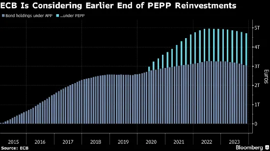 欧洲央行开始渐渐退出疫情告急应对工具的窗口即将关闭,假如不接纳办法,大概会使市场陷入杂乱。 通货膨胀灵敏回落加剧了对于央行将最早在3月降息的预期,这个时间远远先于官员们当前对于抗疫告急购债筹划(PEPP)下规模1.7万亿欧元(1.8万亿美元)购债步伐的渐渐退出安排。 假如不改变这个时间表,PEPP再投资的竣事 —— 一个紧缩之举 —— 险些肯定会在降息周期中出现。如许的政策辩论大概会让投资者对欧洲央行的目标感到迷惑,为了克制这种情况出现,几位管理委员会成员渴望央行加快PEPP的退出速率。 本周欧洲央行将举行2023年的末了一次政策集会会议,这大概成为此次集会会议的一个告急议题。 “单从引入PEPP的目标来看,也就是抗击疫情对经济的影响,就当下来看这个工具已没有继续存在的意义了,”荷兰银行宏观研究主管Nick Kounis表现。 高盛Jari Stehn、巴克莱Mariano Cena和法国兴业银行Anatoli Annenkov等经济学家预计,欧洲央行将会加快退出PEPP,退出的方式与通过取消资产购买筹划(APP)来启动量化紧缩类似。 这大概意味着欧洲央行周四会公布,从第一季度末左右开始镌汰再投资,并在来岁1月举行的下一次政策集会会议上转达有关这一过程的更多细节,瑞银等公司预计这一运动不会太过惊扰市场. 届时欧洲央行或将把克制6月到期的债券相干利得中的约一半举行再投资,从7月开始完全克制再投资,这比当前筹划的时间要提前六个月。 这个时间表将确保PEPP筹划中最告急的一点保存,即 机动的再投资将使欧洲央行可以减缓部门欧元区债券市场的压力。 这也将在很大水平上与经济学家的利率远景符合合,彭博观察预计欧洲央行2024年将有三次25基点降息,第一次将出现在6月份。 欧洲央行行长克里斯蒂娜·拉加德上个月表现,在不久的将来将讨论PEPP,但她坚称不应预期将来几个季度降息。 |