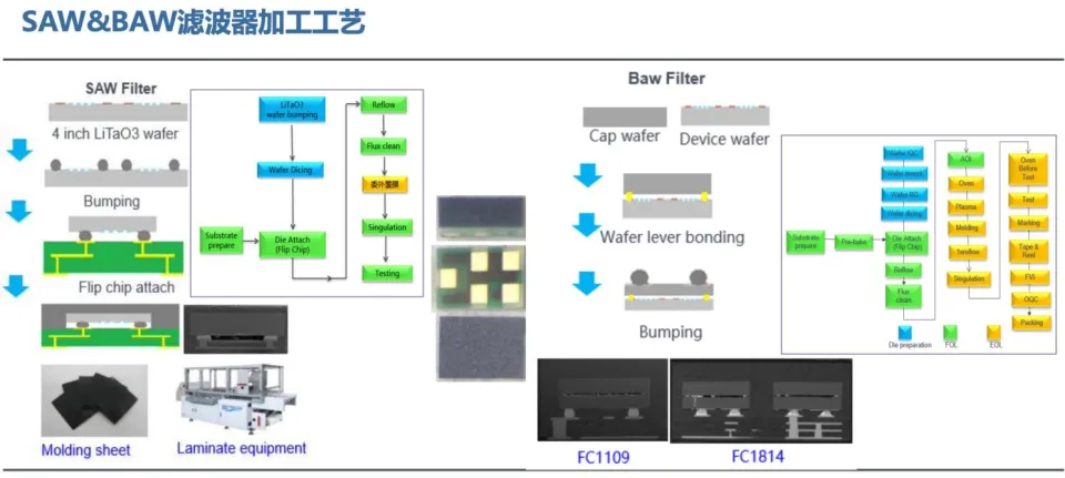 8月尾,在毫无征兆的情况下,华为忽然推出“HUAWEI Mate 60 Pro前锋筹划”,还未发布的旗舰机Mate 60 Pro低调上架开售,随后关于该手机搭载的麒麟9000s及是否具有5G本事的讨论引爆环球舆论。现实上,自2020年10月华为发布末了一款全系全搭载5G的智能手机Mate 40之后,华为智能手机业务就此停滞的一大关键就是5G射频前端模组中的国产高性能滤波器供应受限。可以说,华为Mate 60重回“5G”的背后,有国产射频前端芯片厂商不懈积极贡献的一份力气。 随着中美商业争端带来的环球半导体市场不确定性和供应链变局,包罗滤波器等芯片在内的国产更换已是局势所趋。作为射频前端范畴末了的关卡,国产滤波器财产近几年实现了长足的希望,但是国内相干厂商大多数以fabless模式运营,在技能和规模上相对掉队于国际IDM龙头,代工和封测本事还是稀缺资源,尤其在射频滤波器小型化、集成化、模组化趋势下,对封装工艺提出更高要求。 面临国内广阔市场而国产率很低的逆境,冲破国外技能封锁与市场壁垒,加快滤波器国产化的进程刻不容缓。华天科技作为国内领先的射频器件封测龙头,不停致力于为滤波器封装提供多种方案支持,伴随着滤波器封装工艺需求的升级,华天科技也已准备好与客户互助试用、找差、改进的循环推进,力图实现关键器件的国产更换和自主可控。 滤波器市场量价齐升,国产更换远景可期 只管客岁以来射频前端行业需求受疫情和终端需求疲软影响而低迷,但是从中长期来看,Yole预计到2028年射频前端市场规模将到达269亿美元,5G新技能规格将连续推动射频前端技能创新。行业正在举行相干研发和投资,为下一波增长做好准备。 伴随动手机中频段的增多,射频滤波器作为射频前端最大的细分市场,在射频前端代价量占比在仍在不停扩大。专业机 构推测,滤波器在射频器件中的代价占比从3G终端的33%提拔到4G全网通LTE终端的57%,5G期间则进一步增长(特别是体声波滤波器),单台手机的滤波器代价将到达10美元以上。IDC推测,2024年环球滤波器市场规模将到达183.3亿美元。由于中国大力大肆支持发展5G技能,同时作为滤波器消耗大国,预计市场份额不停提拔,市场规模在2024年到达56.7亿美元。 在终端用户对移动通讯的要求越来越高的情况下,全面屏及手机浮滑化、高频通讯、频率资源拥挤化等都对滤波器的性能提出更高的要求,顺应高频通讯、热稳固性好、体积小、集成度高的滤波器将是将来的重要发展方向。此中,由于财产已相对成熟,SAW以及TC-SAW具有肯定的资本上风,SAW滤波器在短期内仍会是滤波器市场的主力产物,但在5G及更高频通讯期间,BAW滤波用具有高频率和宽频带的技能上风,在基站、手机、物联网 终端等高频应用场景有着更佳的体现,将会渐渐成为市场主流。 因此总体来看,由于工艺复杂度、技能以及资本的限定,现在通讯标准下更多中低端市场射频前端接纳SAW滤波器;随着5G排泄率的提拔,BAW滤波器良好的性能和对高频的支持将使其成为手机射频前端的主流器件。IDC推测,BAW滤波器的市场排泄率预计在2024年到达65%。 依附对工艺和专利的掌控,日美几大国际厂商的把持格局已成。SAW滤波器重要供应商为Murata、TDK、太阳诱电等几家日本厂商,而BAW滤波器则为博通以及Qorvo等占据险些环球凌驾95%以上份额,国产化需求急迫。 另一方面,由于滤波器从计划到制造、封测,各关键环节之间的强耦合,高质量滤波器的财产化必须依赖IDM模式来完成。只管近几年国内发展出了一些滤波器企业,但是受生产技能水平限定,产物重要会合在中低端范畴,且生产线较少,生产本事有限,大多数企业以fabless模式运营,更必要制造和封测端企业更好地协同和支持。 华天科技的BAW滤波器、SAW滤波器封装技能先后于2018年10月、2021年5月开始量产,可为滤波器、双工器等fabless计划公司提供多种浮滑短小、高可靠和高性能的封装办理方案。 射频前端模组化推动滤波器封装演进,华天科技助力国产器件量产 在射频前端集成化、小型化、模组化趋势下,滤波器尺寸也在向不停缩小,往微型化方向发展,最直观的改变就是在封装技能上的演进。以SAW为例,其芯片计划和流片相对简单,计划和流片费用相比传统的IC芯片要自制得多,但是必要一个长期的积聚过程。由于其空腔布局形成于封装阶段,滤波器的性能和可靠性更多的依赖于封装技能。 华天科技指出,滤波器微型化一样寻常通过以下三种途径:(1)优化滤波器计划,缩小芯片本身的面积;(2)通过改善滤波器器件的封装情势以使滤波器和多工器尺寸大幅度缩小,现在滤波器封装方式已从传统的金属封装改为接纳先辈的新型封装技能,如包罗晶圆级封装(WLP)、裸片级声表封装(DSSPTM)、薄膜声学封装技能(TFAPTM)、CuFlip封装技能等;(3)通过把差别功能的滤波器封装形成模组,以低落占用PCB的面积。以发展时间较长的SAW滤波器为例,SAW滤波器的封装技能履历多次更新迭代后,分立器件的尺寸从原来的5.0x5.0mm2降至1.1x0.9mm2,尺寸明显缩小。 在这一范畴,金球倒装超声焊接以及真空覆膜成腔技能应用广泛,颠末多年研发布局,华天科技于2021年5月正式量产,现在封装良率已凌驾99.5%。自SAW/BAW滤波器封装工艺量产以来,每天产能约为2KK,总出货量近600KK,已经为国表里多家滤波器厂商提供了高质量的封装办理方案。 华天科技以SAW滤波器为例先容,封装重要流程是起首在晶圆