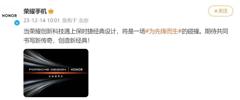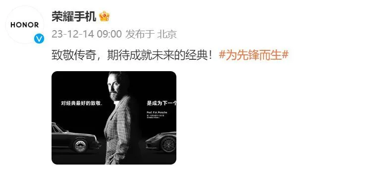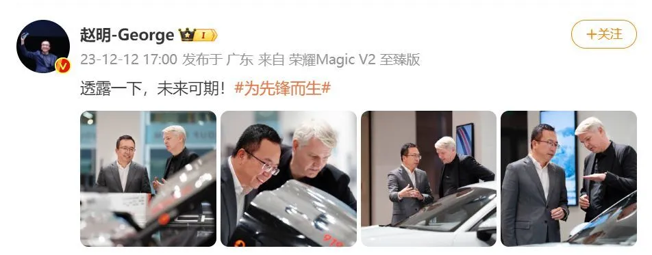 【环球网科技综合报道】12月14日,光彩正式公布与保时捷计划(Porsche Design)创建战略互助搭档关系。两边团结开辟的首款智能手机将于2024年1月在中国面向环球初次表态。 光彩还在官方平台发布了一张Slogan为“对经典最好的致敬,是成为下一个经典”的海报,海报中绘有第一代保时捷911计划者、保时捷计划首创人费迪南德·亚历山大·保时捷。光彩配文称,“致敬传奇,等待结果将来的经典!” 此前在12月12日,光彩CEO赵明也在交际平台发布与保时捷生存方式团体实行董事会主席史蒂芬·必时偕行观光展厅的照片,并配文“透露一下,将来可期!” 而据此前报道,光彩一款型号为“BVL-AN16”的新机近期已通过中国质量认证中心3C认证,此中表现产物名称为“卫星移动终端”。业内人士称,这意味着光彩Magic6系列或将支持卫星通讯技能。 |
