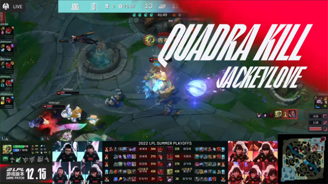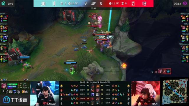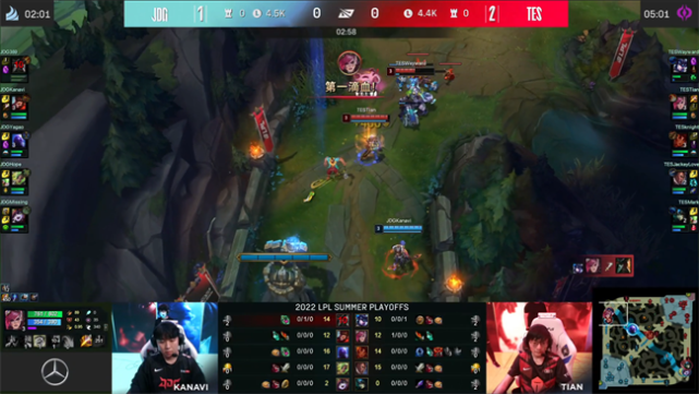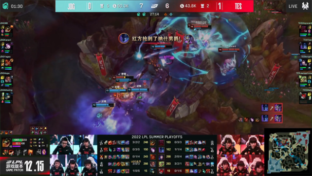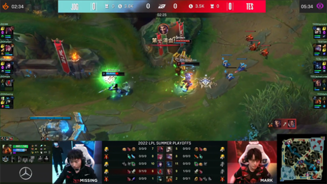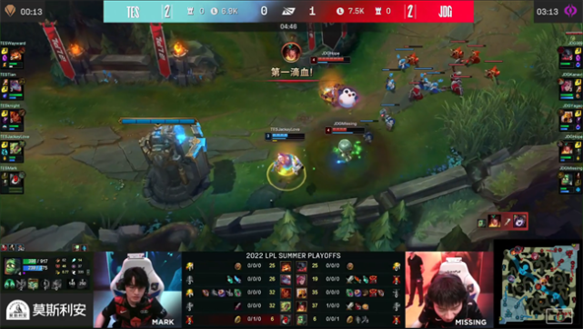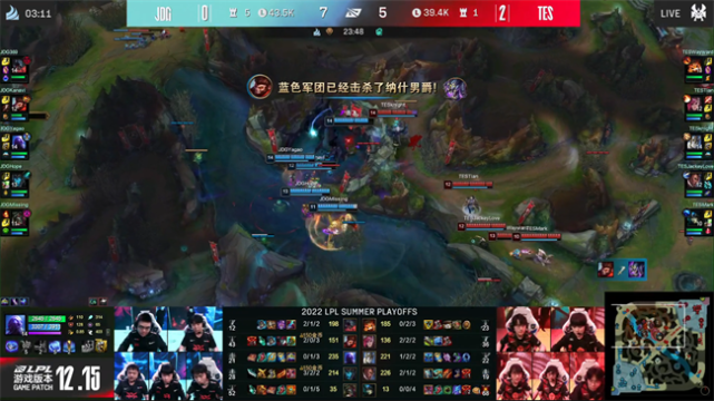 2022 LPL夏日赛季后赛胜者组决赛在上海虹桥天地举行,历经通例赛以及季后赛前几轮的洗礼,终极突出重围挺进胜者组决赛的两支队伍分别是通例赛的一二名TES战队与JDG战队,两队早在2020LPL春季赛与夏日赛中就两次在决赛相遇,两场BO5打满10局各自取得一胜。旗鼓相当的两队本日再度相遇,誓要争取第一张通往夏日赛总决赛的门票。而败北的一方仍有从败者组晋级的机会。两队棋逢对手再度打满五局,JDG在连遭翻盘0-2掉队的情况下依然稳住了心态连追三局,终极让二追三3-2击败TES挺进夏决。 第一局 JDG:赛恩、蔚、阿狸、卢锡安、娜美 TES:卡蜜尔、波比、冰女、德莱文、泰坦 德莱文和泰坦对线抢二瞬间直接闪现突脸先手,德莱文跟闪以后越塔一刀带走卢锡安的一血。紧接着波比又游走过来断后将上线不久的卢锡安再次抓死,人头又给到德莱文。波比趁着下路上风大胆入侵野区但是遭遇JDG中辅的匿伏,TES敏捷支援到位再将阿狸击杀,中下两条路都取得了很大上风。JDG无奈只能放弃下半区,控下前锋以后让卢锡安换线到上路拆掉一塔。而德莱文乘隙在下路吃到了四层塔皮。JDG固然稍稍缓解了卢锡安的劣势,但因此也断送了赛恩的发育,JDG随后又在下路集结气力想要反攻,但是波比早就蹲在草丛里,加上冰女对阿狸的限定,TES打出1换2反杀JDG双C,令JDG的劣势落井下石,仅仅12分钟德莱文已经星蚀+夺萃之镰在手。 JDG团体经济并没有掉队太多,他们依然有渴望通过强先手阵容来创造机会,两队在河道围绕第二条小龙举行拉扯时德莱文在河岸上方的站位被发现以后蔚和阿狸直接强行突脸秒掉,失去焦点输出的TES战斗力大打扣头,被JDG冲散阵型终极阵亡三人交出了大量赏金。这波落败以后TES依然在实行正面接团,连续不绝地被JDG找到机会,浪费了卡蜜尔的分推上风,接连几波团战溃败以后不光拱手让出了前期全部上风,反而被JDG领先了3千块。23分钟两队又在中路发作5v5团战,德莱文的输出情况被牢牢限定根本打不出伤害,而进场的上中辅三人都被JDG击杀,前期崩盘的卢锡安已经砍下7个人头,险些接受了角逐。TES完全陷入劣势局面,经济掉队一度高出了5千块。 两队将下一步的焦点放在上半区,JDG在赛恩的领导下进入TES的野区争取视野,设下匿伏的TES第一视角佯装集火赛恩,见JDG中计开团以后通过冰女的侧翼进场秒掉了卢锡安,深入后排去切德莱文的蔚终极也没有得手遭到反杀,TES乘隙击杀大龙而且将前来干扰的阿狸与娜美等人全部击杀。这波关键的节奏让TES从颓势中重新振作起来,把之前掉队的经济一举追平。几分钟后小龙即将革新,TES众人匿伏在河道发起先手,波比锤飞赛恩以后TES又一次找到机会击杀了卢锡安,带着强化兵线推掉中路高地又击杀了蔚,卡蜜尔也在下路带掉二塔。角逐形势风云突变,主动权又来到TES的手中。 第二条大龙尚未革新,两队已经提前在上半区预备争取河道视野,TES果断先手集火秒掉赛恩以后推进上路二塔,蔚误判情况一头扎进了TES的伏击圈,冰女又一次找到了完善的进场位置,TES团战完善共同1换5团灭JDG以后一波平推拆掉了基地。恭喜TES有惊无险取得1:0领先。 第二局 JDG:鳄鱼、莫甘娜、岩雀、卢锡安、娜美 TES:奥恩、梦魇、阿狸、泽丽、璐璐 鳄鱼在草丛匿伏回线的奥恩,把奥恩逼到三角草以后在岩雀的支援共同下拿到了一血。TES在前期没有发急发动打击,梦魇的大招不绝捏到11分钟左右,和阿狸在向下路靠拢的途中发现了莫甘娜的位置,待其交掉黑盾以后大招突脸收掉人头。JDG围绕鳄鱼的上风点在边路反复发起打击,而TES将精力专注在控制小龙上面,很早就拿到了两条小龙,缓解了不少面对JDG的防守压力。角逐的节奏比上一局慢了许多,两队相互发育到20分钟出头,JDG突然集结五人在上路强行抓死奥恩以后直扑大龙,TES中野还在下半区来迟半步终极没能抢到大龙,JDG劳绩到大龙Buff并反杀梦魇以后卖掉鳄鱼带着大龙Buff乐成退却。 JDG依赖鳄鱼在边路创建的上风和大龙Buff带来的加成取得了6千的经济上风。TES则继承以发育为主,积极把角逐向后拖撑起前排和泽丽的装备。梦魇和阿狸在河道抓出莫甘娜的闪现以后泽丽强穿激光压起家取得人头,两边鏖战一番没能分出胜败,但是TES又夺取到了名贵的发育时间。JDG想要加速角逐节奏开始围绕第二条大龙结构,在野区击杀了脸探草丛的璐璐以后直接开打大龙,但没推测这次梦魇大招进场抢走了大龙。依然处于劣势的TES不绝地在用队员灵光一闪的发挥强举动本身续命。JDG转而在中路抓死落单的阿狸拿到己方第三条水龙,继承抱紧阵型不给TES更多机会。 TES想要在水龙革新之际主动开团,两边鏖战一番以后都压低了血量,但JDG的三水龙发挥了威力很快复兴了起来,TES被迫把纯种水龙魂放给对方,转头拿下大龙作为交换。水龙魂在手的JDG信心大增,开始预备推进TES的高地,已经度过强势期的鳄鱼面对TES的控制链只能充当吸取伤害的前排还是遭到击杀,不外梦魇也没能收掉残血的岩雀被卢锡安击杀,两边战成1换1以后JDG依附水龙魂复兴血量推掉了中路高地。被TES的刚强防守磨光了耐烦的JDG决定利用水龙魂强行推进竣事角逐,但TES依然没有放弃的筹划,泽丽在高地上闪转腾挪打出爆炸输出,依附个人本领击碎了JDG的阵线砍下四杀,惊险地守住了基地。 TES固然守住了基地但是丢掉了两路高地和门牙塔,角逐性子已经发生了改变。TES死