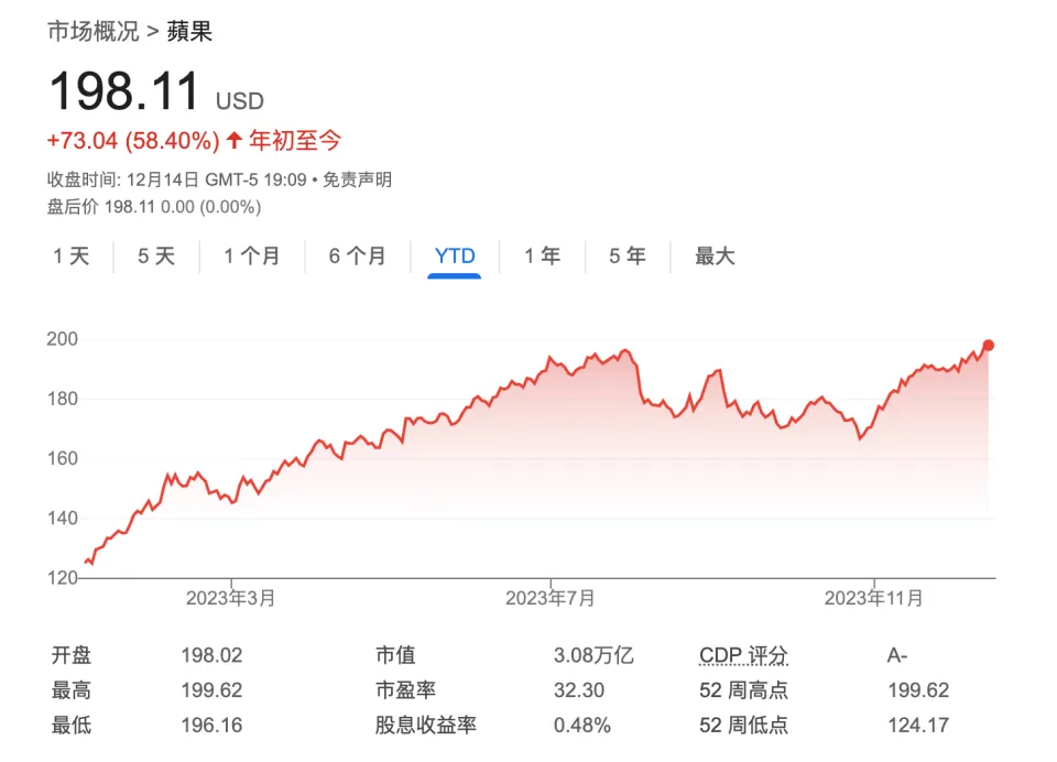 财联社12月15日讯(编辑 卞纯)作为环球市值最高的上市公司,苹果股价的涨势没有表现出任何放缓的迹象。在周四收盘创下汗青新高后,苹果的市值正靠近欧洲最大的股市:法国。 现在,在法国巴黎上市的公司总市值约为3.2万亿美元,而苹果的市值靠近3.1万亿美元。苹果市值已凌驾除环球六大股票市场外别的股市的市值。 并非初次挑衅法股 这已不是苹果市值初次挑衅法国股市了。客岁下半年,在各国央行纷纷加息以应对通胀之际,市场遭遇抛售,两者“你追我赶”,苹果市值在此期间也多次逾越法国股市总市值。 受包罗路易威登母公司LVMH,以及爱马仕在内的奢侈品公司股价上涨推动,法国股市本周也创下记载新高。法国股市近期强劲反弹,由于有越来越多的证据表明,随着欧元区通胀降温,利率大概已经触顶。 股价远景向好 在美国,同样的宏观配景(美联储加息或已竣事)推动科技股再度飙升,尤其是那些最大的公司。 周四,苹果股价上涨0.1%,收于198.11美元,再创汗青新高。苹果股价本年以来已经飙升了近60%,市值增长了约1万亿美元。本年7月份,苹果市值初次突破3万亿美元,成为环球首家市值凌驾3万亿美元的公司。 当地时间周三,美联储一如预期按兵不动,而公布的点阵图表现,本轮加息周期已完成,官员们预计2024年将降息75基点,也就是来岁将降息三次,降息幅度高于9月份时的预期。 苹果股价迩来的大涨趋势与本年10月相比是一个“大逆转”,其时该股股价因投资者担心其营收增长速率和贩卖额放缓而承压。 现在,华尔街分析师对苹果股价远景持乐观态度。据媒体汇编的分析师均匀预期,华尔街预计,随着智能手机、条记本电脑和电脑需求的反弹,到2024年,苹果的收入将重新加快增长。 花旗团体分析师Atif Malik克日将苹果的目的股价上设定为230美元。他在一份陈诉中写道:“看空该股的人忽视告终构性毛利率扩张的故事。” 他指出,苹果连续受益于iPhone的高端定位、服务贩卖加快以及大宗商品定价上风。“我们预计上述趋势来岁将连续,并以为AI手机和Vision Pro的是潜伏的上涨催化剂,”他表现。 美国投行Wedbush的资深分析师Dan Ives克日发布陈诉称,随着宏观经济环境改善、Vision Pro上市、iPhone升级潮等一系列利好因向到临,苹果大概会在2024年成为汗青上首家市值突破4万亿美元的公司。Wedbush将苹果的目的股价今后前的240美元上调至250美元,为华尔街最高目的价。 (财联社 卞纯) |