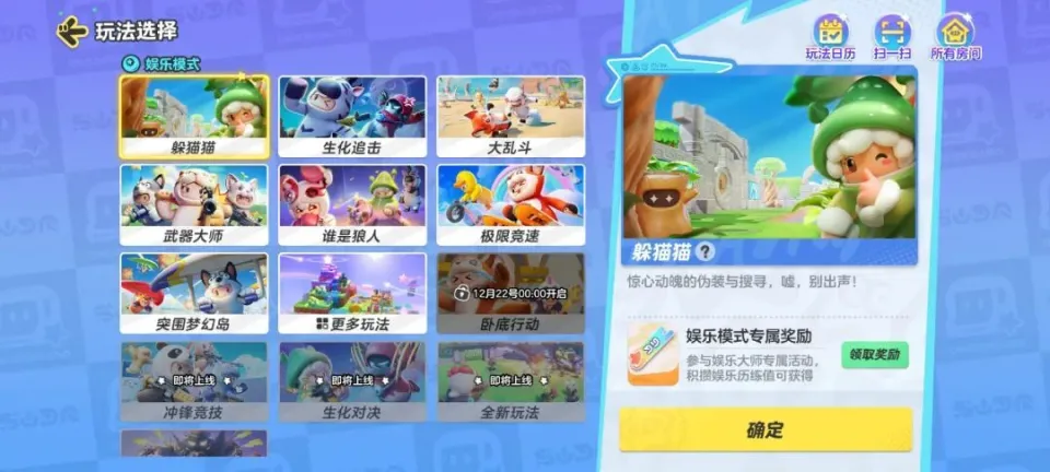 所谓合家欢,着实就是很得当各个年岁段一起玩的娱乐游戏。它没有王者光彩的门槛和受气,主打就是一个高兴。内里的娱乐玩法之多,险些涵盖了一样平常朋侪集会会玩的游戏。好比躲猫猫、生化危急、射击游戏、狼人杀、飞车竞速、吃鸡游戏等等,即便没玩过,应该都是有所耳闻的。