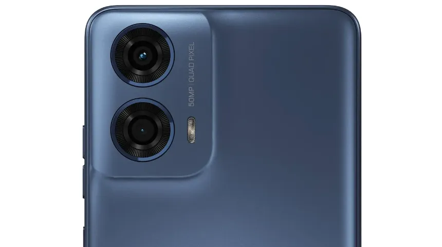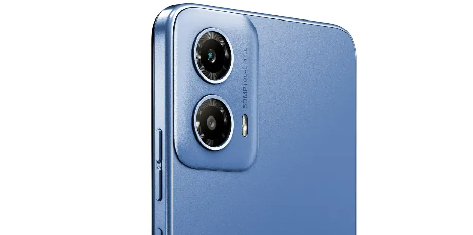 后摄模块部分,这款新机同样采取了矩形方案,此中可见双摄组合和闪光灯组件,以及一处“50MP丨QUAD PIXEL”的标志。就此来看,这款摩托罗拉 Moto G34应该也配备了5000万像素的后置主摄。
