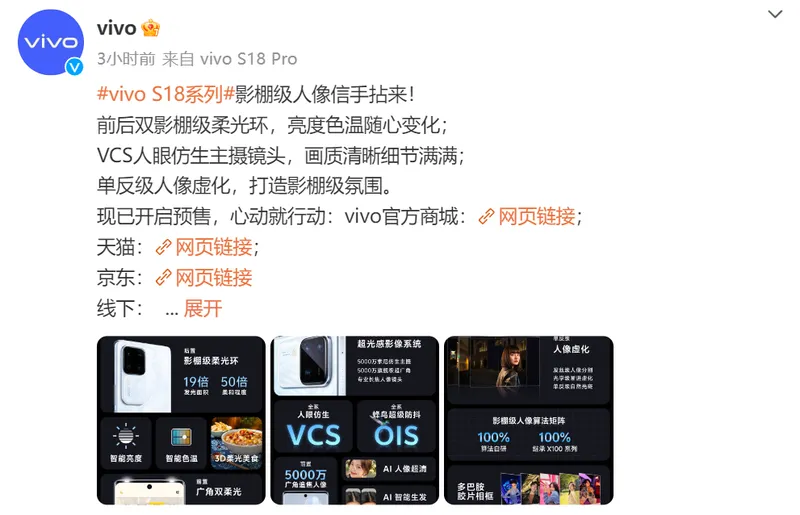 12月18日消息,继上周vivo S18系列发布会竣事以来,新品正式进入预售阶段,现在隔断正式开售仅剩三天。据vivo官方透露,vivo S18系列已冲破S系列汗青全部新机预售首日志录,成为该系列增长势头最为剧烈的机型。 ▲图源vivo官方微博 PConline此前报道,vivo S18系列在外貌筹划上连续了vivo一向的风雅和时尚,并在S18系列上连续探索东方美学筹划表达。机身颜色有有繁花如锦缎的新款「花似锦」,也有空灵干净的「青澈」,为用户提供了丰富的选择。同时,该系列手机采取浮滑筹划,手感舒服,方便携带。 ▲图源vivo官方微博 vivo S18系列在影像方面同样连续了前代的特色,前后双面柔光灯加持,提供业界独一档的柔光人像拍摄。该系列手机还拥有旗舰机X100系列的同款摄像头,为用户带来更出色的照相体验。同时,vivo S18系列还拥有影棚级人像算法矩阵和影棚级柔光环等先辈技能,在一样寻常生存中也可以顺手拍出影棚级人像。 除了影像技能的升级,vivo S18系列在性能方面也有显着提拔。vivo S18 Pro采取联发科天玑9200+旗舰芯片,跑分突破158万;S18则采取第三代骁龙7芯片,跑分靠近百万分。vivo S18全系顶配16GB RAM+512GB ROM,确保了流畅的利用体验和快速的应用加载速率。 值得一提的是,vivo S18系列在浮滑机身内塞入了一块5000mAh超薄蓝海电池,搭配80W闪充,浮滑手机也有超长续航。 作为一款高性能手机,vivo S18系列的代价非常亲民,新机起售价仅为2299元。现在vivo S18系列全部版本已在全平台全渠道开启预售,12月22日10点,vivo S18将率先全网开售,感爱好的同伴可从前往vivo官网以及第三方购物平台相识详情。 |