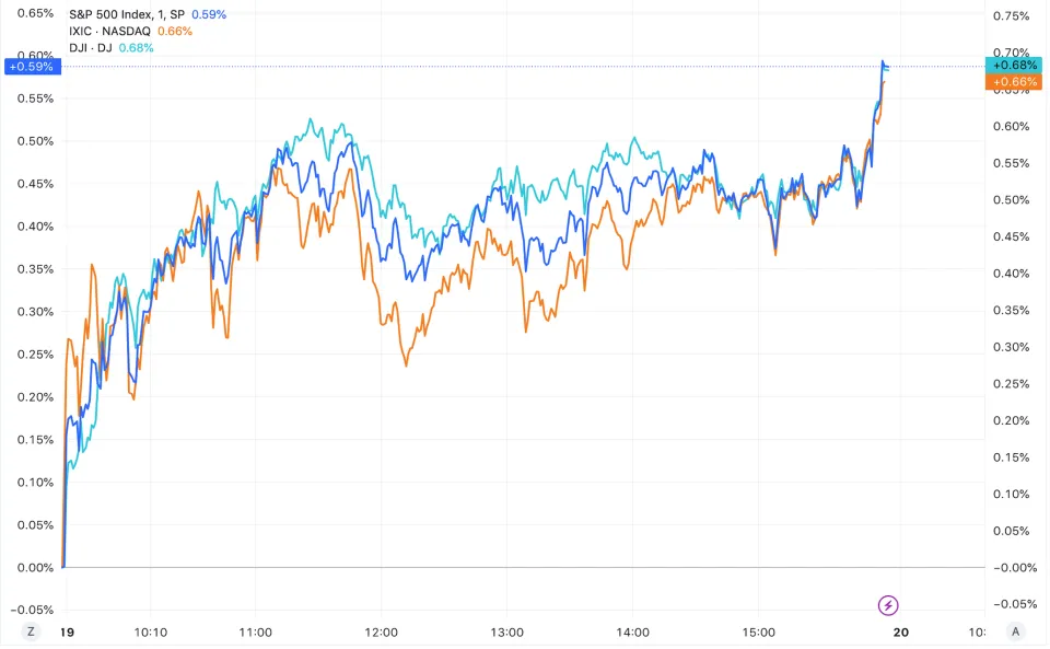 财联社12月20日讯(编辑 夏军雄)美东时间周二,只管美联储官员一连打压降息预期,但投资者乐观感情不减,三大指数团体收涨,道指续创汗青新高,标普500指数亦迫近汗青高位。 (三大指数分钟线图,泉源:TradingView)停止收盘,道琼斯指数涨0.68%,报37,557.92点;标普500指数涨0.59%,报4,768.40点;纳斯达克指数涨0.66%,报15,003.22点。 道指和纳指均一连九个买卖业务日上涨,道指更是一连五个买卖业务日革新汗青最高记载。 美联储上周公布利率决定时,暗示来岁将降息三次,从而点燃了投资者的乐观感情。 然而,自上周五以来,以美联储三号人物、纽约联储主席威廉姆斯为首的央行官员不停在开释鹰派言论,夸大决议者尚未真正讨论降息,就连以往最为鸽派的芝加哥联储主席古尔斯比也体现,市场大概误解了美联储想要转达的信息。 Bokeh Capital Partners首创人Kim Forrest说:“这种买入股票的感情正在站稳跟脚,除非有消息改变这一点,否则市场大概会每天都因此走高。” 热门股体现 大型科技股多数上涨,苹果涨0.54%,微软涨0.16%,特斯拉涨2.04%,谷歌涨0.63%,亚马逊跌0.18%,Meta涨1.67%,英伟达跌0.94%,奈飞涨1.83%。 热门中概股普涨,纳斯达克中国金龙指数涨1.81%,阿里巴巴涨2.10%,京东涨3.60%,拼多多涨1.13%,蔚来汽车涨5.63%,小鹏汽车涨3.28%,理想汽车涨2.80%,哔哩哔哩涨3.33%,百度涨2.10%,网易涨0.30%,腾讯音乐涨0.23%,爱奇艺涨1.51%。 公司消息 【苹果智能手表禁售令不实用于百思买和沃尔玛】 苹果公司隔断在美国停售部门智能手表Apple Watch仅剩数日时间,但这并不影响沃尔玛、百思买、塔吉特等零售大公司贩卖那些装备。美国国际商业委员会(ITC)对Apple Watch的禁售令仅仅实用于苹果的直销渠道,这就意味着,第三方零售商可以继续向斲丧者贩卖Watch Series 9和Ultra 2。沃尔玛和百思买都已经明确亮相,不会停售这些产物。一旦禁售令收效,至于第三方零售商是否可以大概得到更多库存则还不得而知。 【巴斯夫和博世通过私家配售市场募资27亿美元】 据媒体援引消息人士报道,德国化工公司巴斯夫和工程公司博世从一个面向蓝筹公司的私家债务市场统共募资27亿美元。此中,巴斯夫通过私家配售债务融资15亿美元,博世融资12亿美元。摩根大通和NatWest Markets为巴斯夫承销其债务,美国银行和瑞穗证券则安排了博世的融资买卖业务。 【默沙东疫苗V116获美国FDA优先查察】 12月19日,默沙东公布,美国食品药品监视管理局(FDA)已继续了该公司专为掩护成年人而计划的21价肺炎球菌联合疫苗V116的新生物成品允许申请(BLA)的优先审评。 【麦当劳与埃森哲扩大战略互助搭档关系】 12月19日,麦当劳公司与埃森哲公司公布扩大战略互助搭档关系,以资助麦当劳实行其战略,纵然用最新的技能,在环球餐厅应用人工智能天生办理方案,以改善运营以及顾客和员工体验。 【美国银行首席实行官Moynihan:将向买卖业务业务设置更多资源】 美国银行首席实行官Brian Moynihan体现,该行将继续对市场部门举行投资,以求提拔市场份额。“我们三四年前扩大了业务规模,取得了结果,”Moynihan周二在继续采访时体现。他还体现,该行筹划向买卖业务业务设置更多资源。Moynihan周二还体现,斲丧者状态良好,余额是疫情前的“数倍”。Moynihan体现,随着通胀上升,付出放缓,但斲丧者本年总体付出仍比客岁高出4%到5%。 【德国大众汽车将实行北美充电标准】 德国大众汽车将实行北美充电标准(NACS);大众将来的电动汽车车型将采取NACS;大众为现存车型研究适配器办理方案。 【联邦快递第二财季营收和调解后每股收益均逊于预期】 联邦快递第二财季调解后运营利润14.2亿美元,分析师预期14.9亿美元;第二财季营收222亿美元,分析师预期224.1亿美元;第二财季调解后每股收益为3.99美元,分析师预期4.19美元;维持整年调解后每股收益预期在17.00-18.50美元稳定,分析师预期18.22美元;预计2024财年营收将出现0%-10%区间较低的降幅,原来预计大概会持平;维持2024财年资源开支预期在57亿美元,分析师预期56.8亿美元;预计公司将在2024财年追加10亿美元股票回购。 停止发稿,联邦快递盘后跌超8%。 (财联社 夏军雄) |