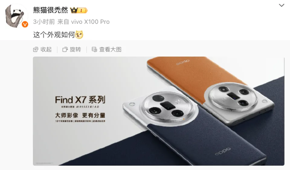 在此前,博主@熊猫很禿然 在爆料中展示了一张OPPO Find X7 系列的产物海报,此中可以看到这一代装备的具体外貌信息。