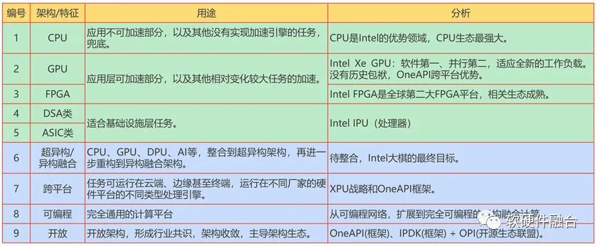 3 算力芯片,终局之战3.1 多异构融合,更多生态的融合我们来分析一下Intel在多(超)异构和将来异构融合盘算的布局:
