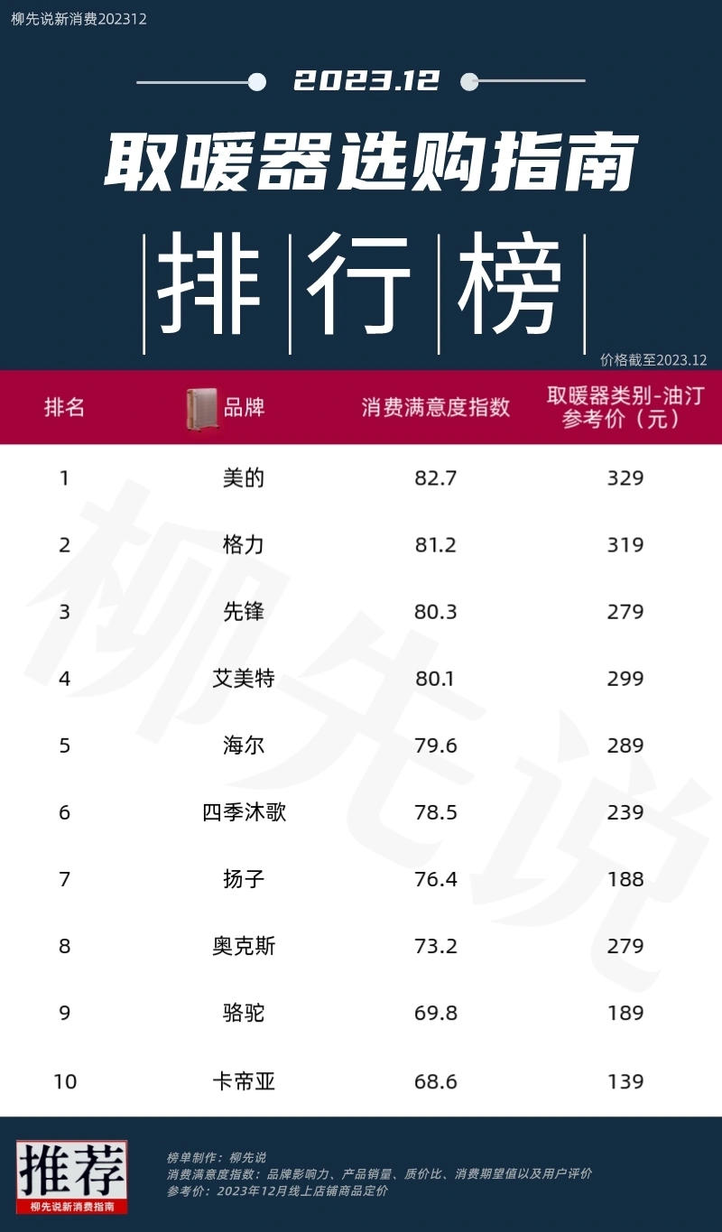 天下气温骤降,严寒的气候让人们纷纷探求取暖和装备。尤其是在没有会集供暖的南方地区,取暖和器的需求量更是大增。随着气温的渐渐低落,南方家庭对于取暖和器的需求也越来越急迫。 在这个严寒的季候里,取暖和器成为了南方家庭必备的家电之一。它不但可以为人们带来暖和,还可以为家庭提供舒服的居住环境。在严寒的夜晚,一家人围坐在取暖和器旁,享受着暖和的家庭韶光,这是一幅多么温馨的画面。除了家庭使用外,取暖和器在办公室、学校等场所也得到了广泛的应用。在严寒的冬天,一个暖和的办公室或讲堂可以为人们带来更好的工作和学习环境。同时,取暖和器的使用也更加环保和节能,符合当代社会的绿色发展理念。 为了满足市场需求,取暖和器行业也在不停推陈出新,推出各种新型的取暖和器产物。这些产物不但具有高效、节能、环保等特点,还具有多种功能和外貌筹划,可以满足差异人群的需求。 油汀取暖和器在冬季取暖和市场上尤为受欢迎。采取了先辈的热转达技能,可以大概将油汀内的热量快速转达到四周的空间,使得室内温度敏捷升高。相比其他取暖和装备,油汀取暖和器的热服从更高,可以大概更快地到达理想的取暖和效果。其次,油汀取暖和用具有很高的安全性。它采取了多重安全掩护步调,如过热掩护、倾倒主动断电等,可以大概有效克制不测变乱的发生。别的,油汀取暖和器的外壳通常采取防火质料制作,进一步加强了其安全性。而且,油汀取暖和器不会产生剧烈的干燥感和耀眼的光线,让人感到暖和而不耀眼。还具有噪音低、无烟等特点,不会对室内环境造成污染。 下面来看看,市面上主流的取暖和器品牌有哪些。卡帝亚排第10,消耗满足度指数为68.6。企业开办20多年,生产基地设在宁波慈溪,打造的油汀取暖和器便携小巧;骆驼排在榜单第9,消耗满足度指数为69.8。生产企业是慈溪市佳欢电器,主打骆驼尊享智能省电款取暖和器。 奥克斯位居第8,取暖和器消耗满足度指数为73.2。推出的脱销款油汀取暖和器拥有12片加宽片体、一体式烘干架、三档调治功率和多重防护等特点;扬子排在榜单第7,取暖和器消耗满足度指数为76.4,品牌有着40多年的发展进程,其取暖和器产物大功率加热、快速取暖和、智能恒温、三档可调。 四序沐歌排在榜单第6,取暖和器消耗满足度指数为78.5。品牌专注于干净能源采暖和热水范畴,拥有全产链6大生产基地;海尔位居第5,取暖和器消耗满足度指数为79.6。推出的取暖和器高效油汀片,加宽油汀片宽度增大制热面积,制热效果提升。 艾美特排在榜单第4,取暖和器消耗满足度指数为80.1。其脱销款取暖和器有着13片散热油汀,采取环保油漆质料,知心自带烘衣架;先锋排在榜单第3,取暖和器消耗满足度指数为80.3。紧张生产取暖和器、电风扇两大主导系列产物,专注取暖和30年,产物远销环球多地。打造的油汀取暖和器,依附广角热浪立体循环散热全屋取暖和热得快19%。 取暖和器满足度第2位是格力,消耗满足度指数为81.2。推出的新升级石墨烯款油汀取暖和器,采取石墨烯质料,叶脉型油路,制热性能+30%且升温敏捷;取暖和器满足度位居榜首的是美的,消耗满足度指数到达82.7。美的推出的脱销油汀取暖和器,线上单店卖出43万台,线上销量处于TOP1位置。采取18孔专利散热片、创新鱼骨油路、双旋钮三档功率。做到智能恒温调控,到达设定温度后主动制止,加热温度降落后主动启动。无屏幕亮光,险些没有运作声噪,产物标配独立加湿盒及晾衣架,加湿、干衣两不误。 |