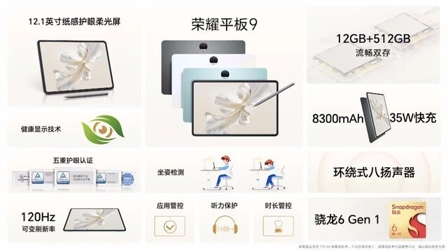 光彩在最新的发布会上正式推出了光彩平板 9,这款平板电脑主打“护眼再进化”特点。光彩平板 9 有三种配色可供选择,分别是“沐光白”、“天青色”和“星空灰”。该平板电脑有多个版本可选,代价方面从 1599 元起。 这款平板采取了高通骁龙 6 Gen 1 处置处罚器,在包管高性能的同机会身厚度仅有 6.96mm。光彩平板 9 内置围绕式八扬声器,支持双向人声加强,音质结果非常良好。 光彩平板 9 配备了一块 12.1 英寸“纸感护眼柔光雾面屏”,分辨率为 2560 x 1600,PPI 为 249,对比度为 1500:1。官方表现该平板电脑具有五重护眼本领,采取类自然光护眼技能,可以有用减轻蔑疲劳度,而且拥有“自研助眠表现功能”、“硬件级低蓝光”,可以提升褪黑素分泌并过滤有害蓝光。 别的,光彩平板 9 还是首批通过未成年人守卫认证的平板电脑之一,具有应用管控功能,可以辨认用户坐姿及隔断屏幕的隔断。该平板电脑内置 8300mAh 电池,支持 35W 快充,续航体现非常精彩。 总体来说,光彩平板 9 是一款性能良好、护眼结果精彩、利用体验精良的平板电脑,对于寻求高品格生存的用户来说,绝对是一款值得购买的产物。 (8479592) |